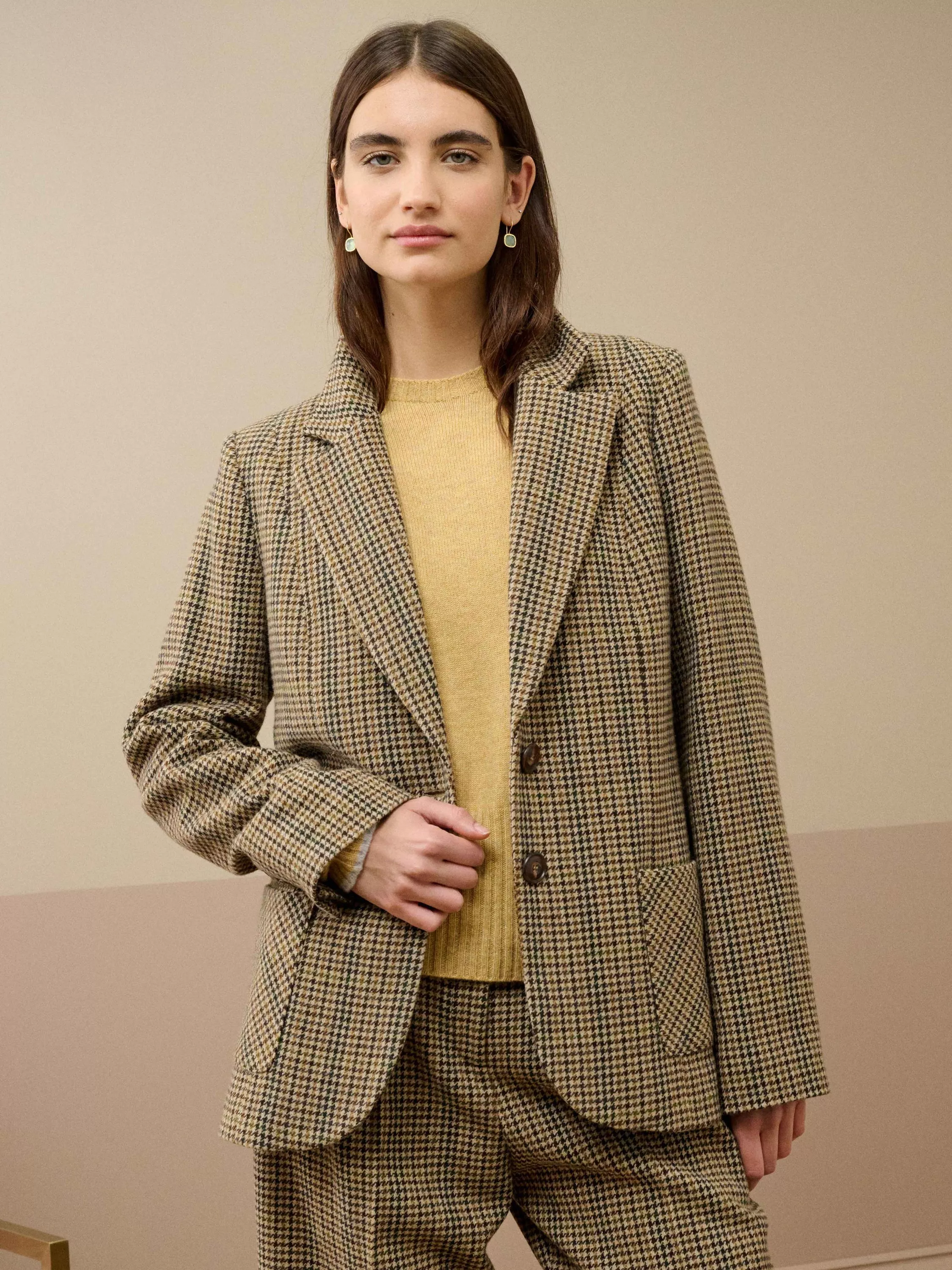 This single-breasted heritage blazer, with its collared, open neckline, bias-cut pockets and button cuffs, is one you'll wear on repeat: made from a gorgeous houndstooth wool cloth, exclusively woven in Yorkshire just for Brora.
