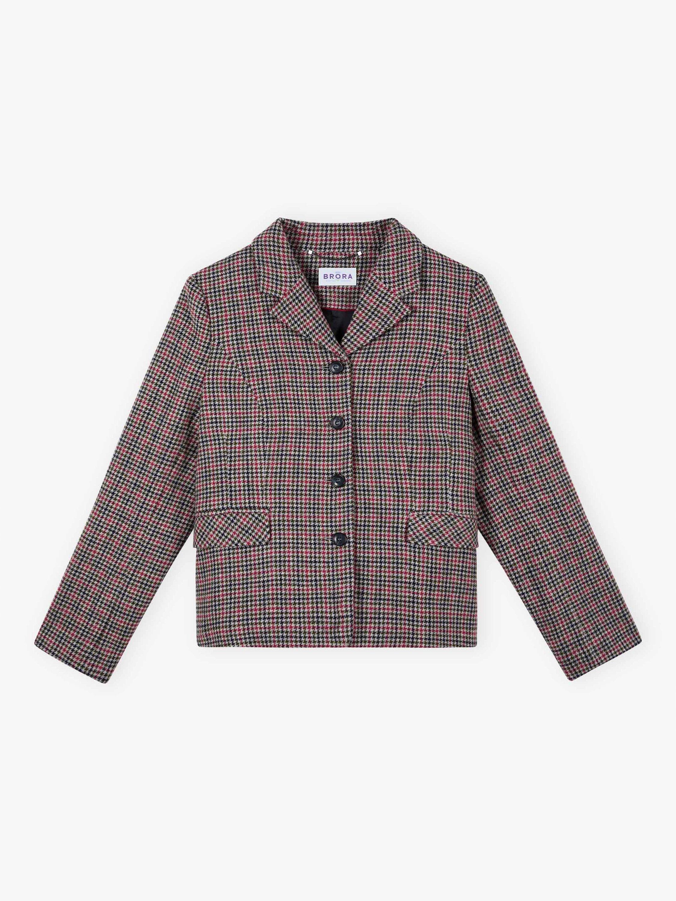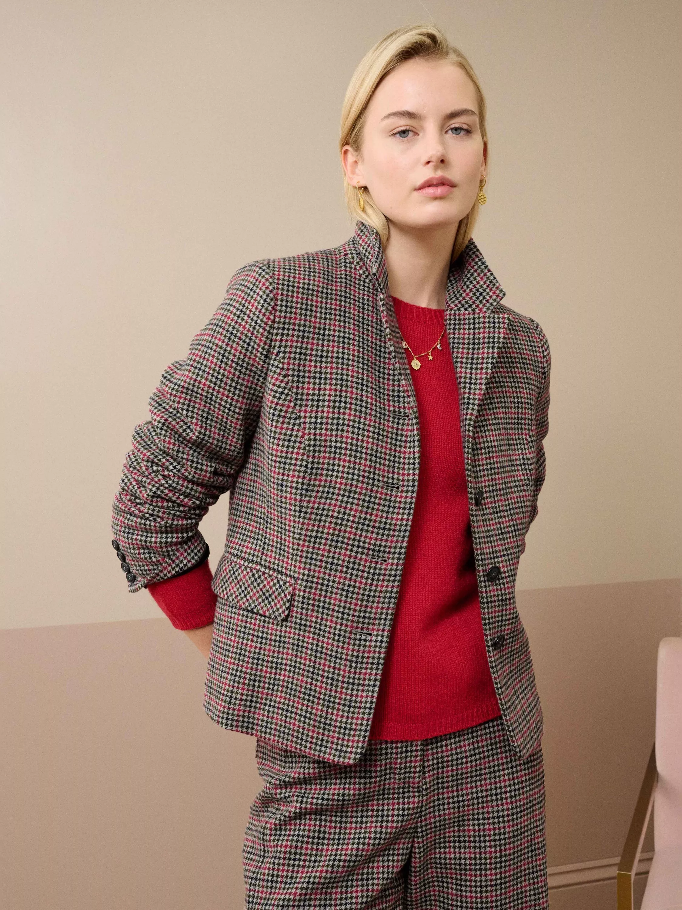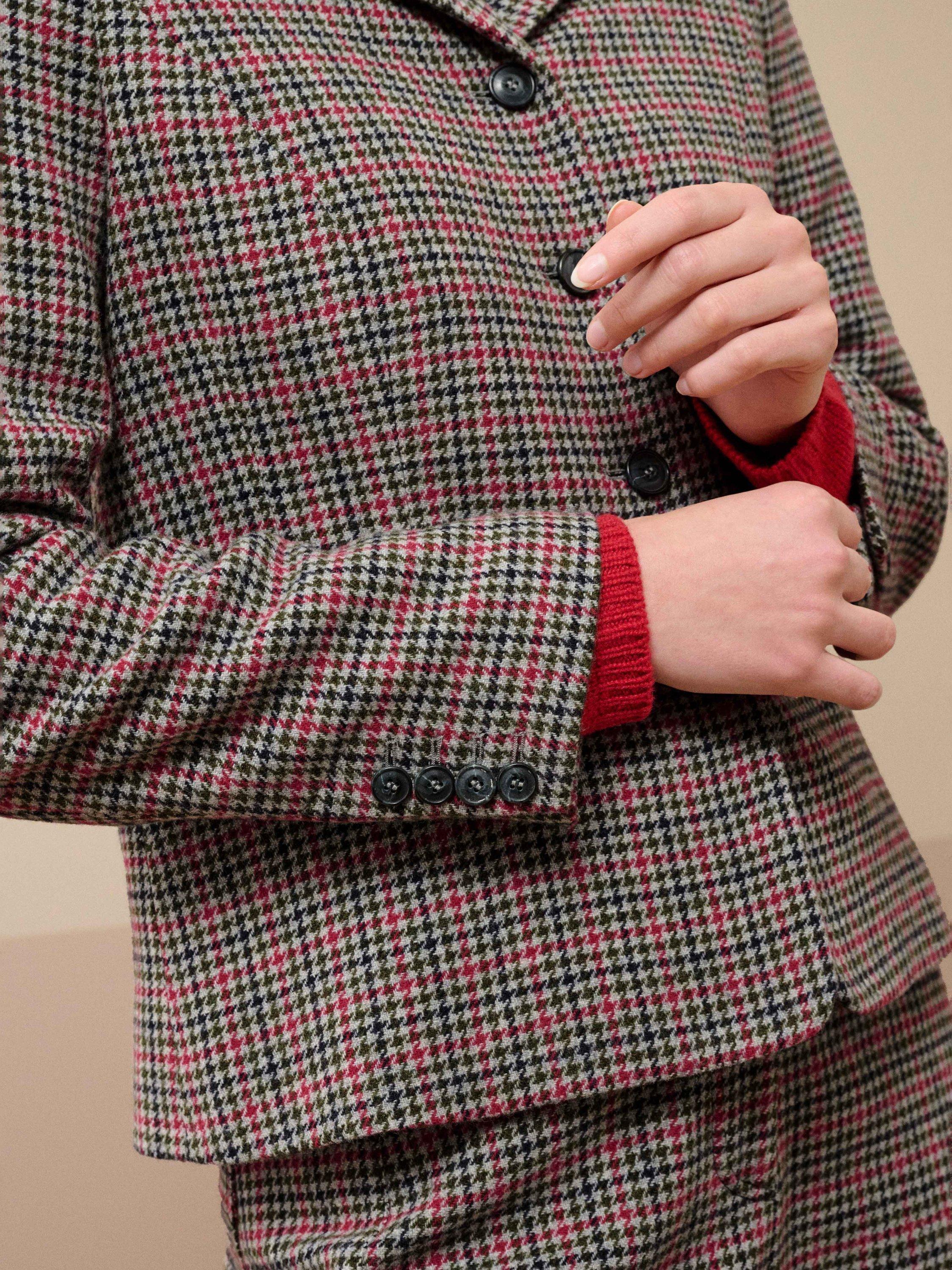 This gorgeous single-breasted heritage jacket, with its collared V-neck, flap pockets and button cuffs, is destined to be a winner: made from a natural, renewable houndstooth wool cloth, exclusively woven in Yorkshire for Brora.