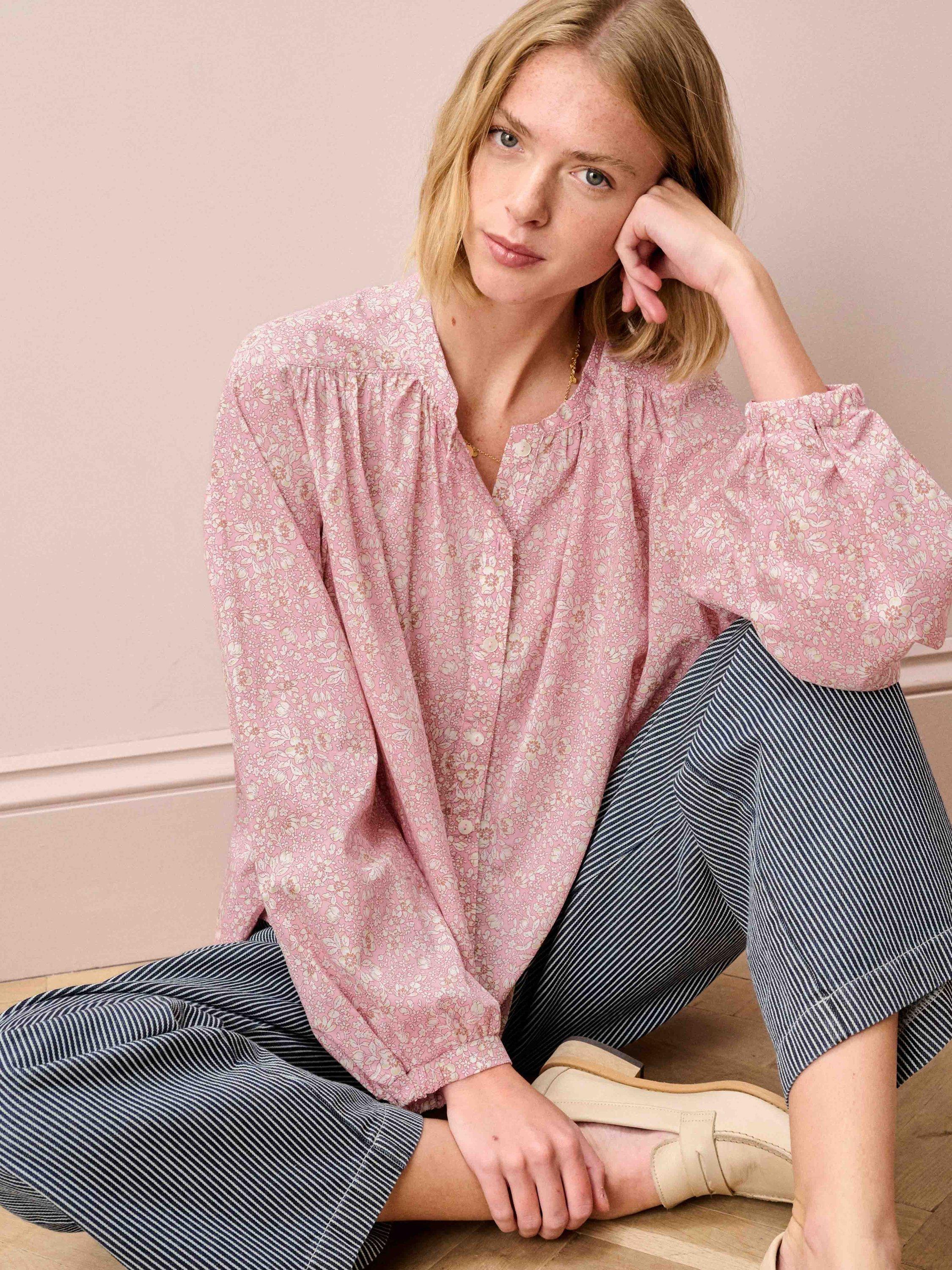 An organic top with an on-trend, floaty shape, small side splits, part-elasticated cuffs and an all-new, seasonal Liberty Print.