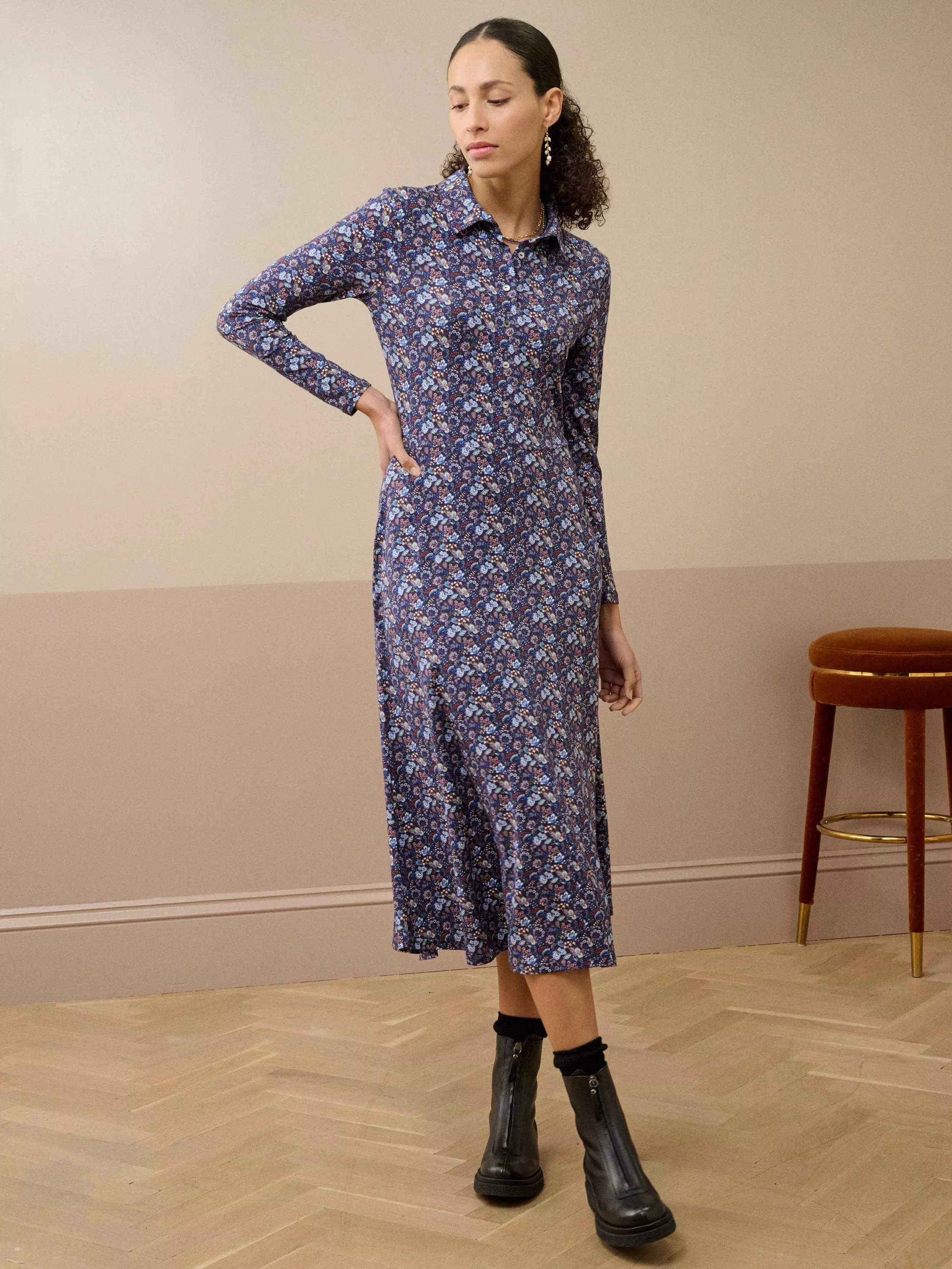Made in one of Brora's favourite English ateliers, these Liberty Print jersey dresses are a constant hit year-round, featuring a flattering fit-and-flare shape, a chic collar and fashion-forward faux buttons that prevent gaping.