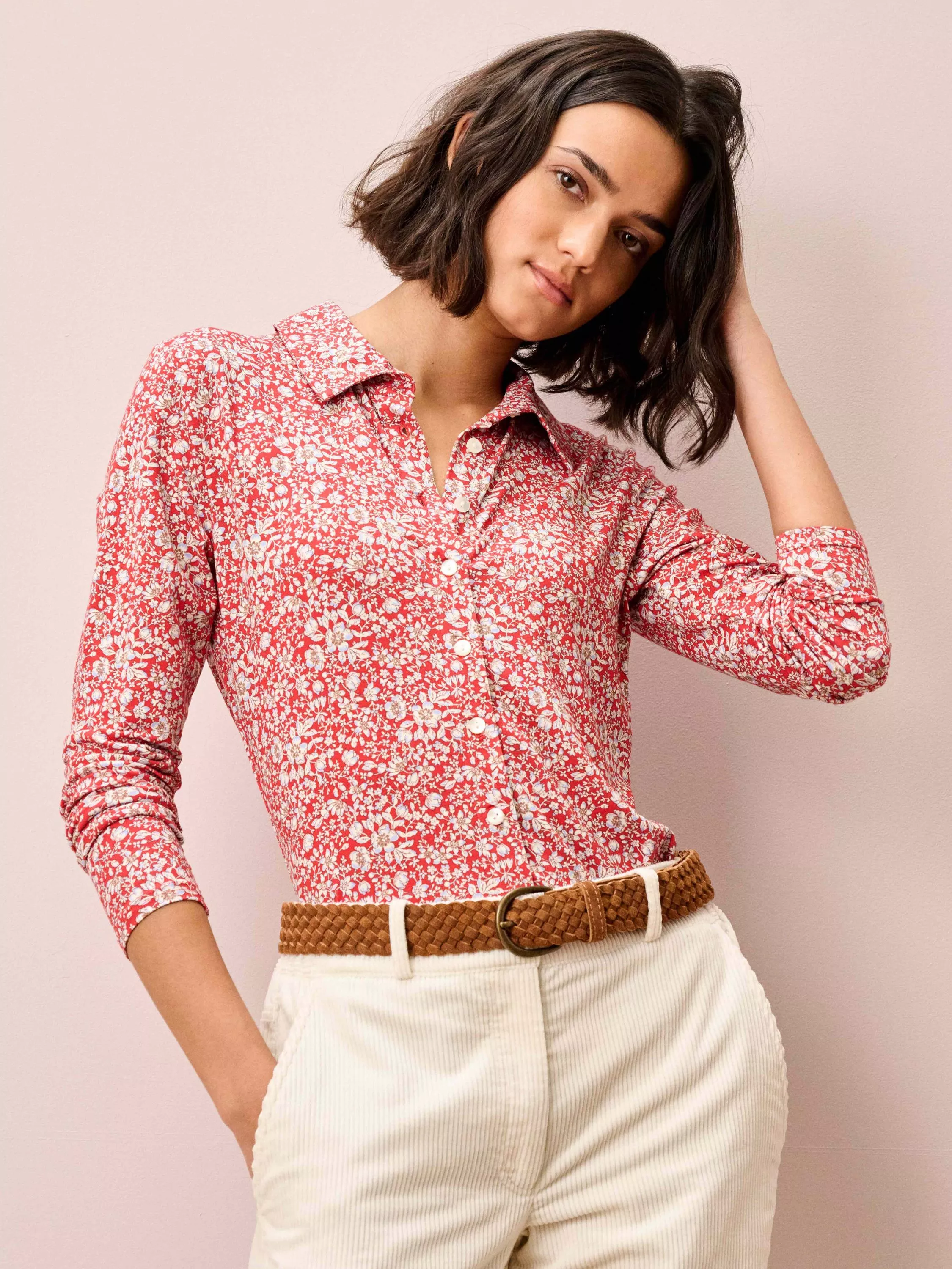 A seasonal update on a flattering stretch jersey shirt, made locally in Leicestershire, using a punchy, modern Liberty fabric with a streamlined, 70s-inspired shape that's seriously on-trend.