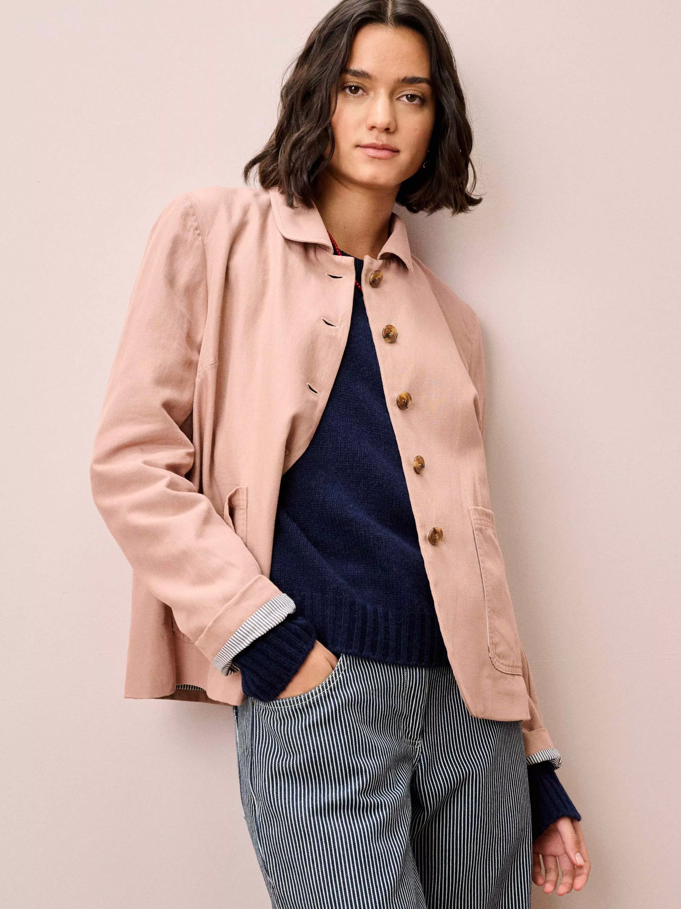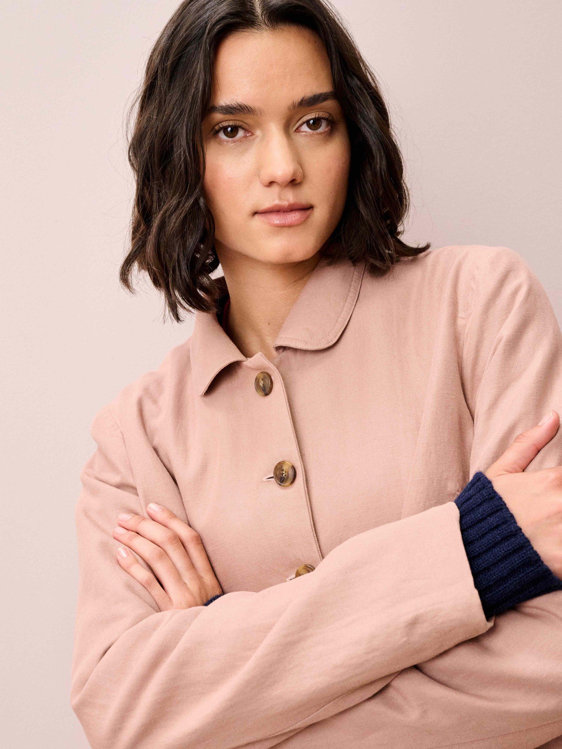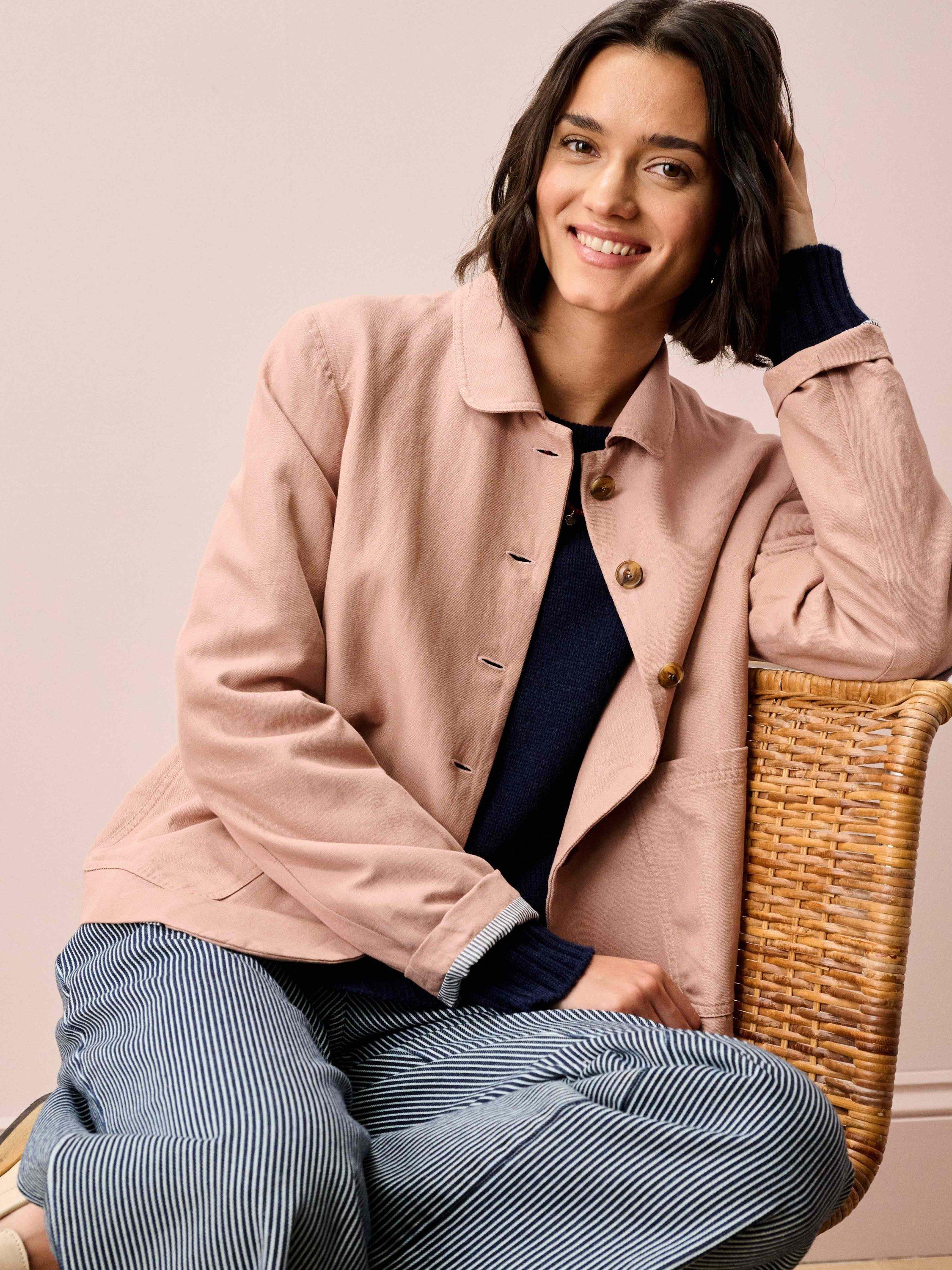 Exclusively tailor-made from the finest cotton-linen blend, this jacket, with its chic curved hem, patch pockets and rounded collar, will be the ultimate transeasonal staple.
