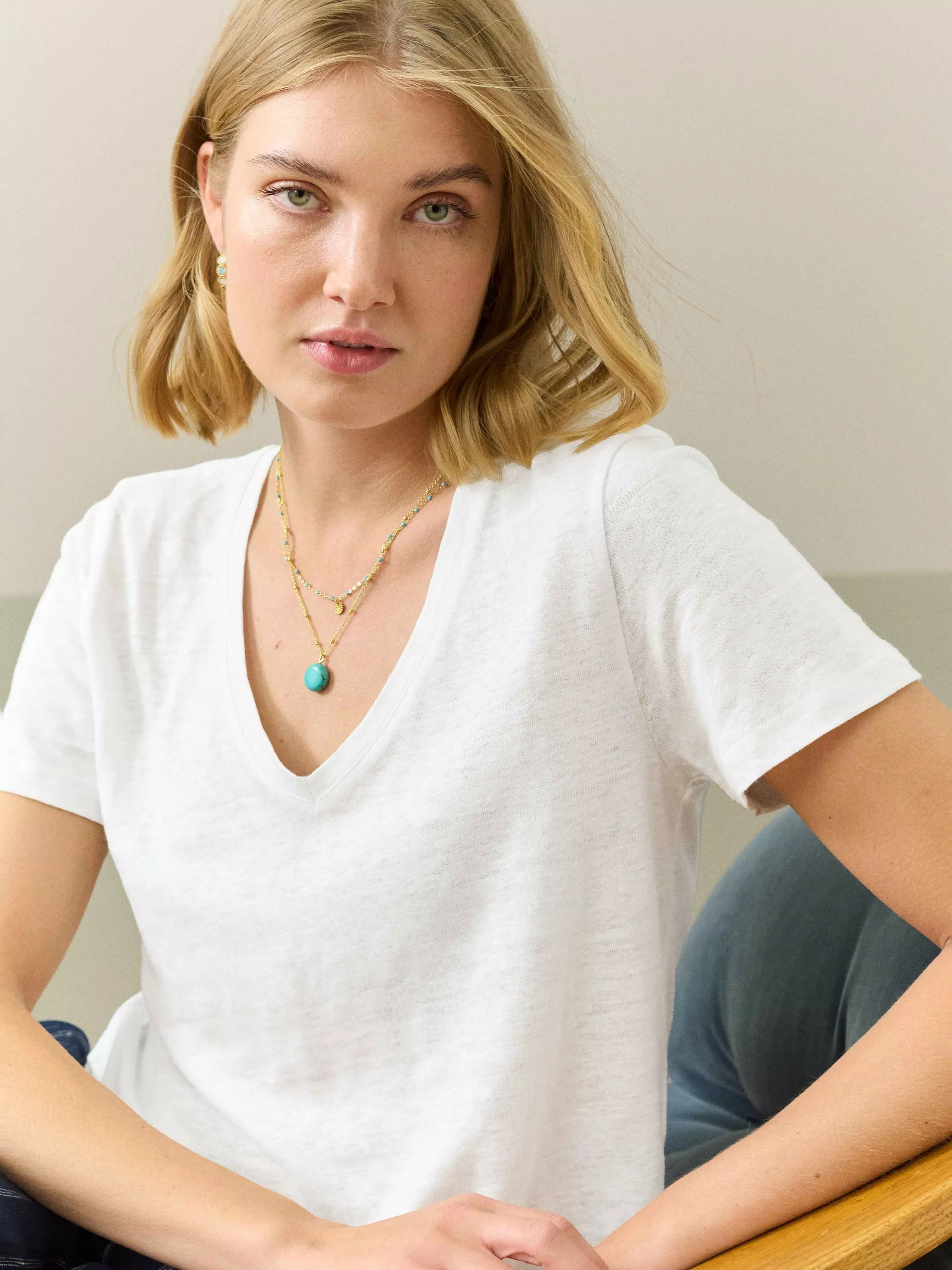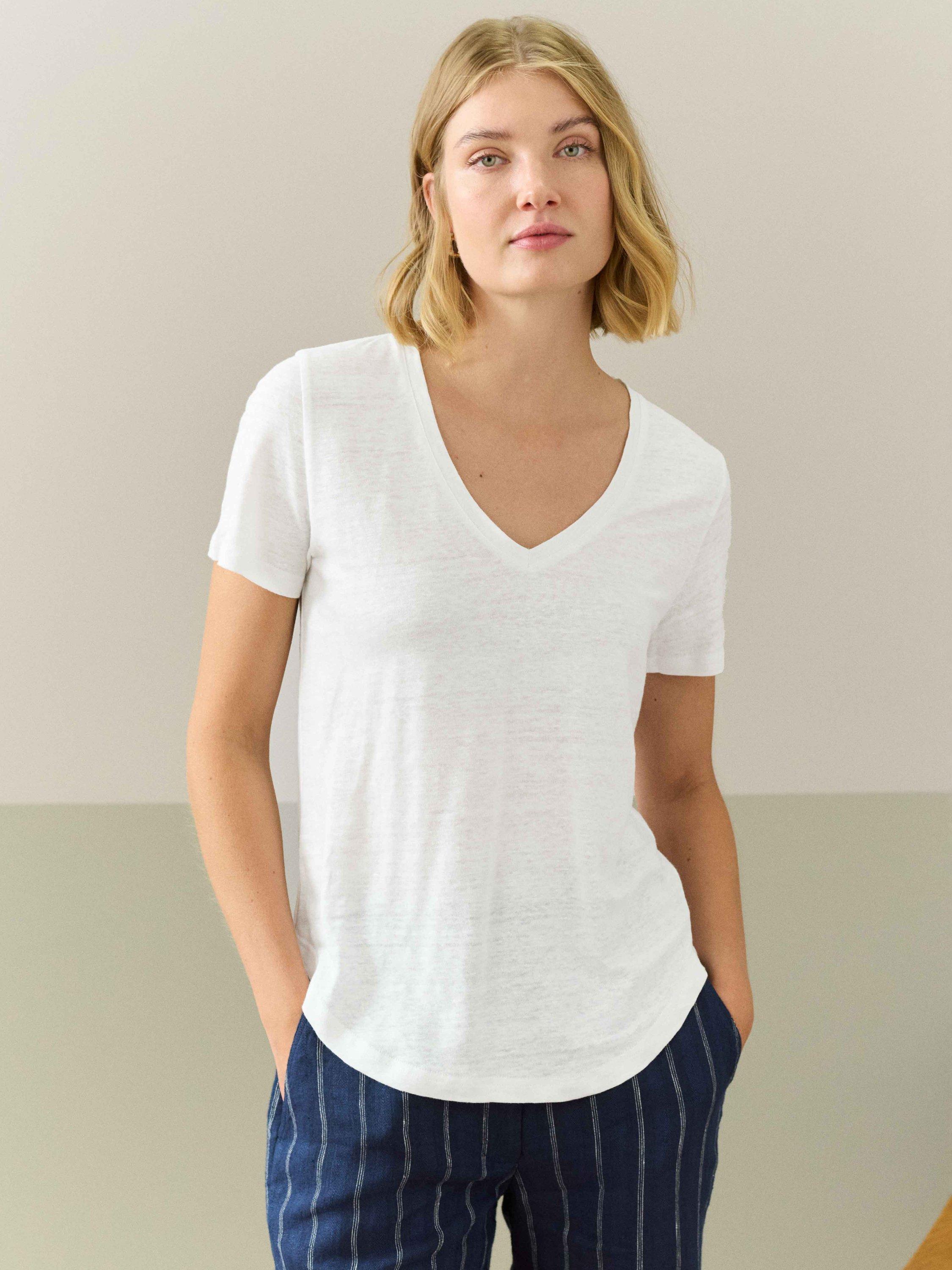 With a flattering v-neckline and short sleeves, it is made from pure linen, offering breathable comfort and will slot seamlessly into your everyday staples.