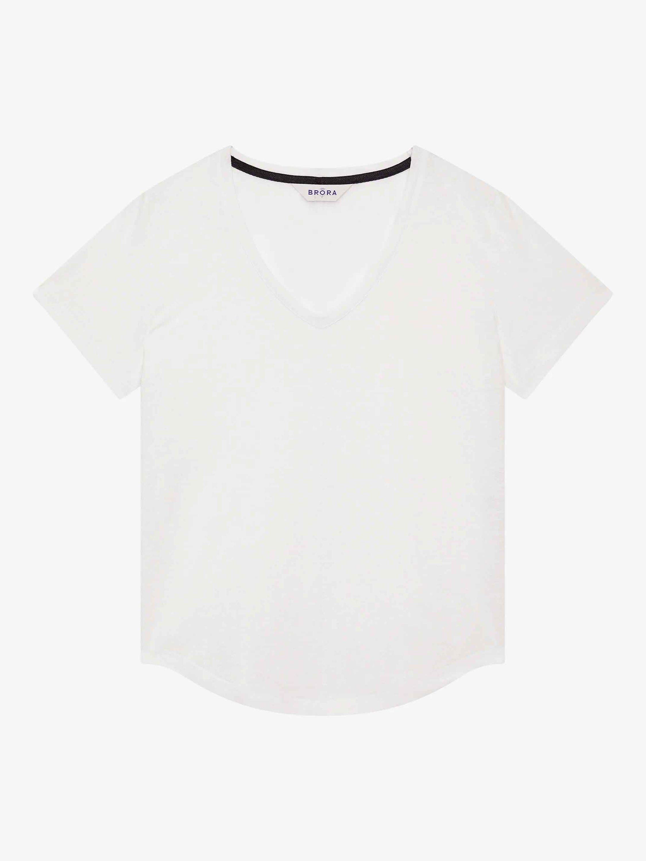 BroraLinen Knit V-Neck T-Shirt, White