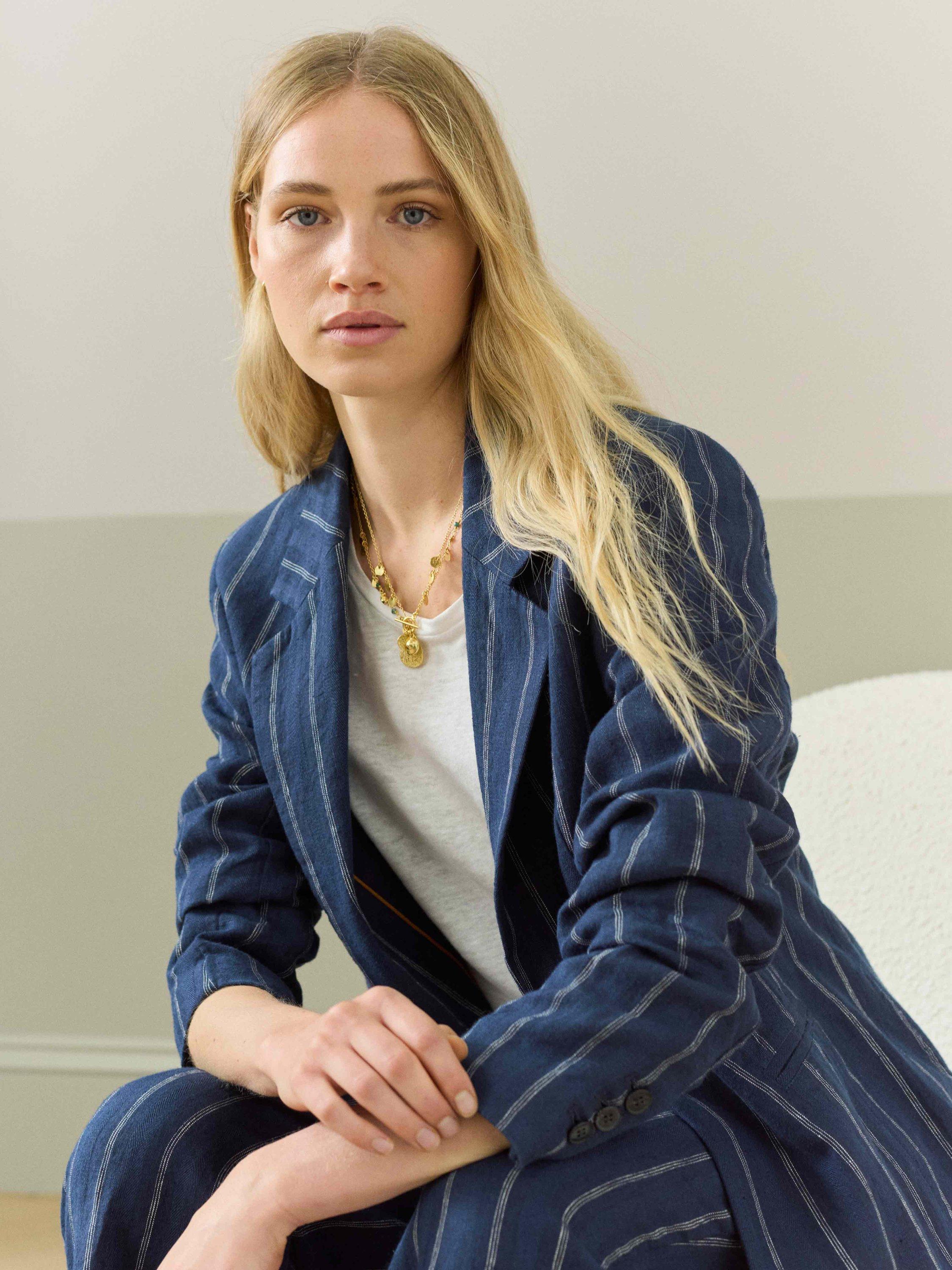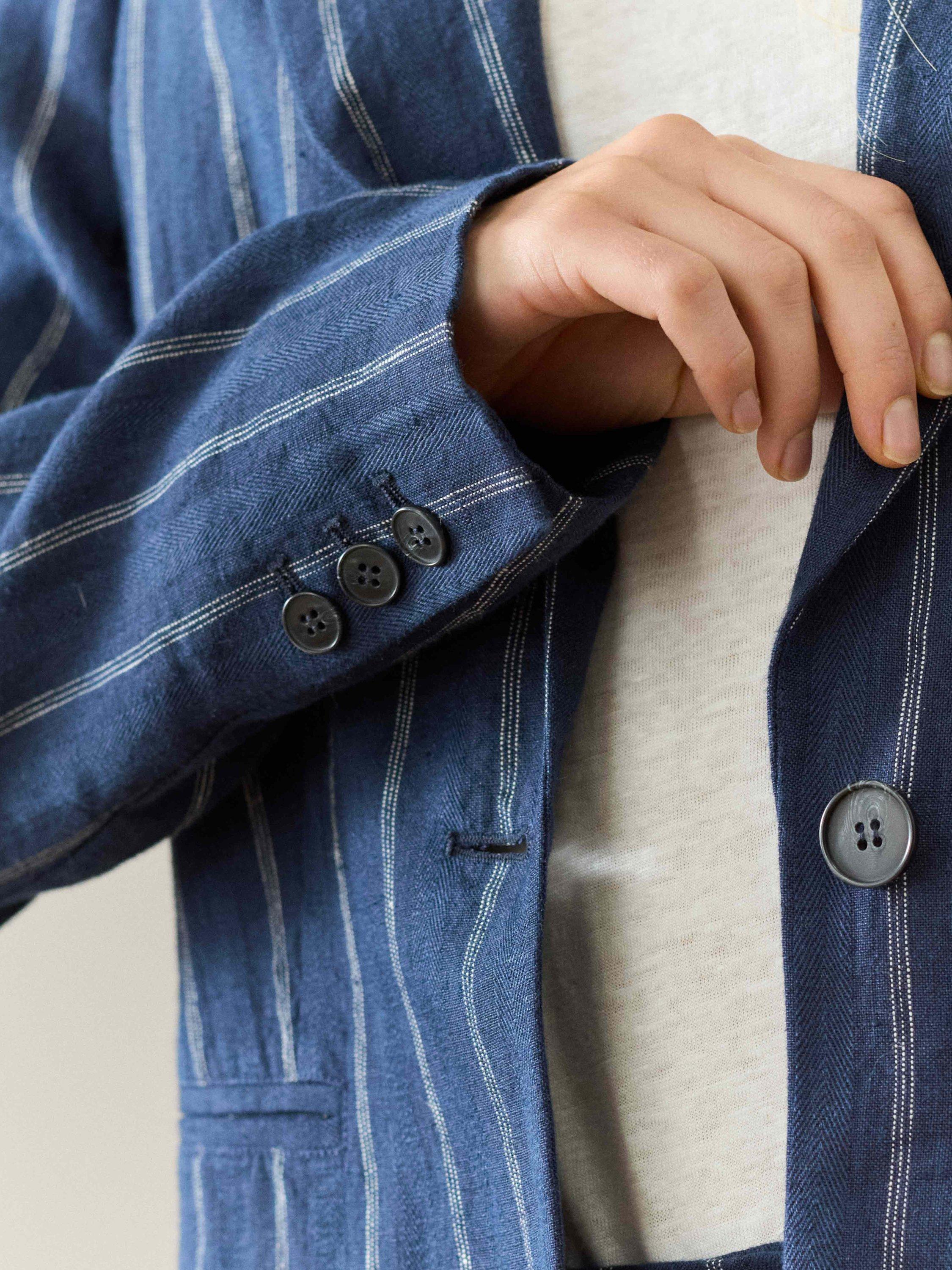 From the flax plant to the final stitches, the entire process of making this sustainable striped linen blazer takes place in Europe, and in true Brora fashion, they've also added jet pockets, button-up cuffs and a back vent.