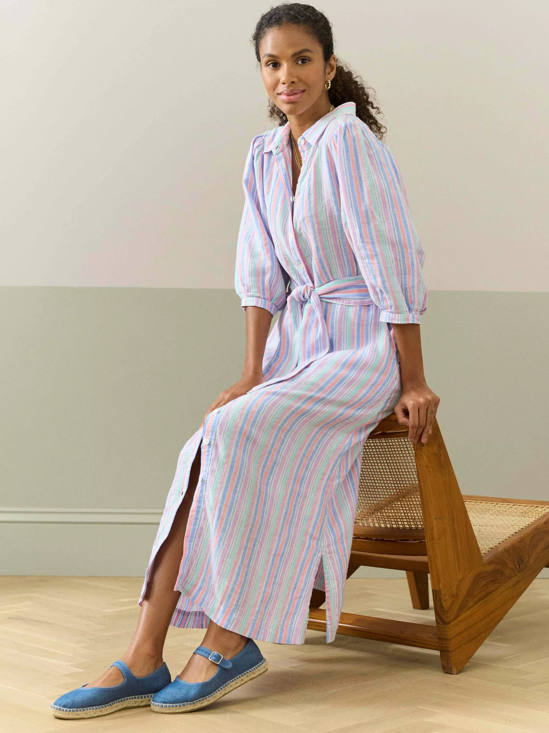 This shirt dress is a rainbow-stripe beauty, woven using only the finest linen.