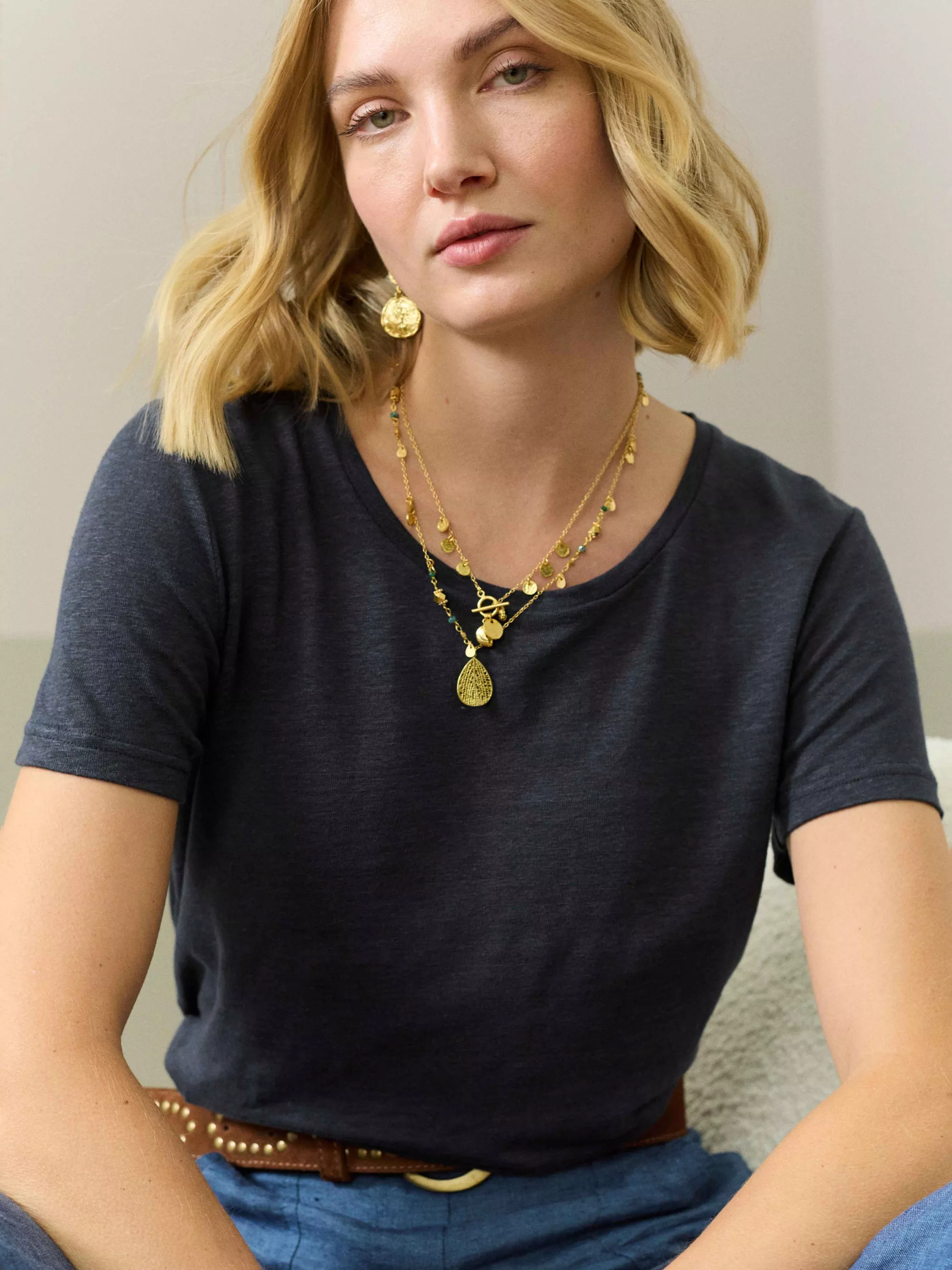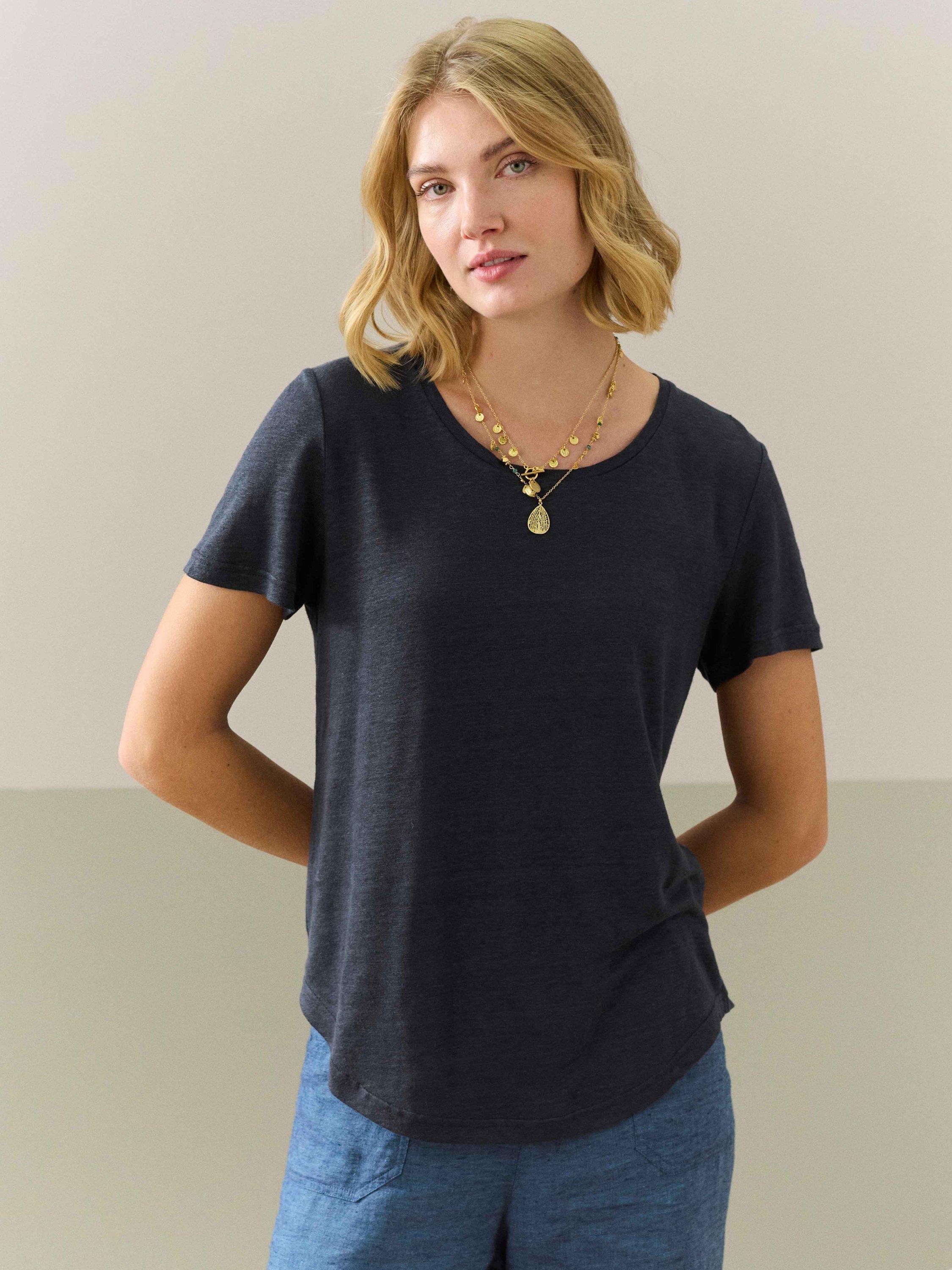 Cut with a softly rounded neckline and short sleeves, it is made from pure linen, offering breathable comfort and will slot seamlessly into your everyday staples.