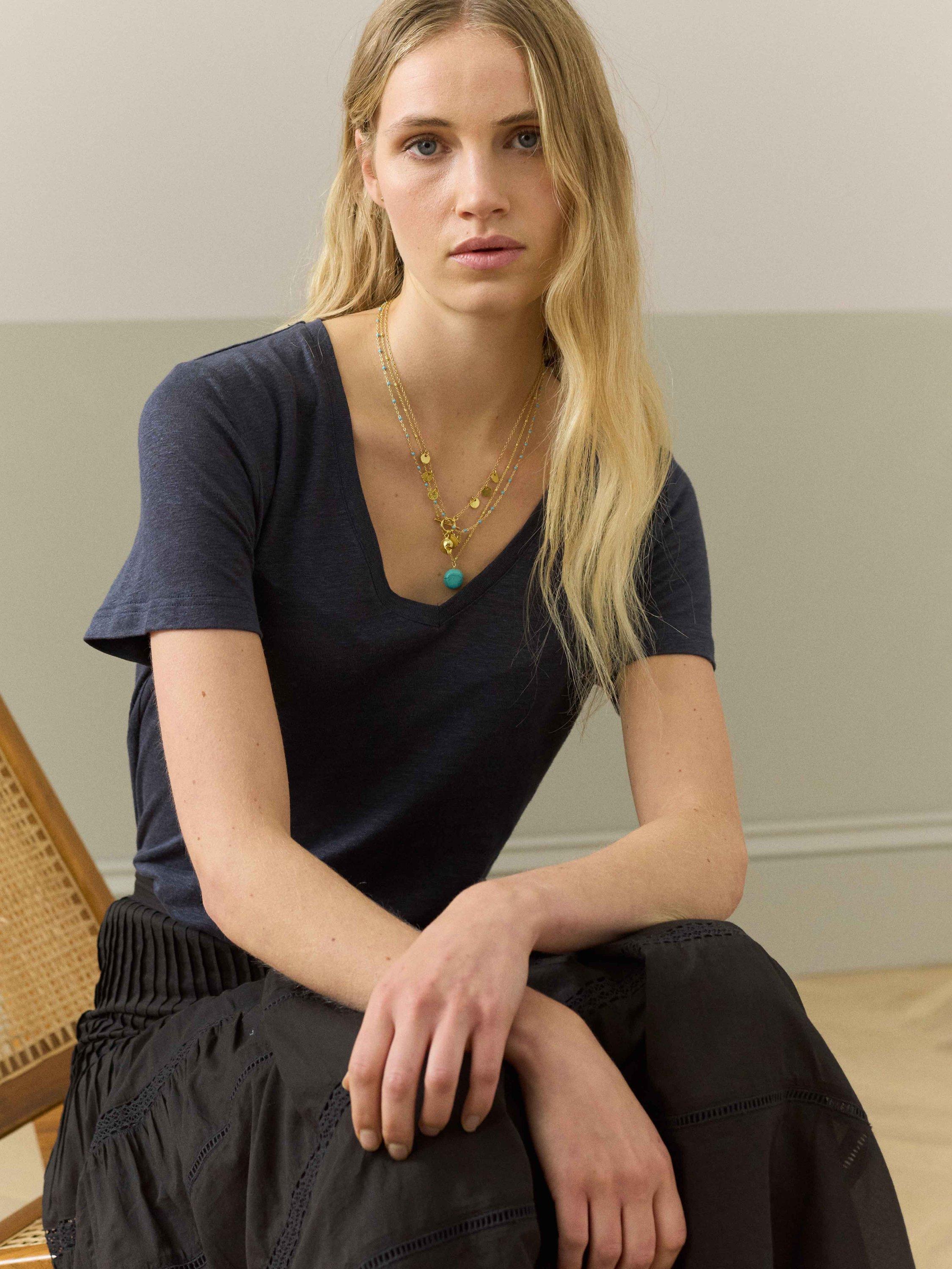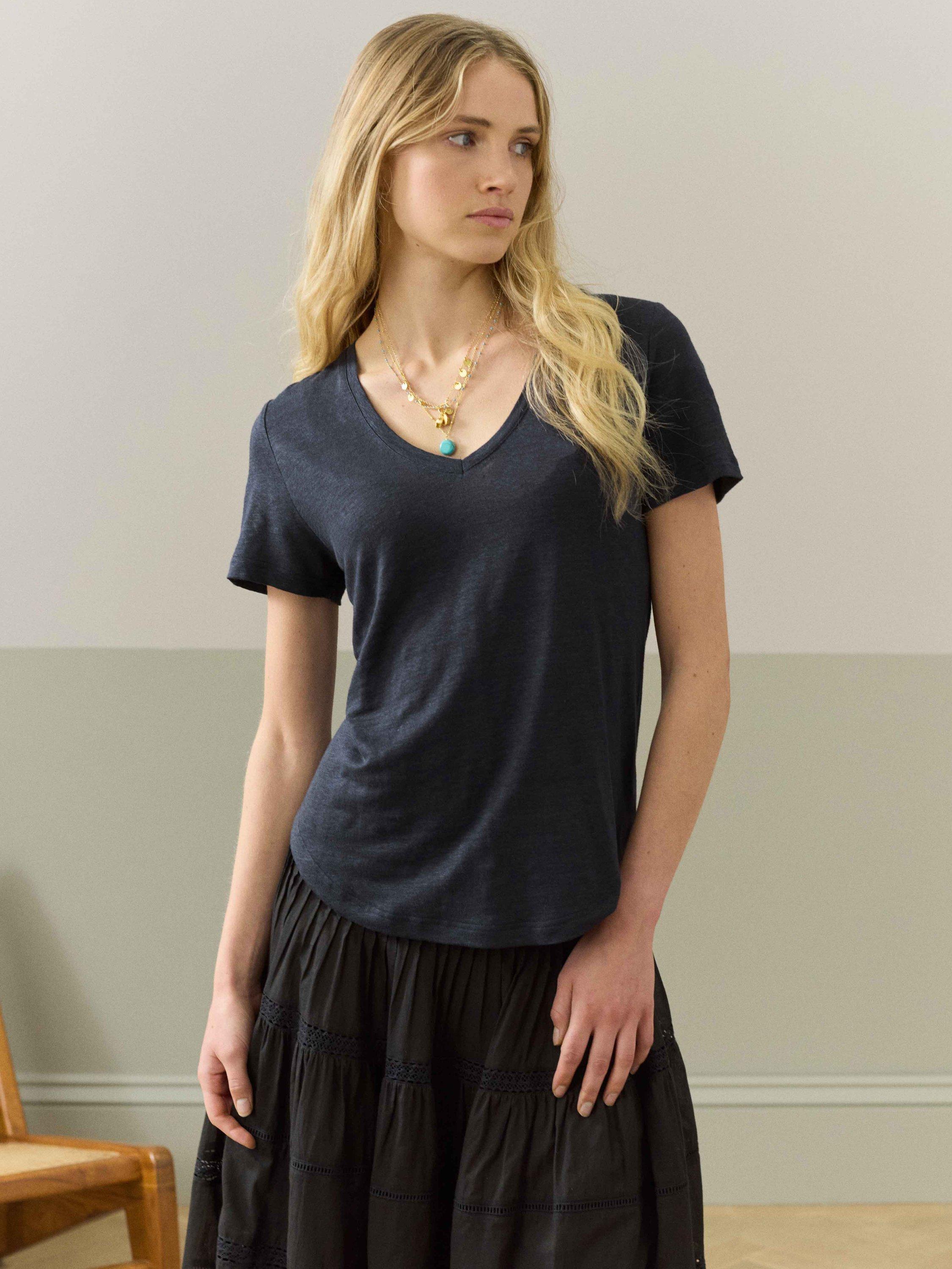 BroraLinen V-Neck T-Shirt, Ink