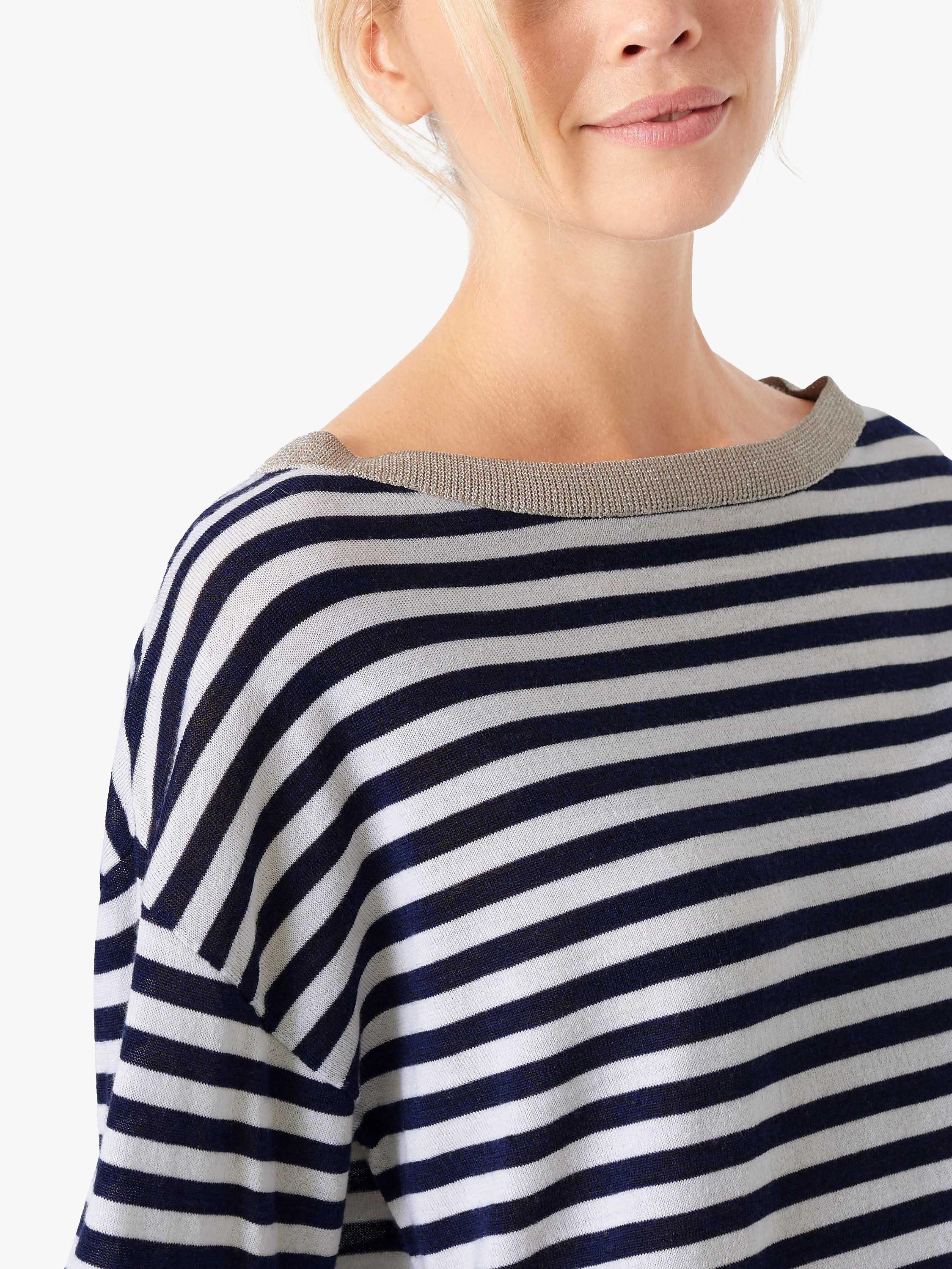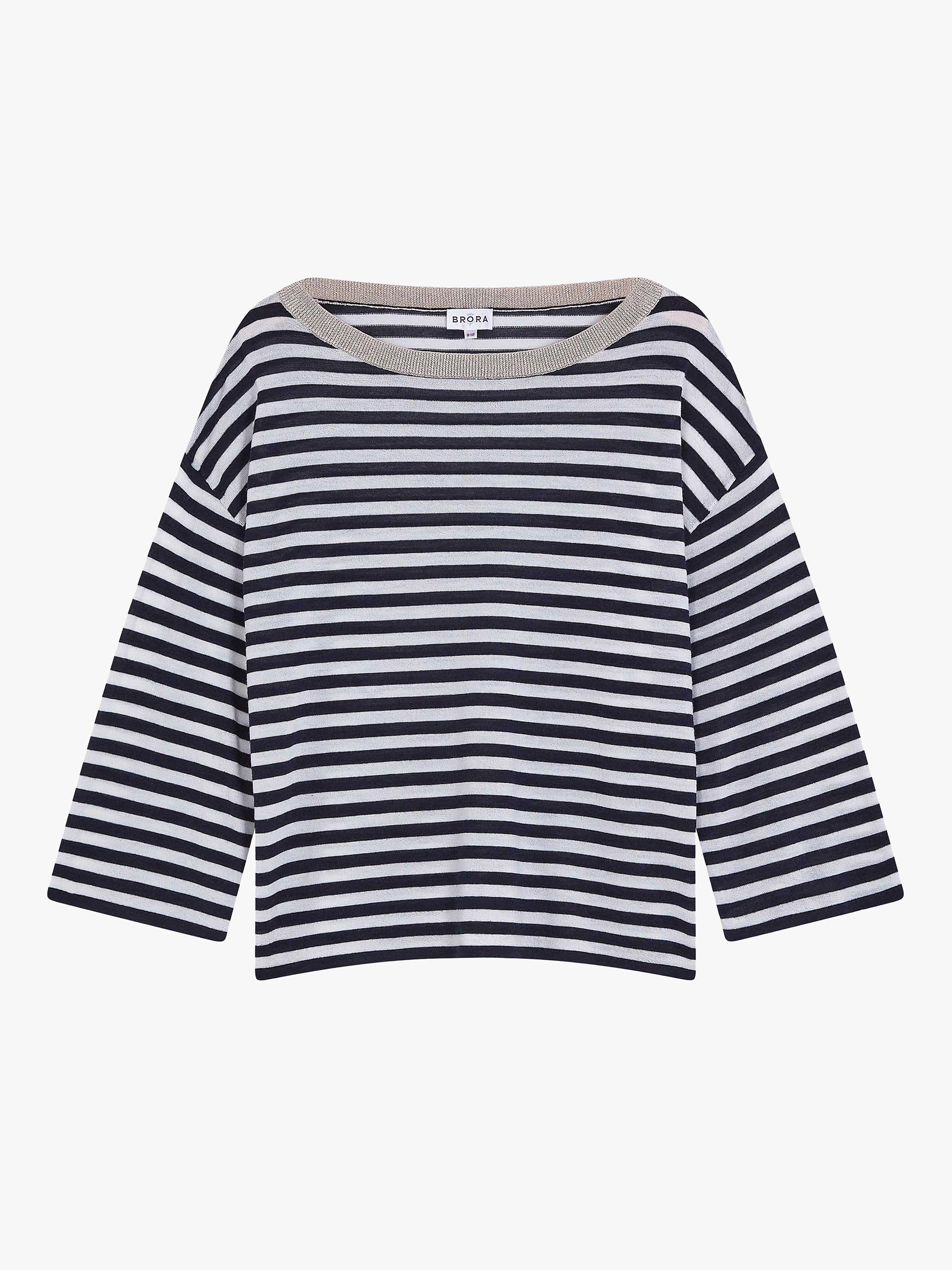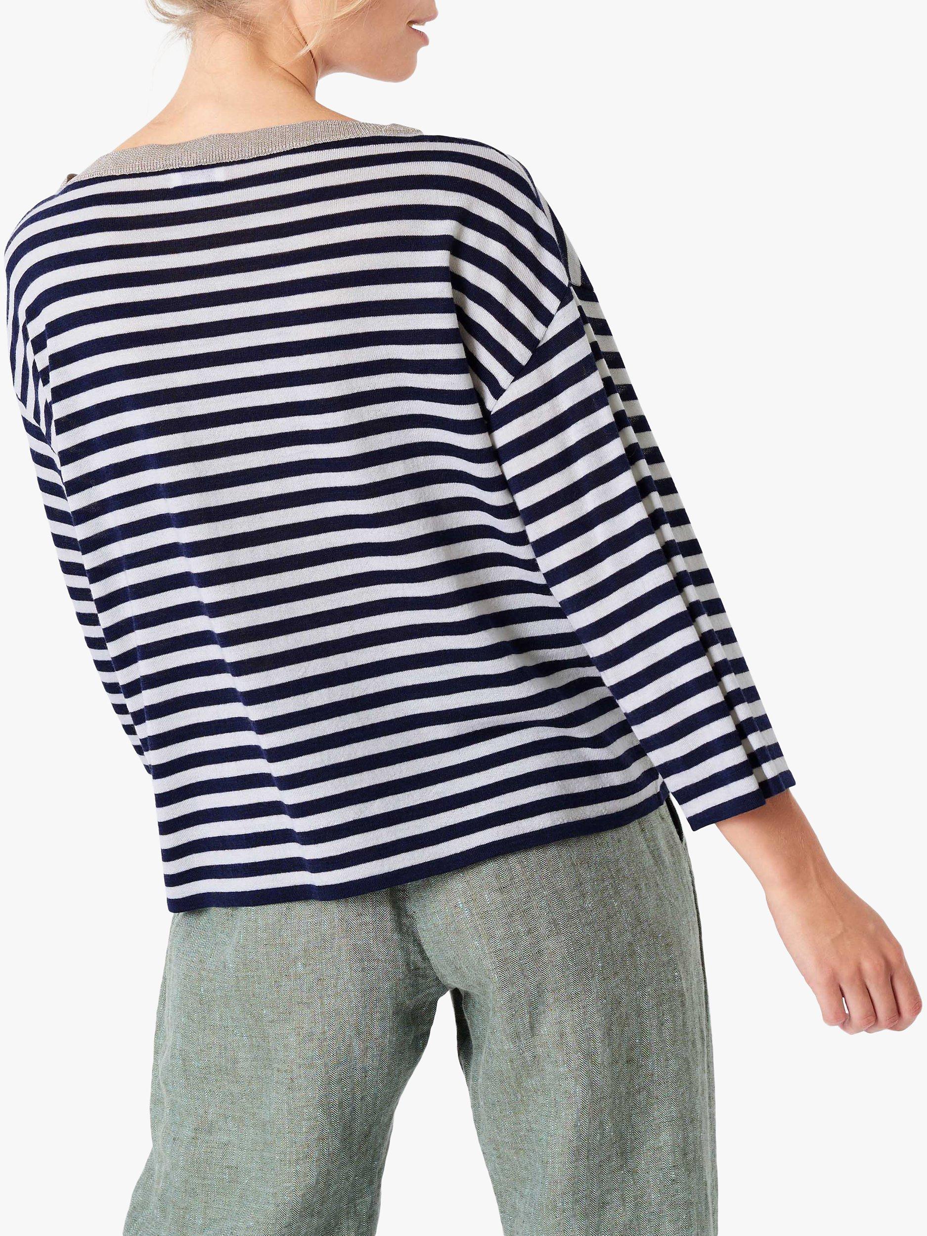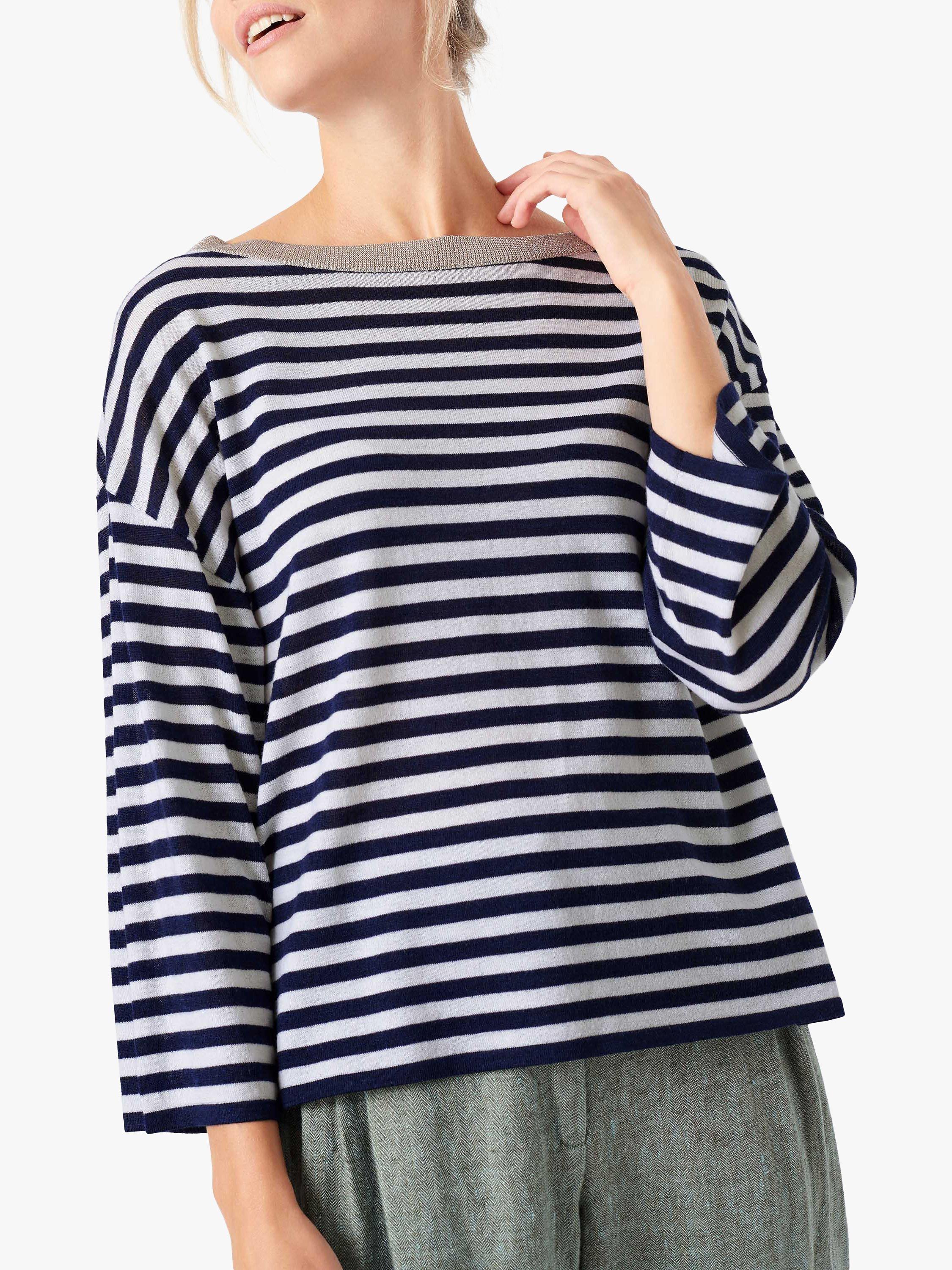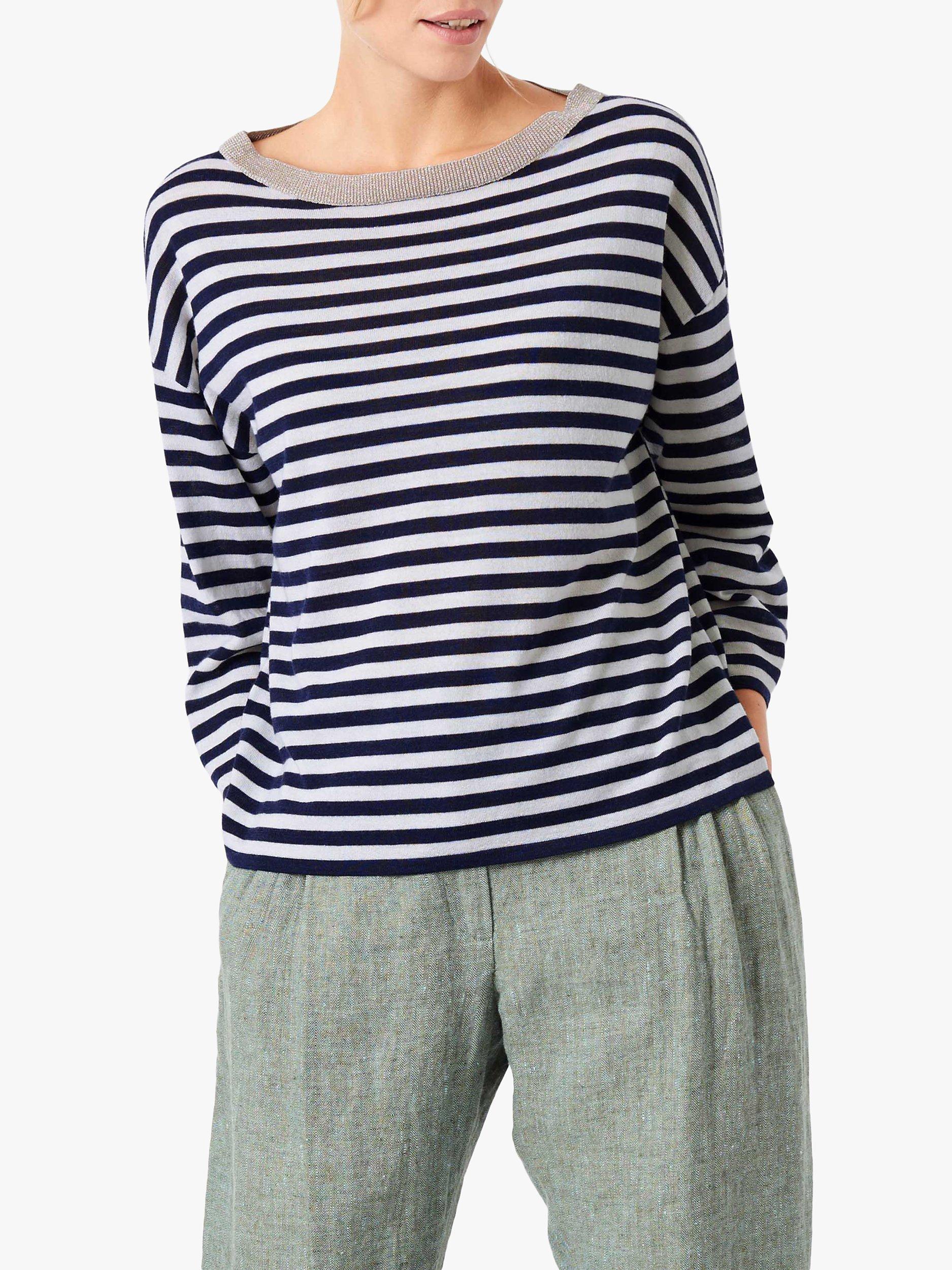 Framed by a wide boat neckline and flattering long sleeves, this jumper from Brora is sure to become your go-to layering piece this season. Decorated in a modern stripe print, the rich merino wool fabrication ensures a soft and cosy handle that will keep you warm until the sun appears again.