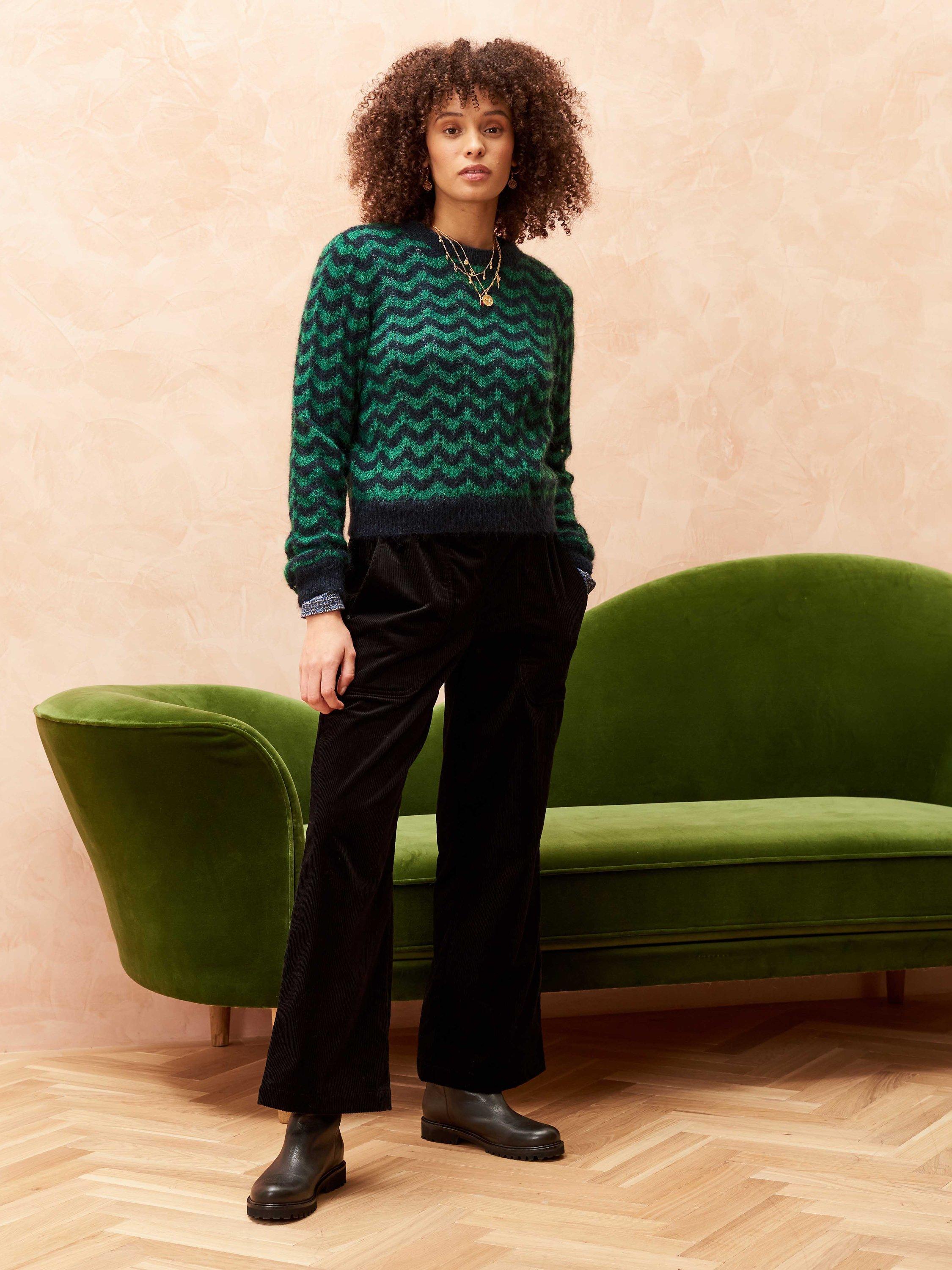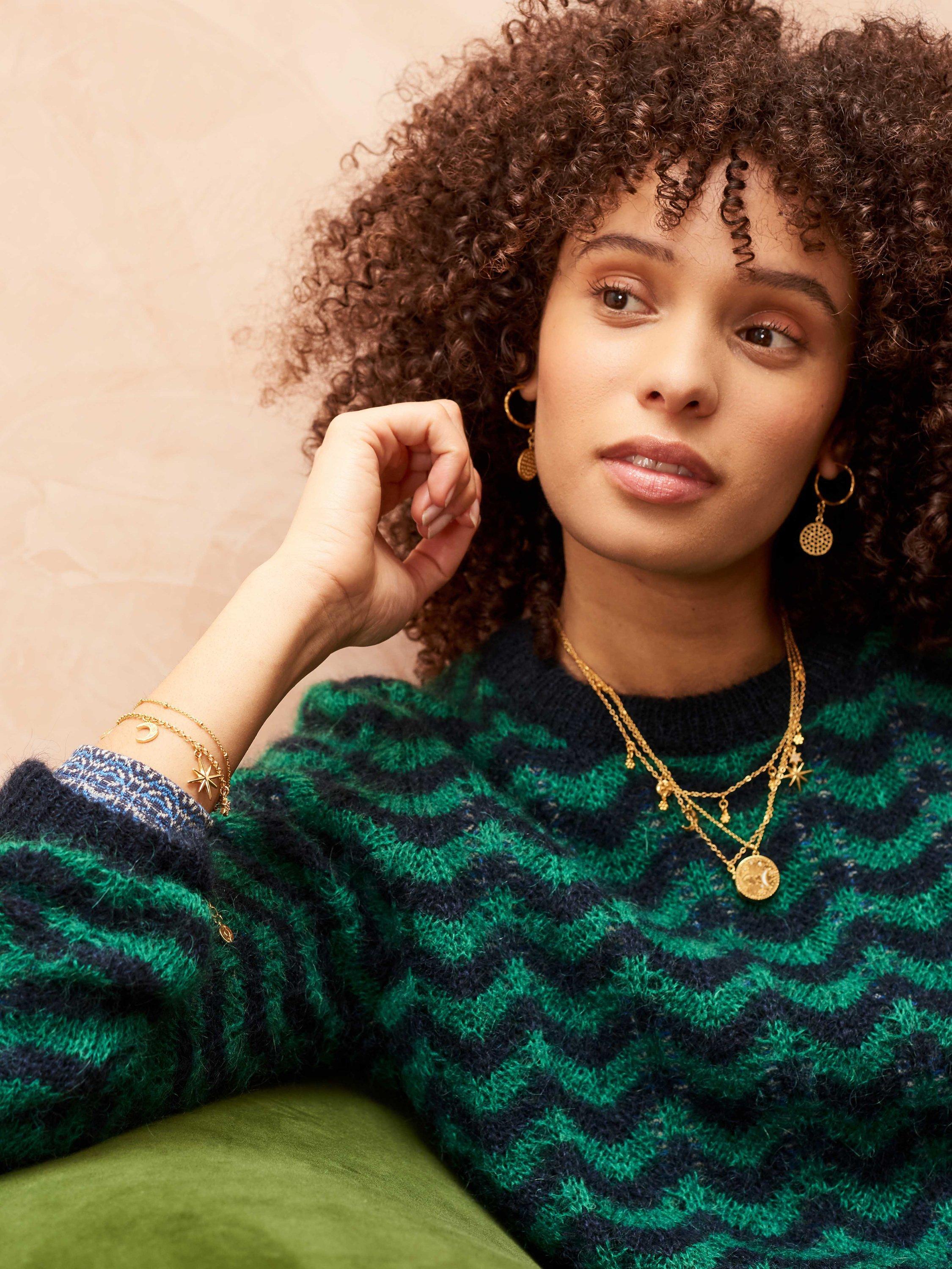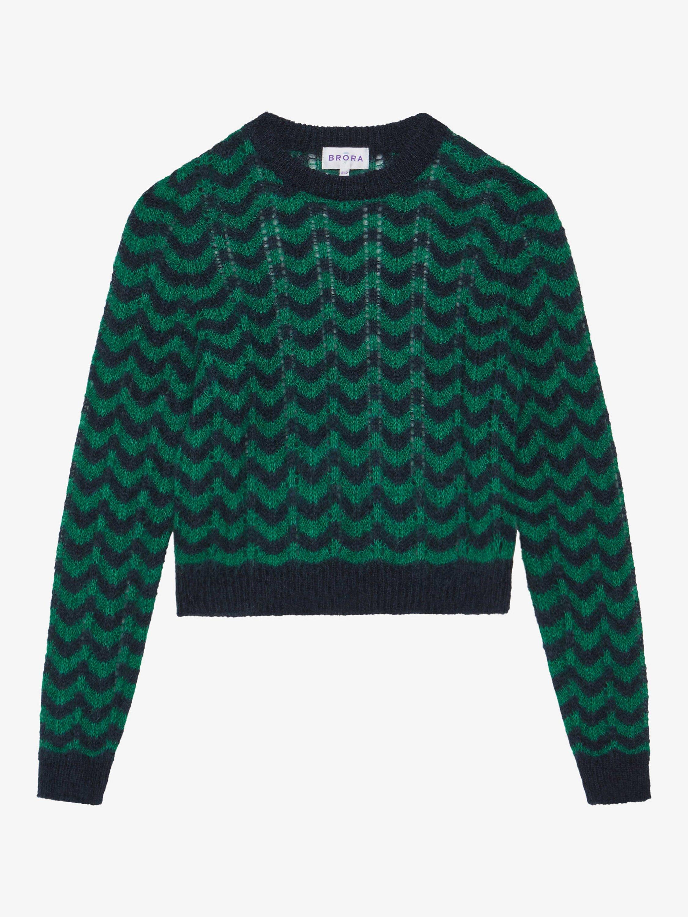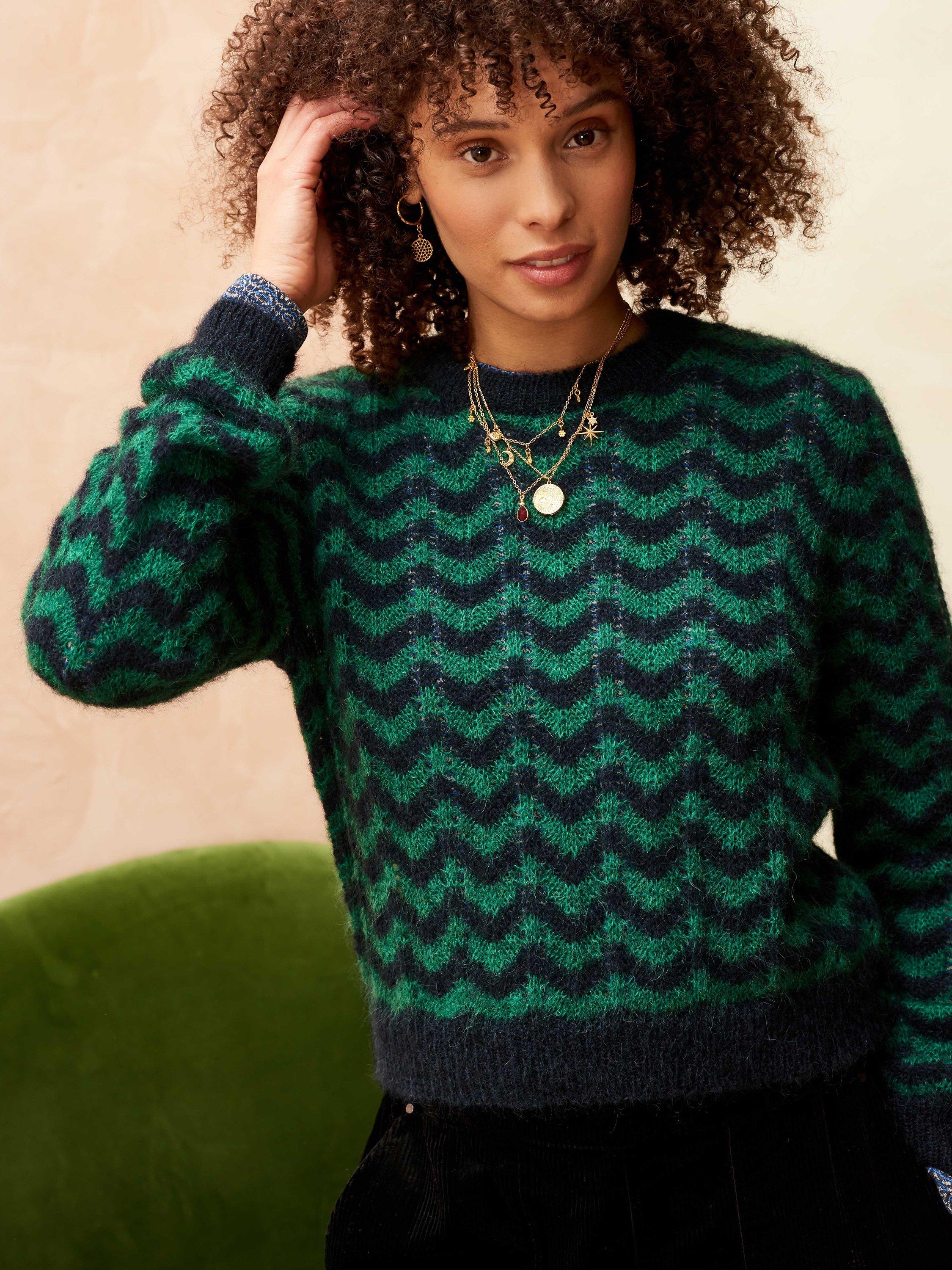 Simple yet sleek with a crew neckline, this lightweight jumper from Brora is printed with a chevron pattern and has cosy appeal with its soft wool blend.
