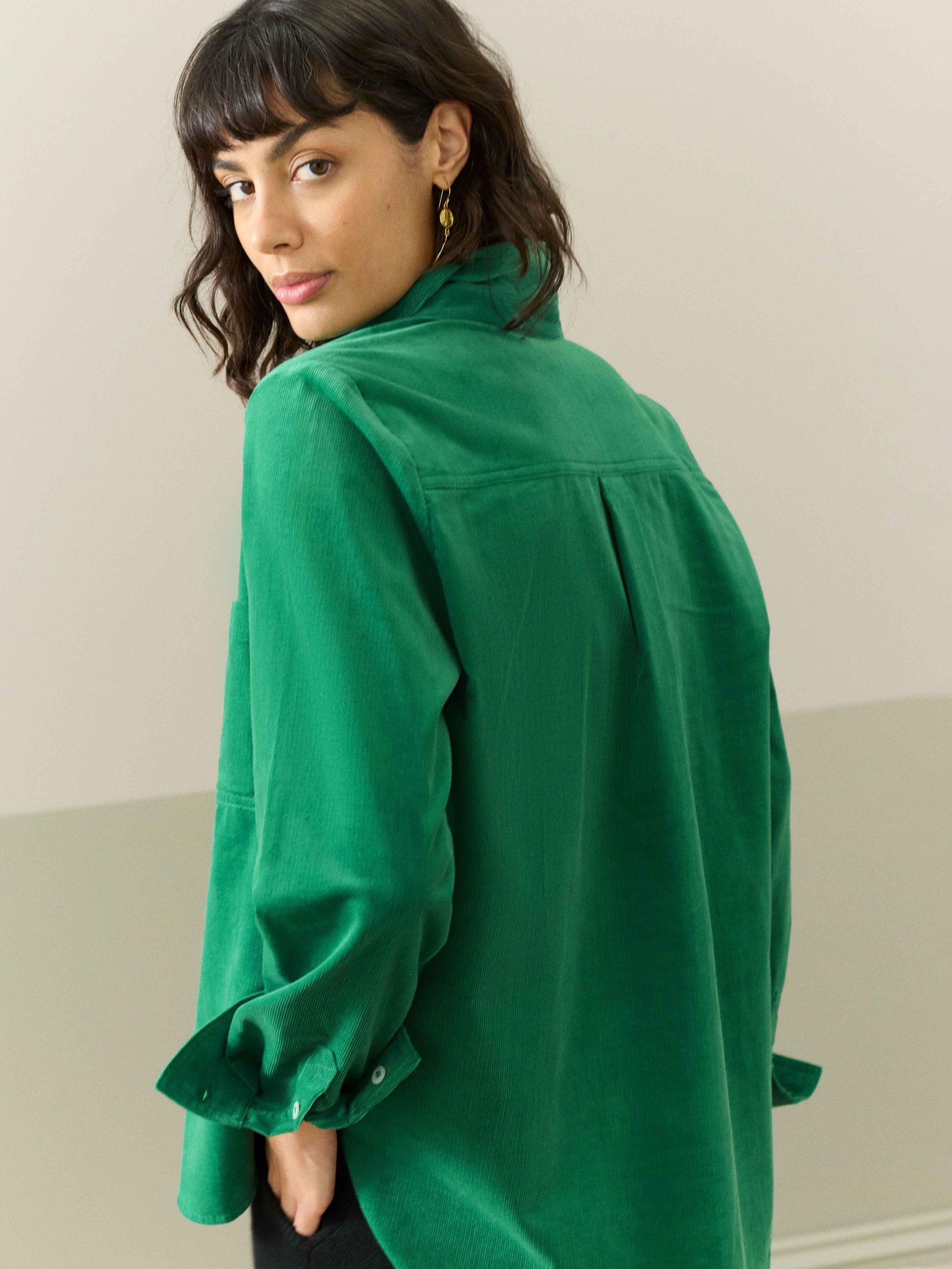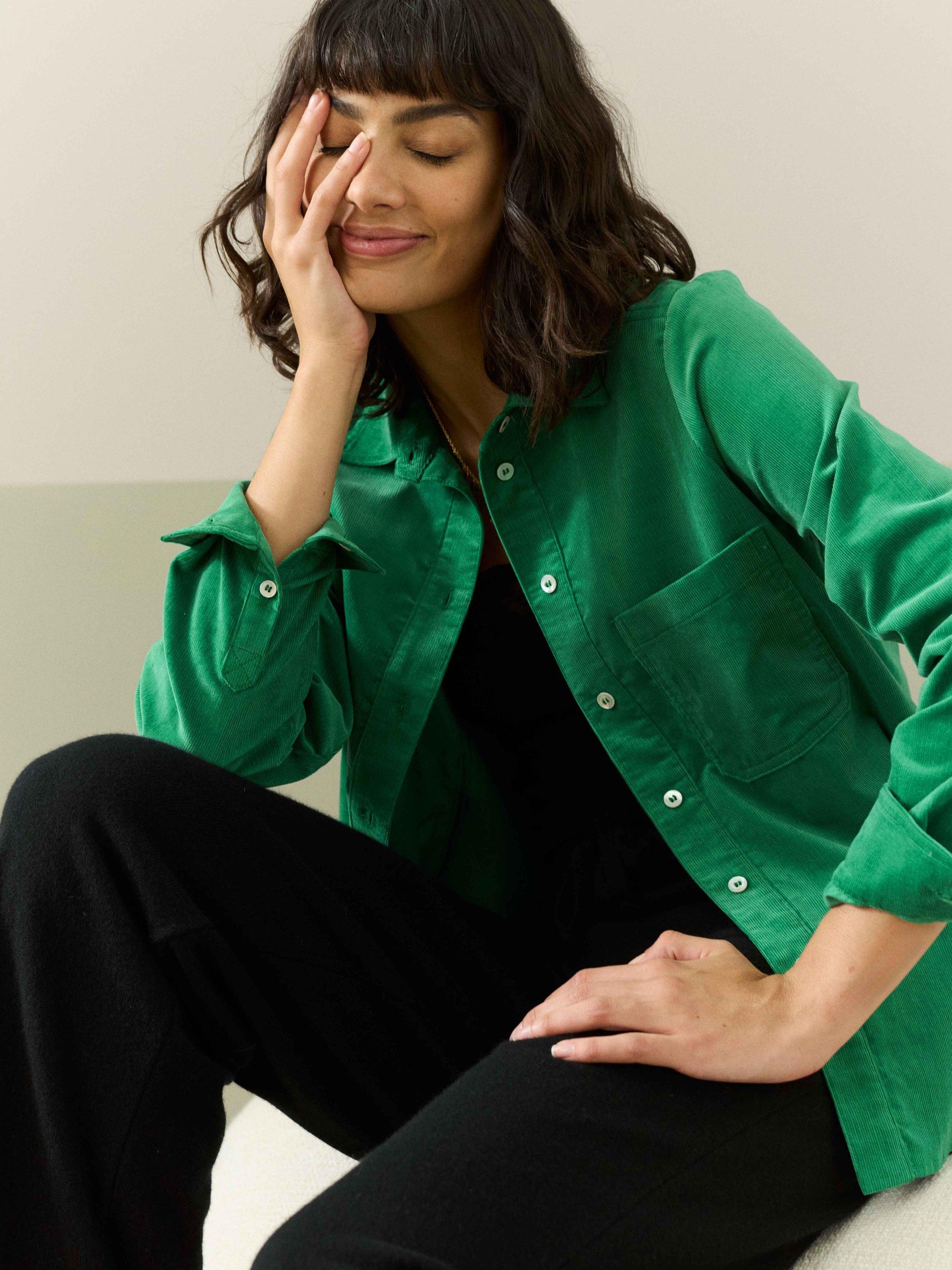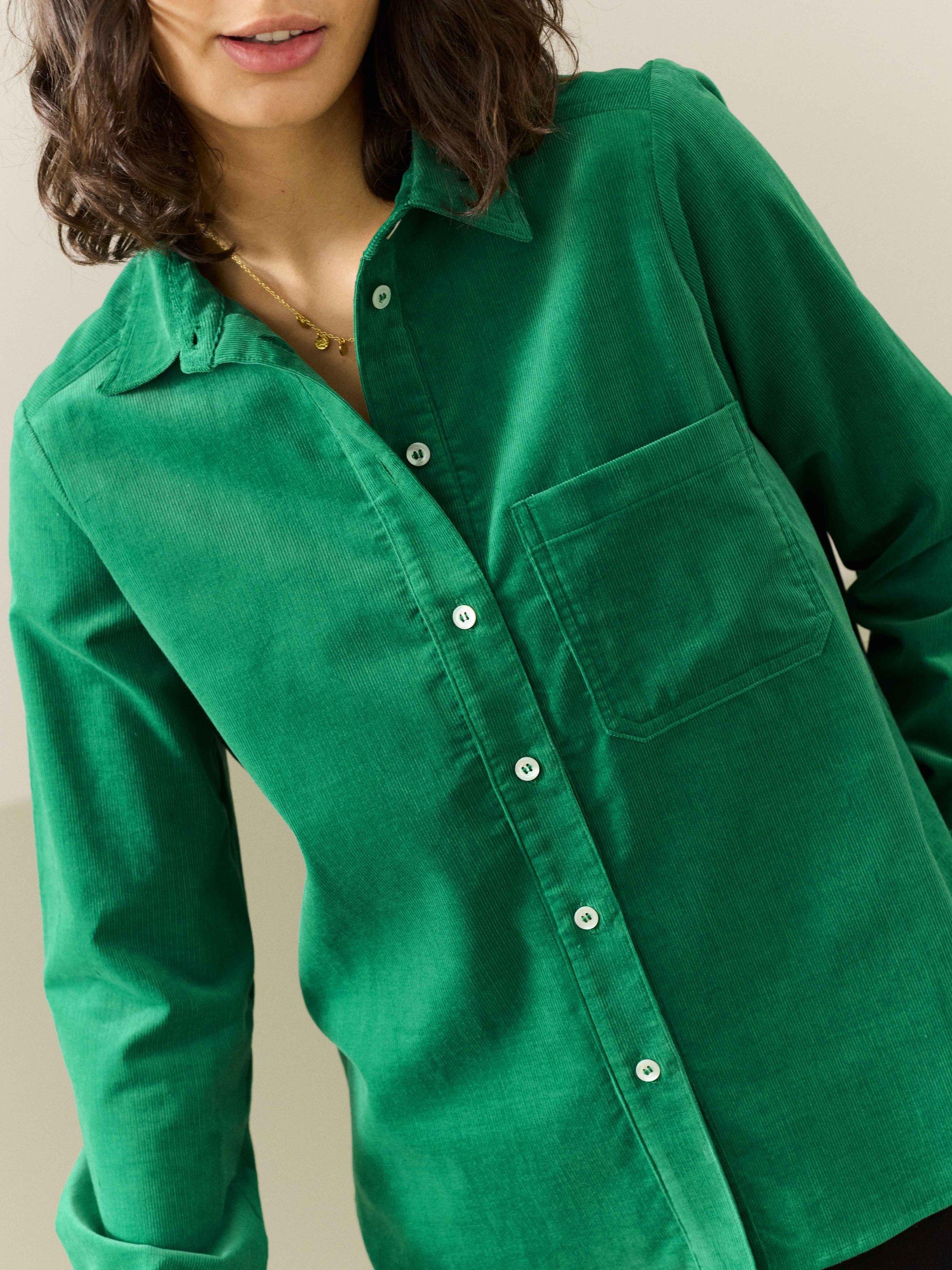 Made from breathable, Italian-woven cotton needlecord, this utility-style shirt features quirky contrast buttons, a curved hem and a single front patch pocket.