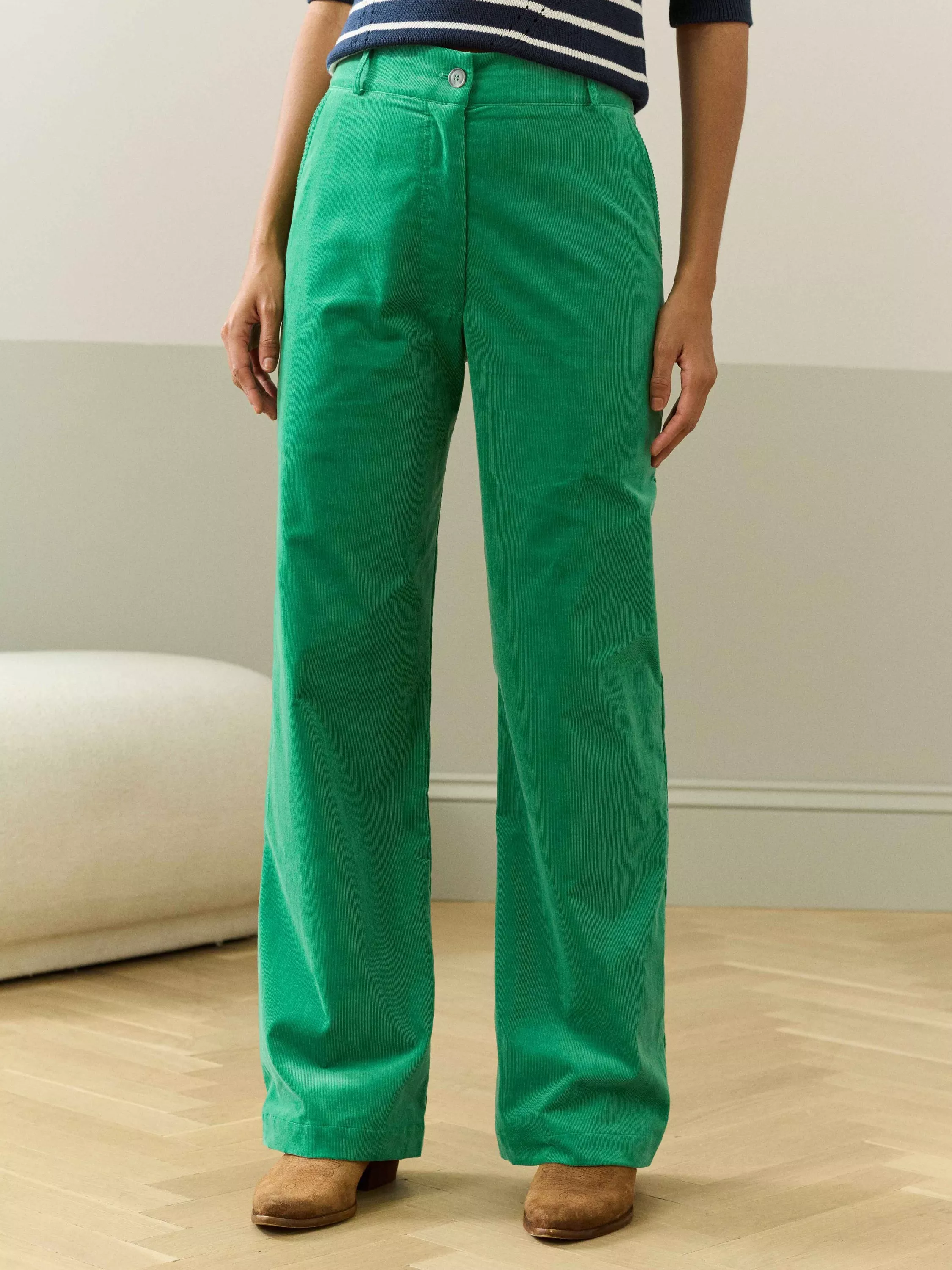 Made from Italian-woven cotton needlecord, these straight-leg trousers feature a button and zip fly, belt loops, subtle topstitching and functional pockets.