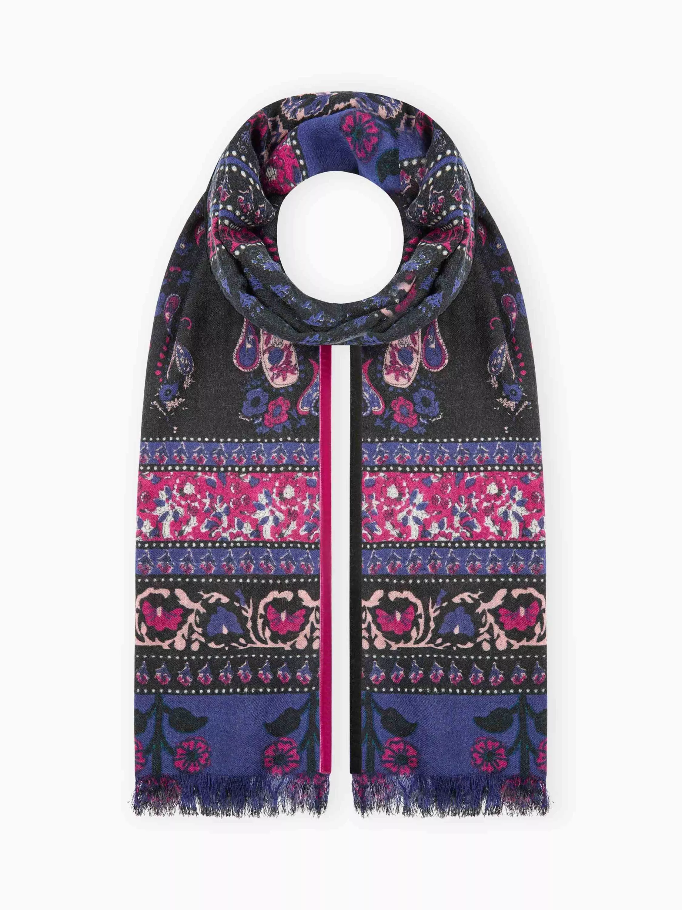 BroraPatchwork Velvet Trim Pure Wool Stole, Midnight/Mulberry