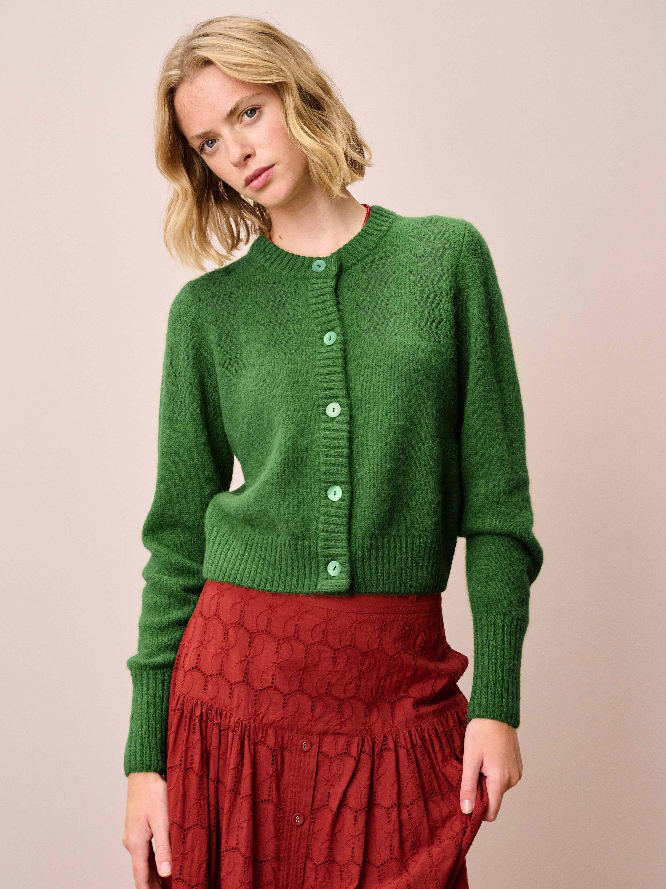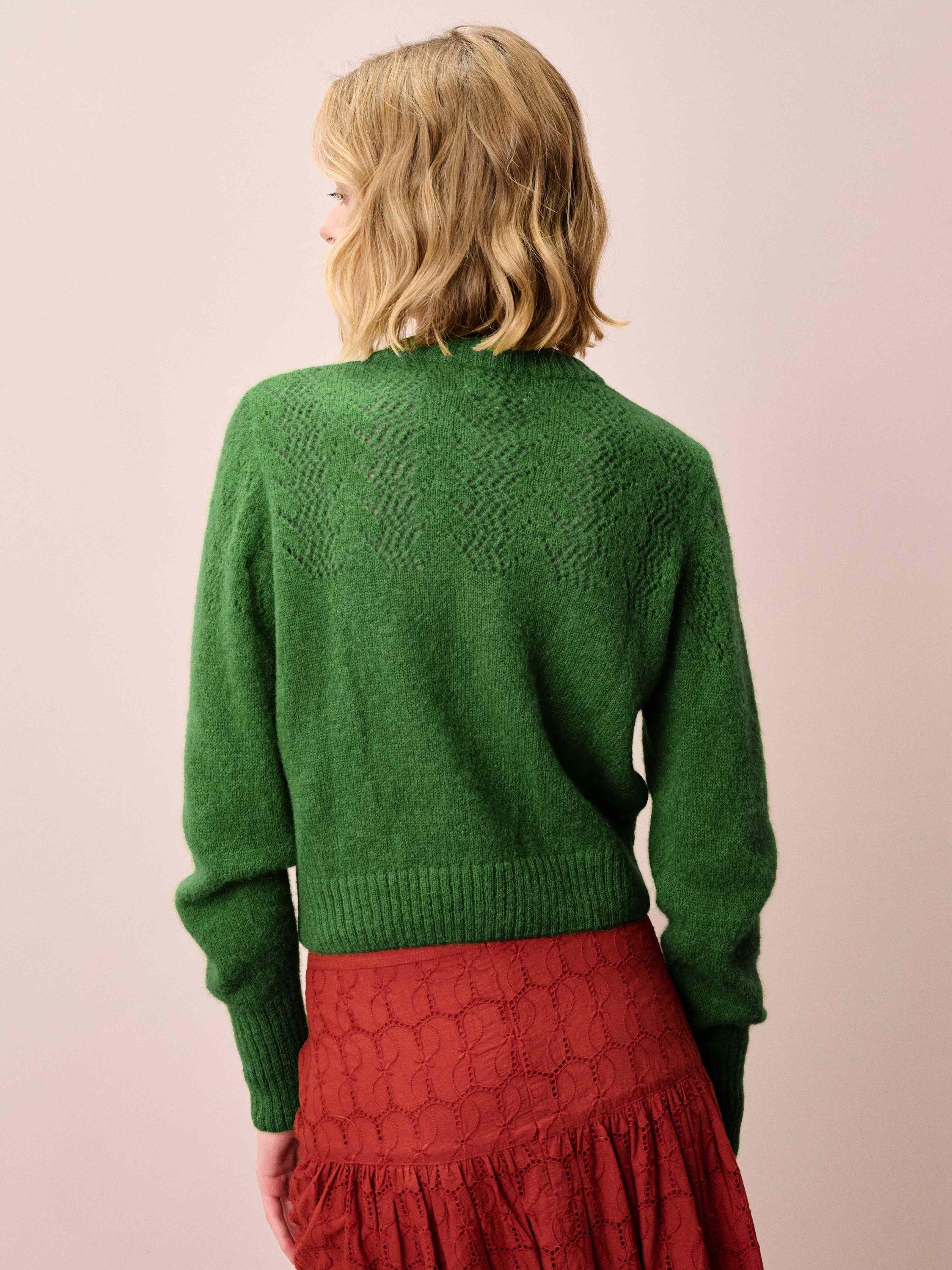 This gorgeous layer, complete with pointelle details across the yoke and shoulders, has been exquisitely knitted in Europe using a lustrous alpaca-merino blend and only the finest yarns spun by trusted experts in Italy.