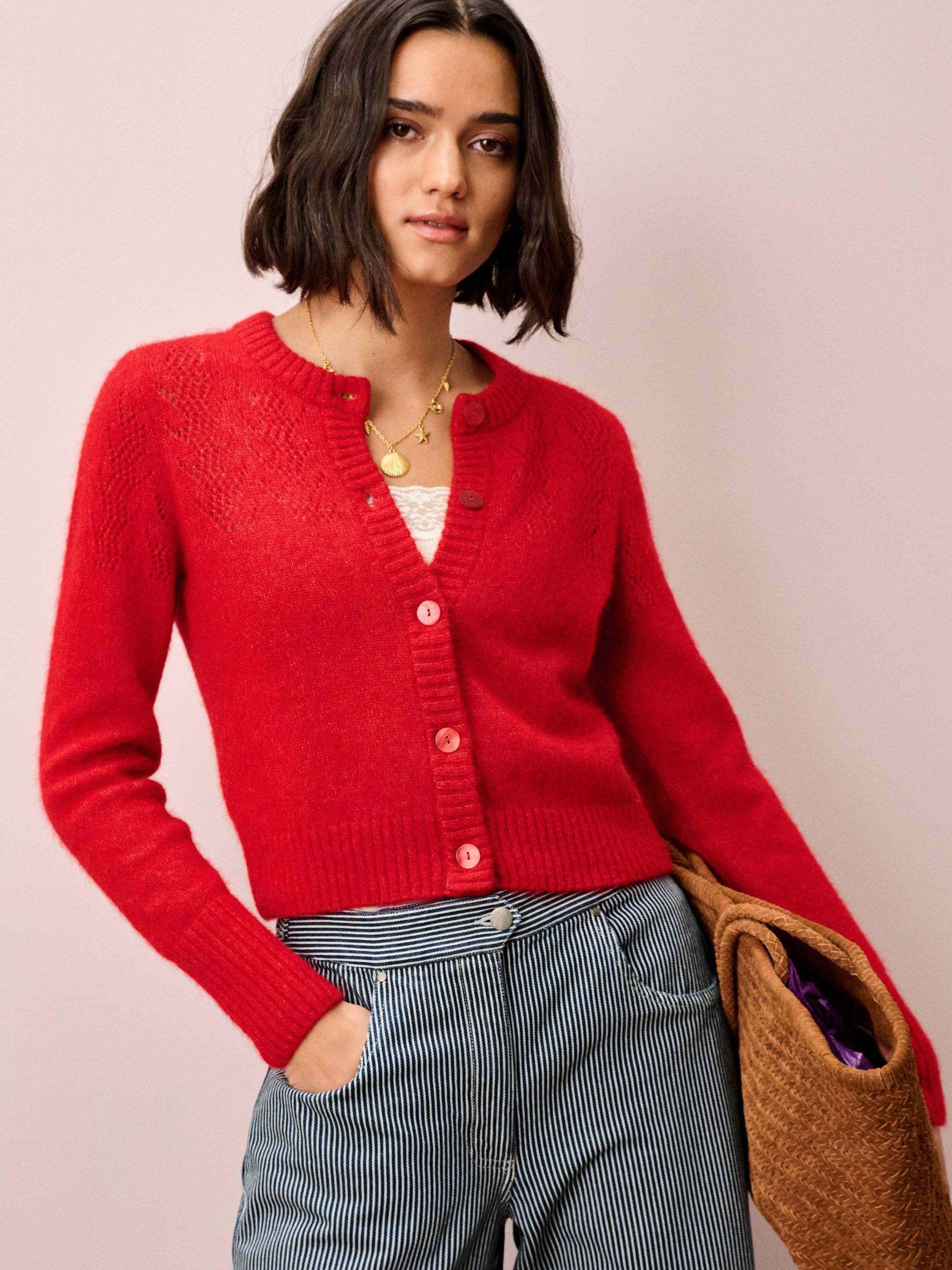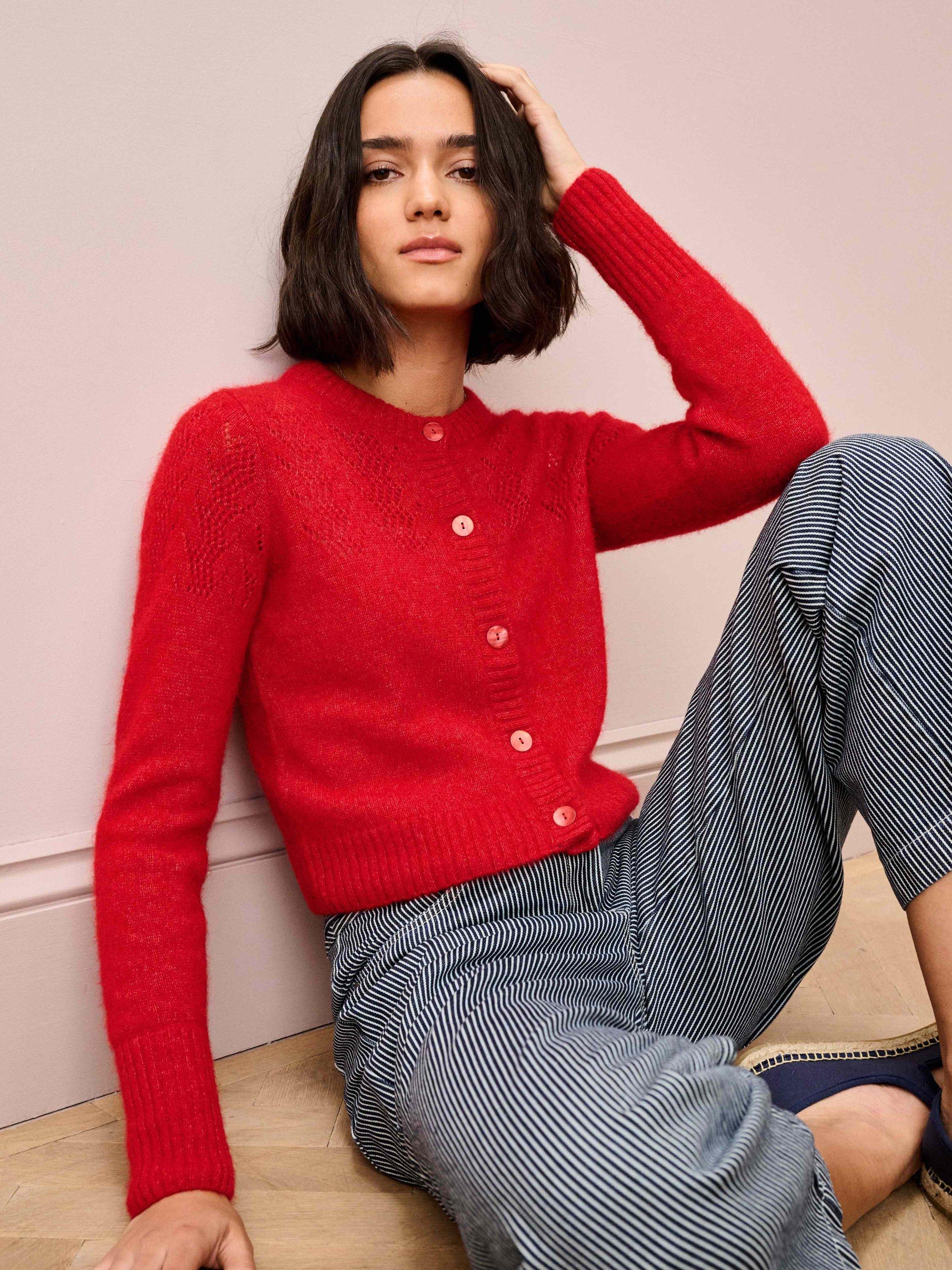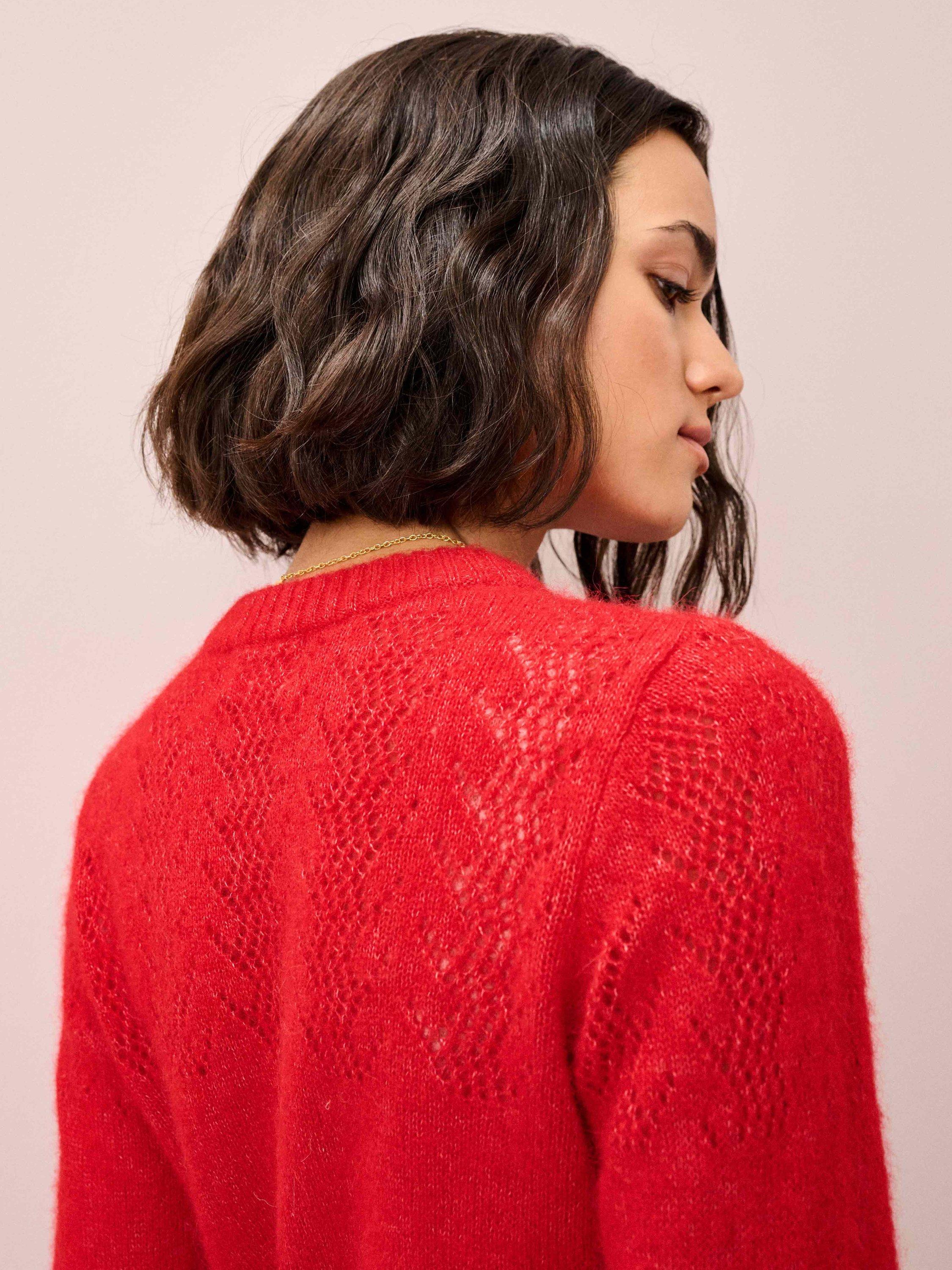 This gorgeous layer, complete with pointelle details across the yoke and shoulders, has been exquisitely knitted in Europe using a lustrous alpaca-merino blend and only the finest yarns spun by trusted experts in Italy.