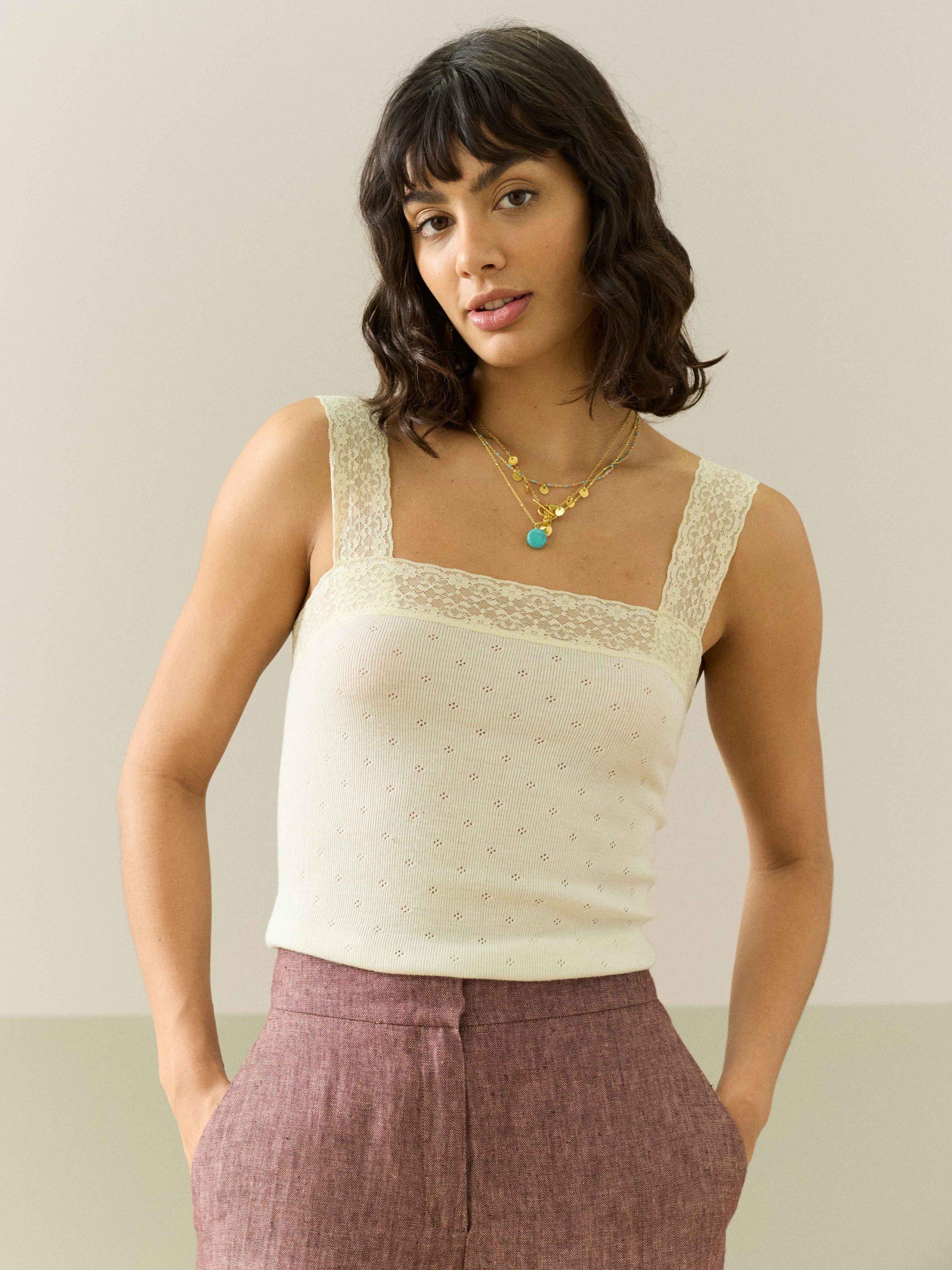 Keep things pretty and simple with this Lace Trim Cami from Brora. The ultimate in comfort, slip over your favourite trousers for effortless outfitting.