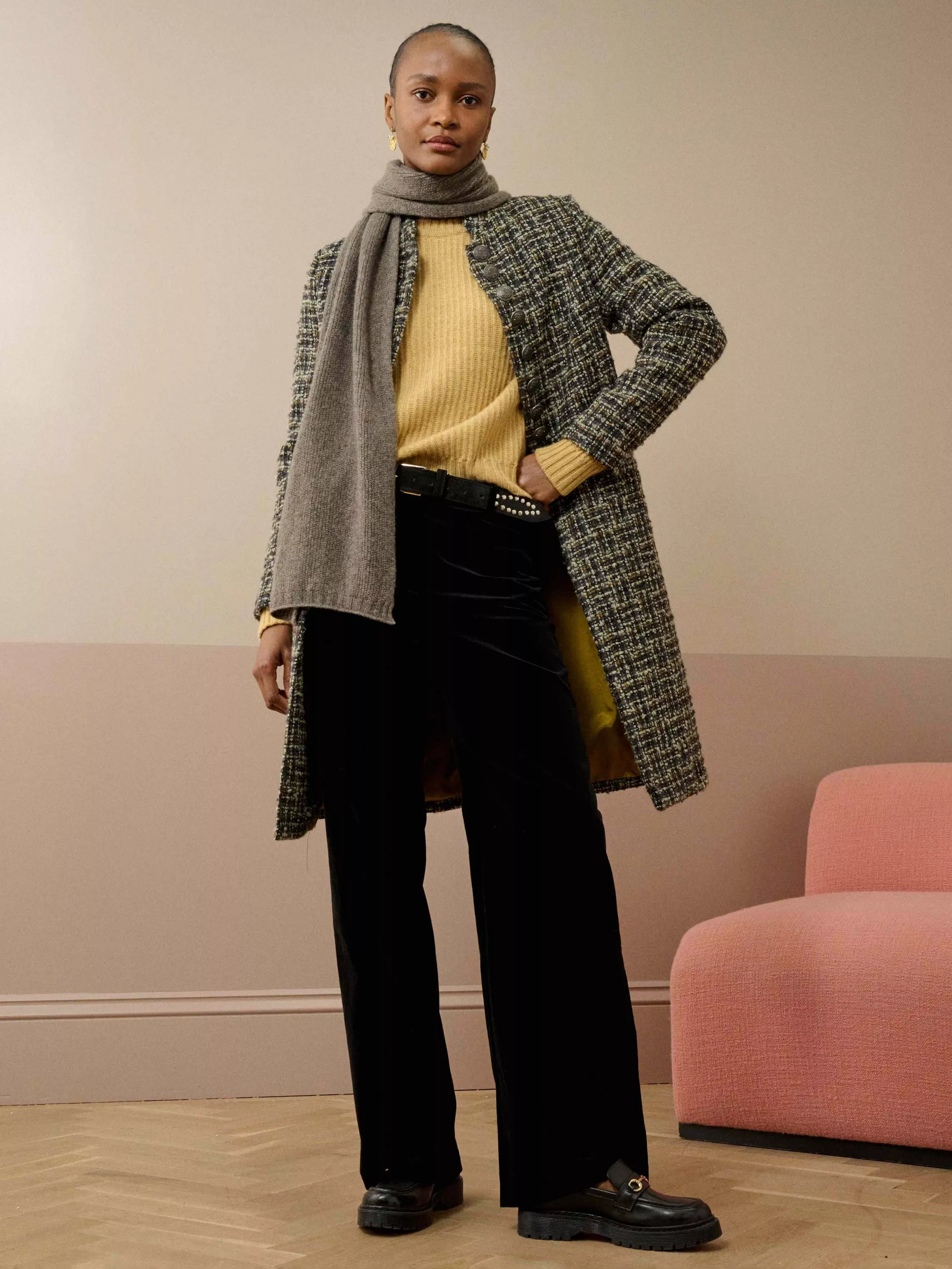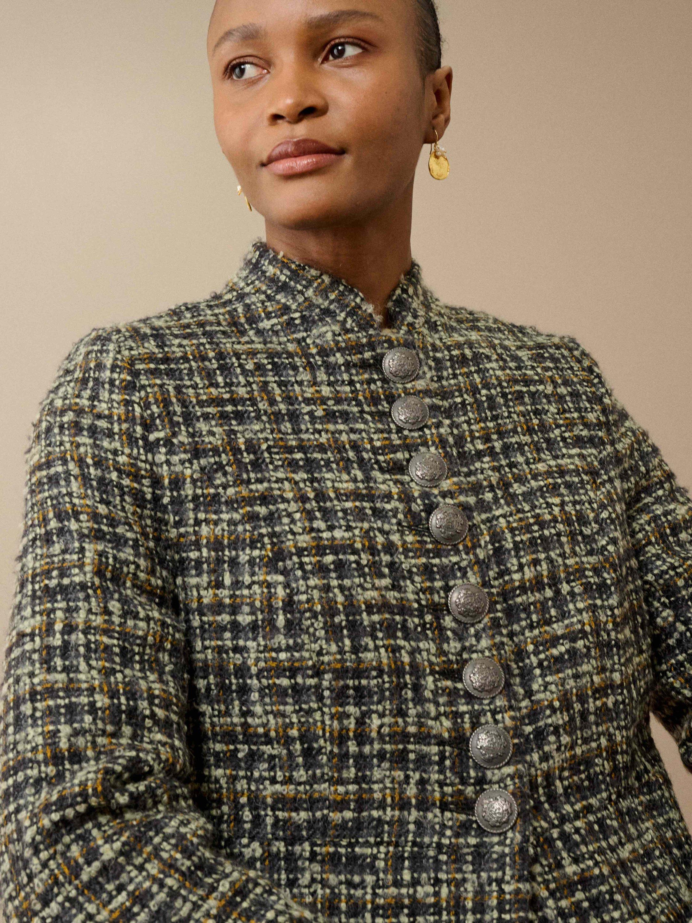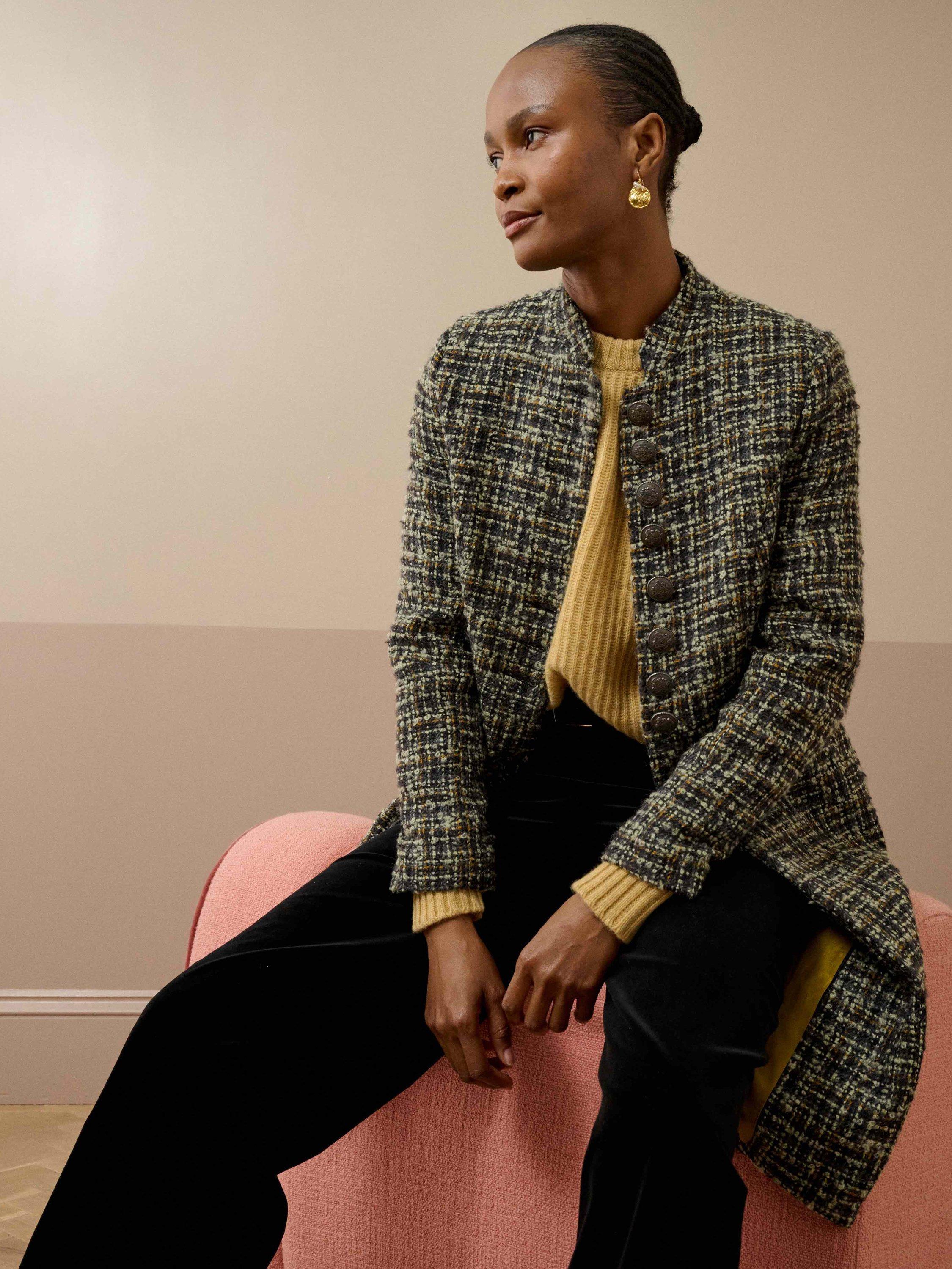 Expertly woven in Scotland from a luxurious mohair-wool blend, then tailored to perfection in our London atelier, this cosy heritage coat features front welt pockets and statement, embossed metal buttons down the placket.