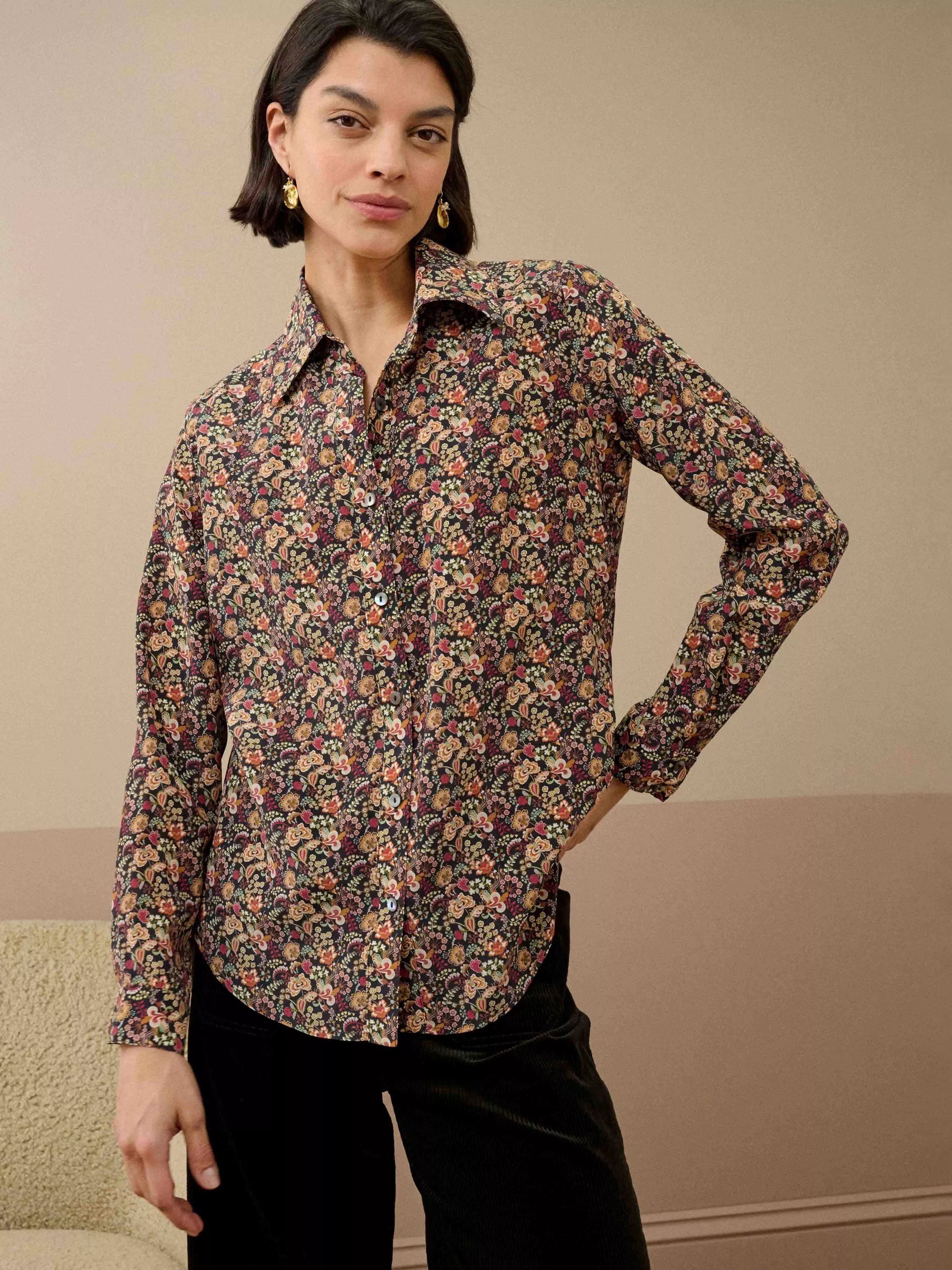 Delivering a standout look on its own and when styled under a cashmere knit, this silk crepe-de-chine shirt has been made from a striking Liberty fabric and finished with a pointed collar, curved hem and buttoned cuffs.