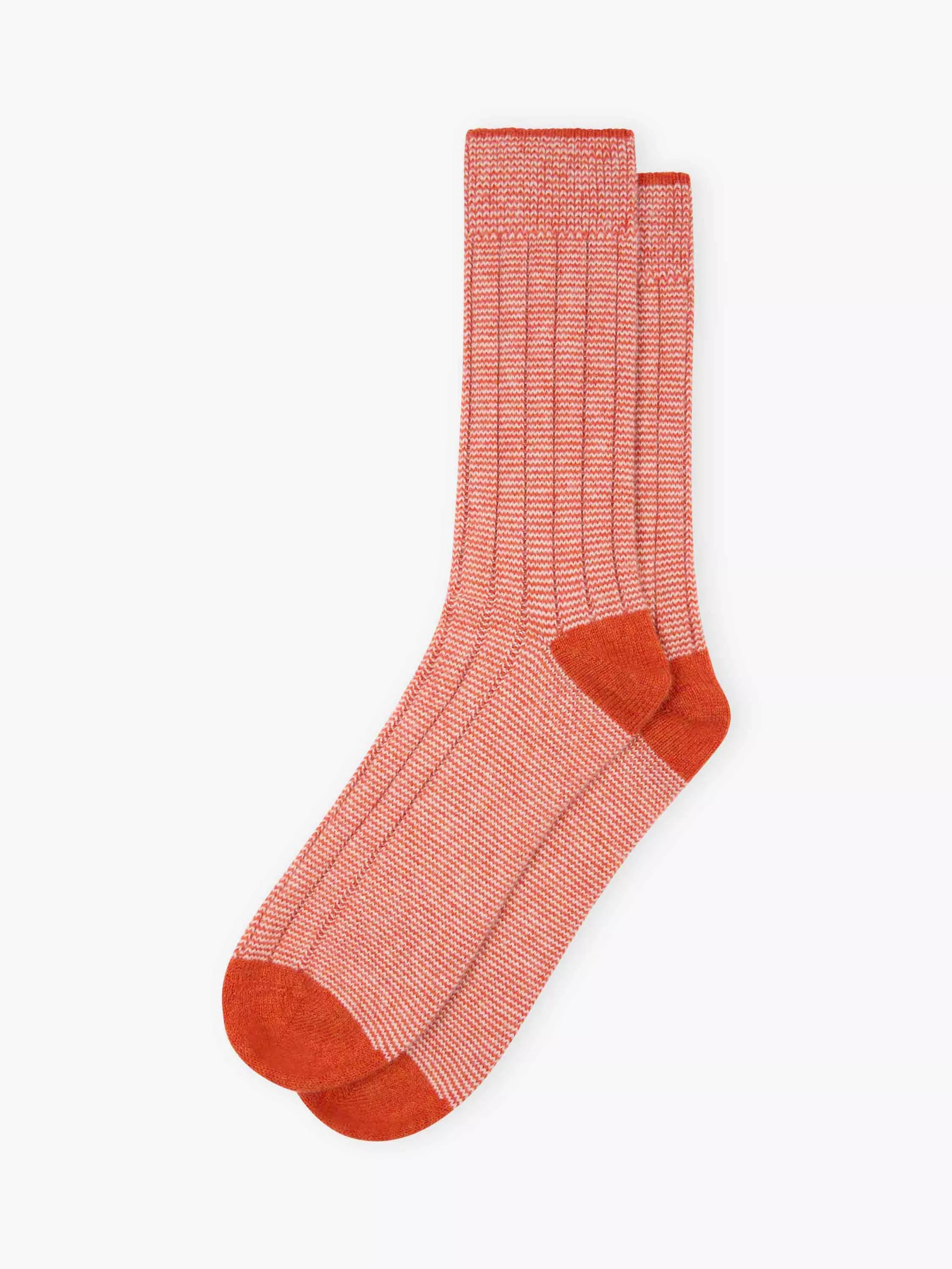 Add some pizzazz to your wardrobe with these finely striped socks, knitted using only the very finest Scottish cashmere yarns with contrasting colour pops on the heels, toes and cuffs. Whoever said socks couldn't be chic?