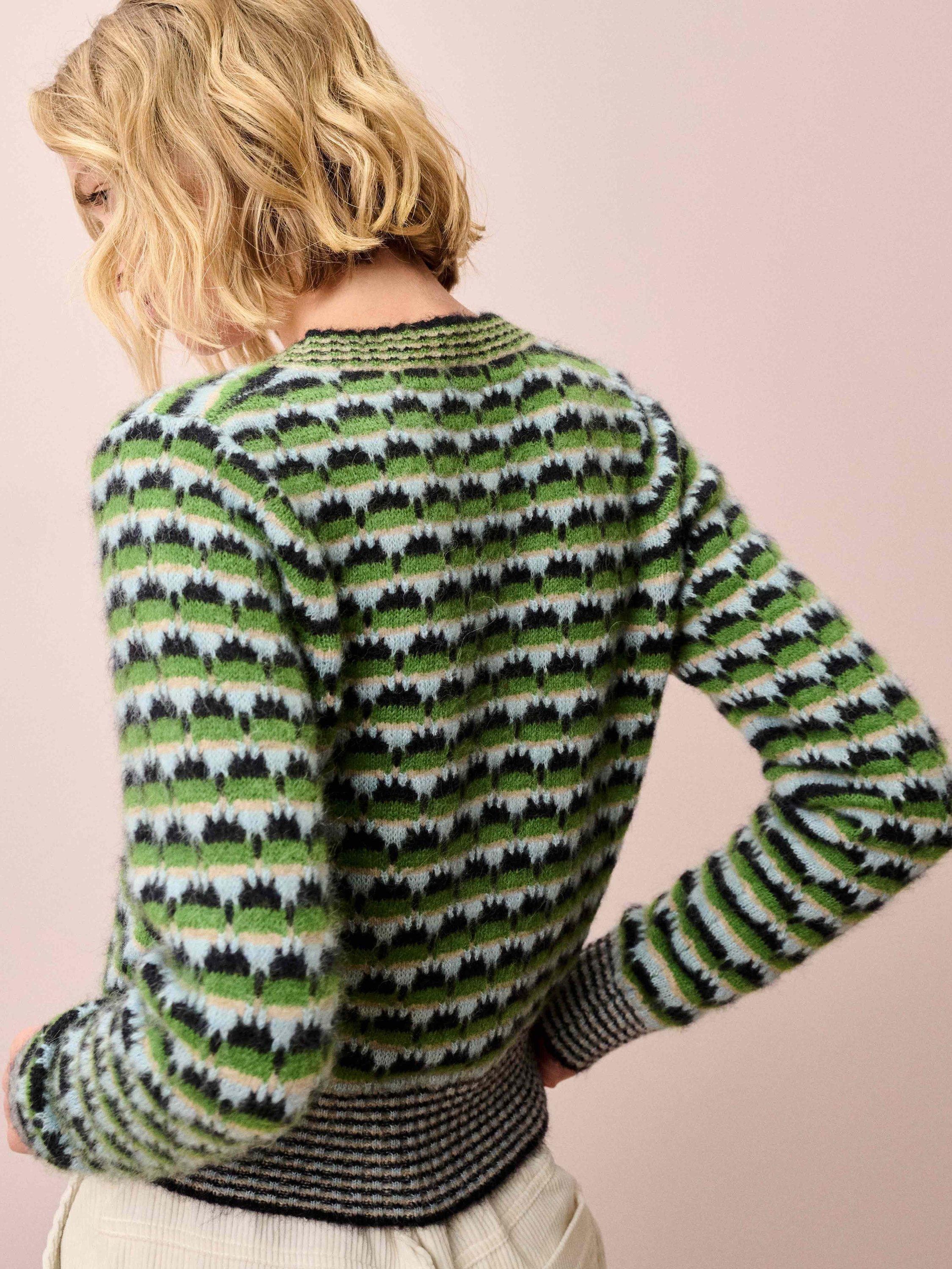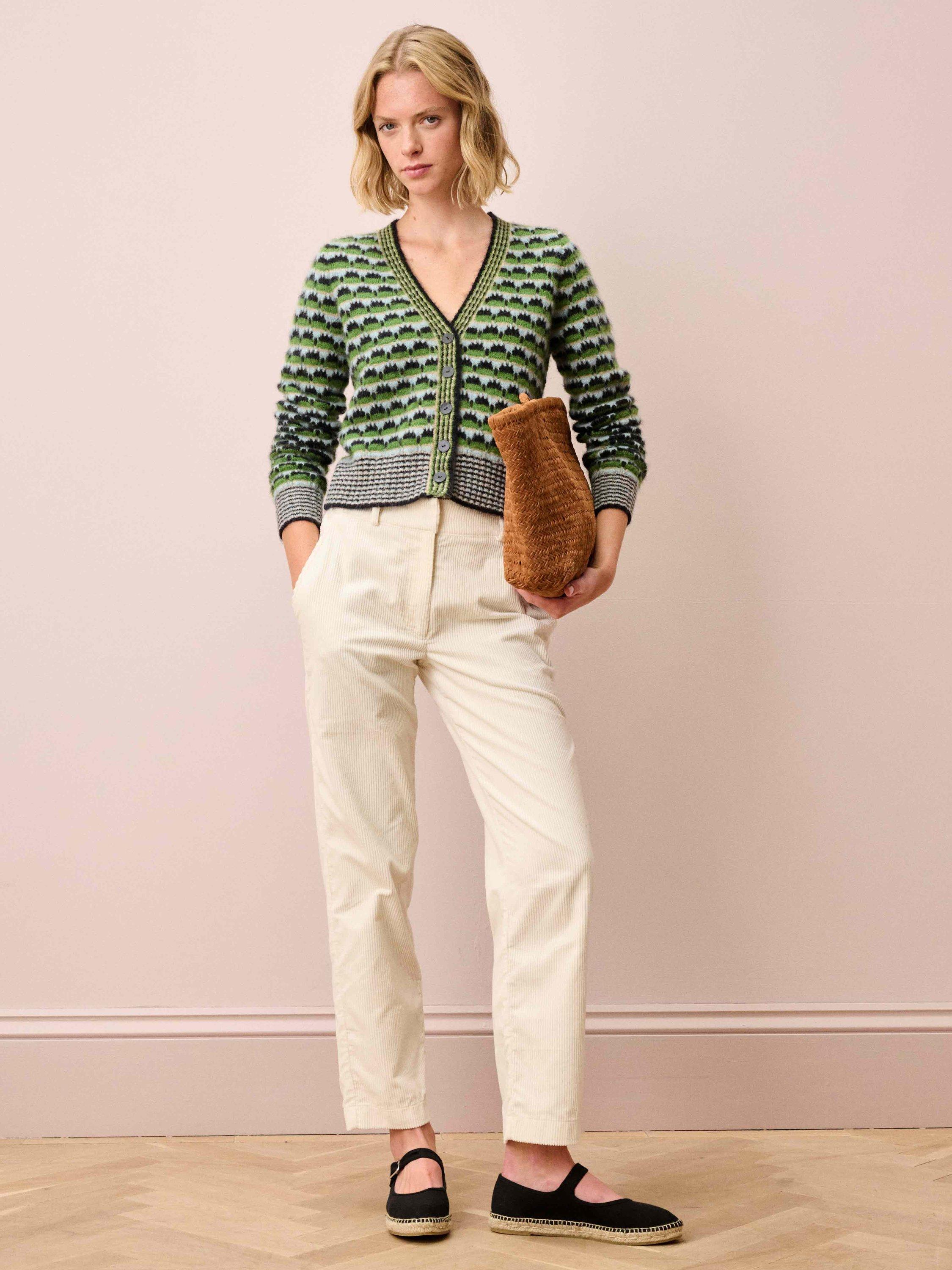 Expertly knitted using the finest Italian-spun yarns and an exquisite alpaca-merino blend, this eye-catching Textured Cardigan, with its flattering low V-neck and striped rib trims, will really turn heads this season.