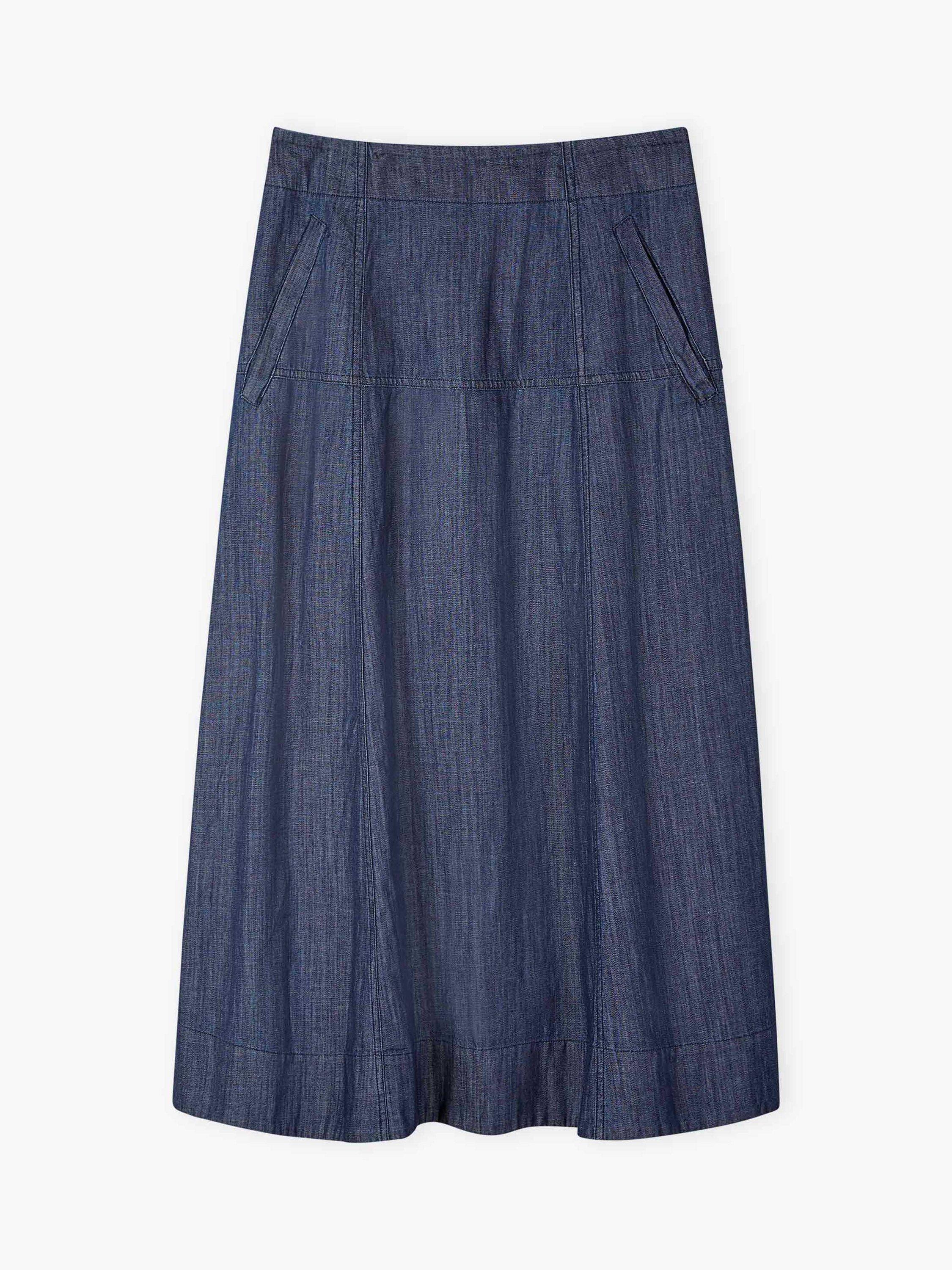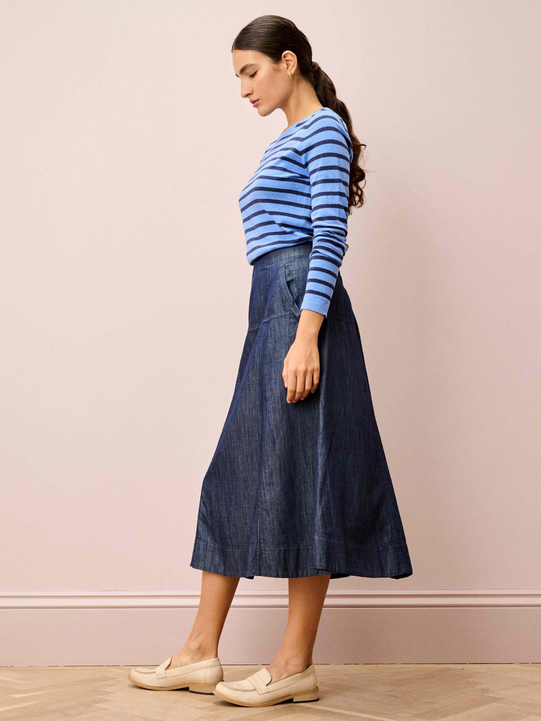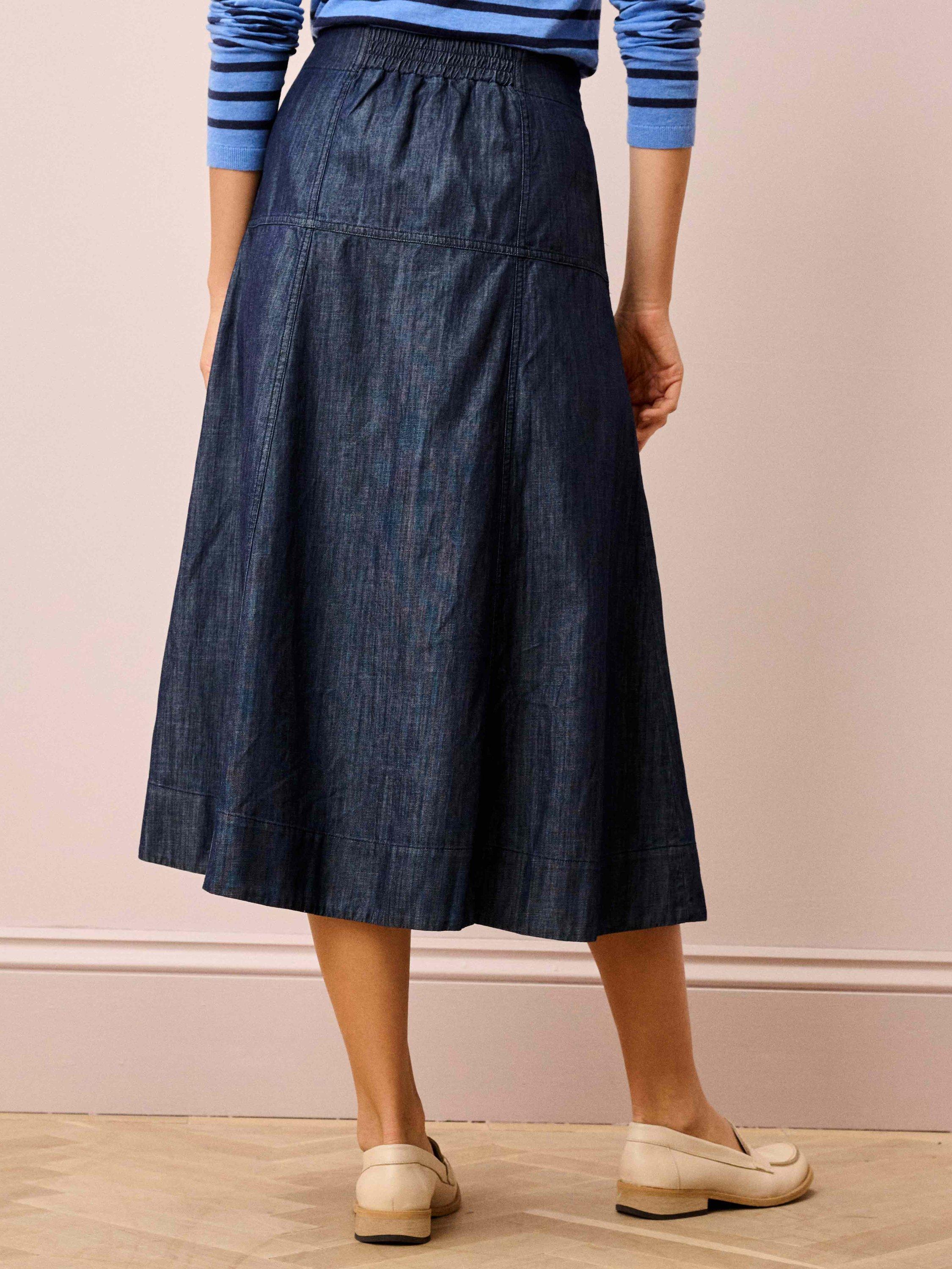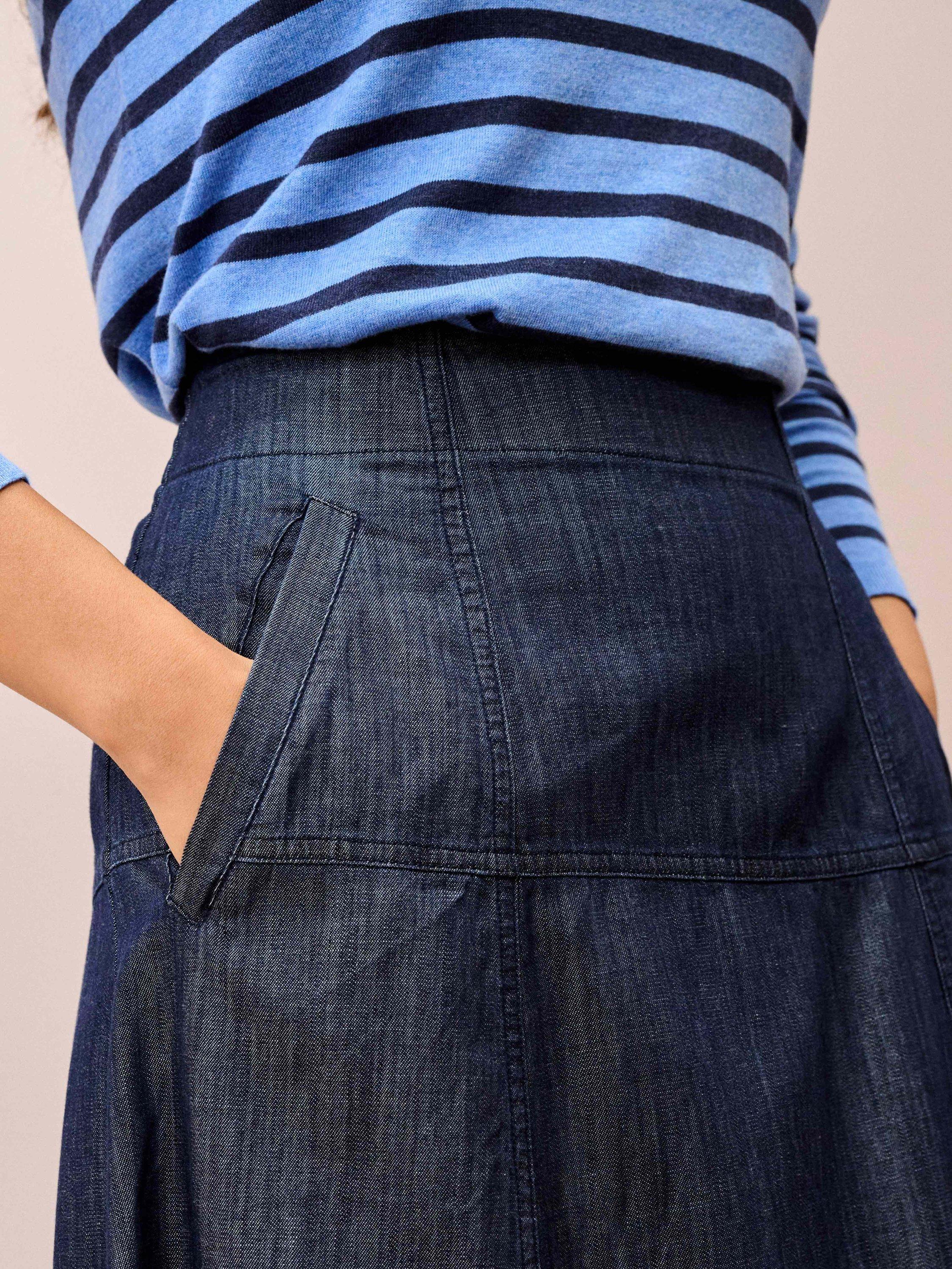 Made using breathable cotton, this take on a denim midi, complete with an elasticated waist panel and welt pockets, is the answer to effortless everyday outfitting.