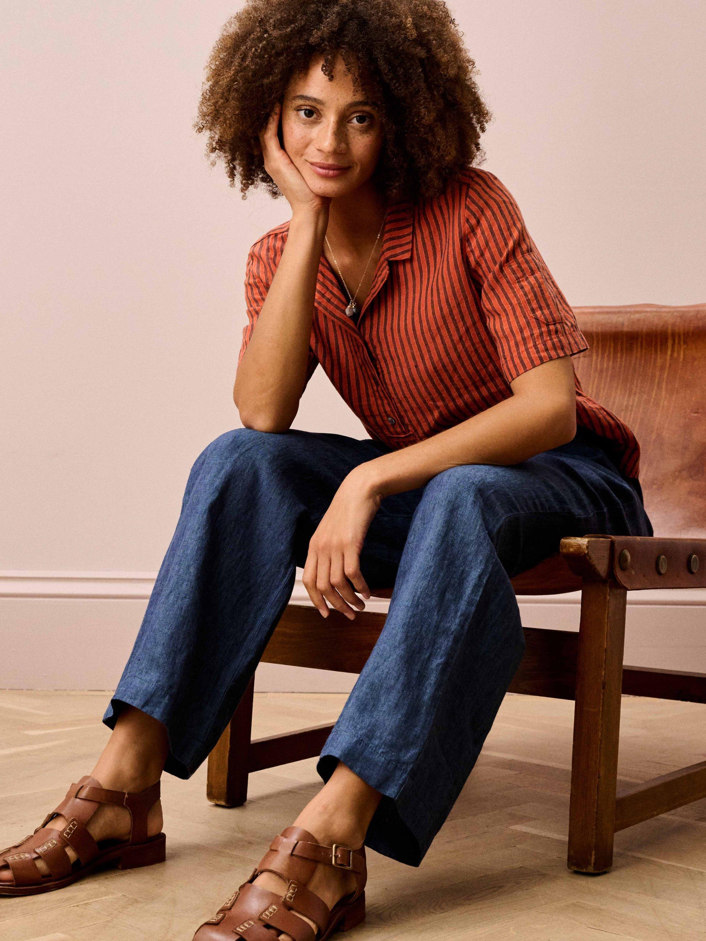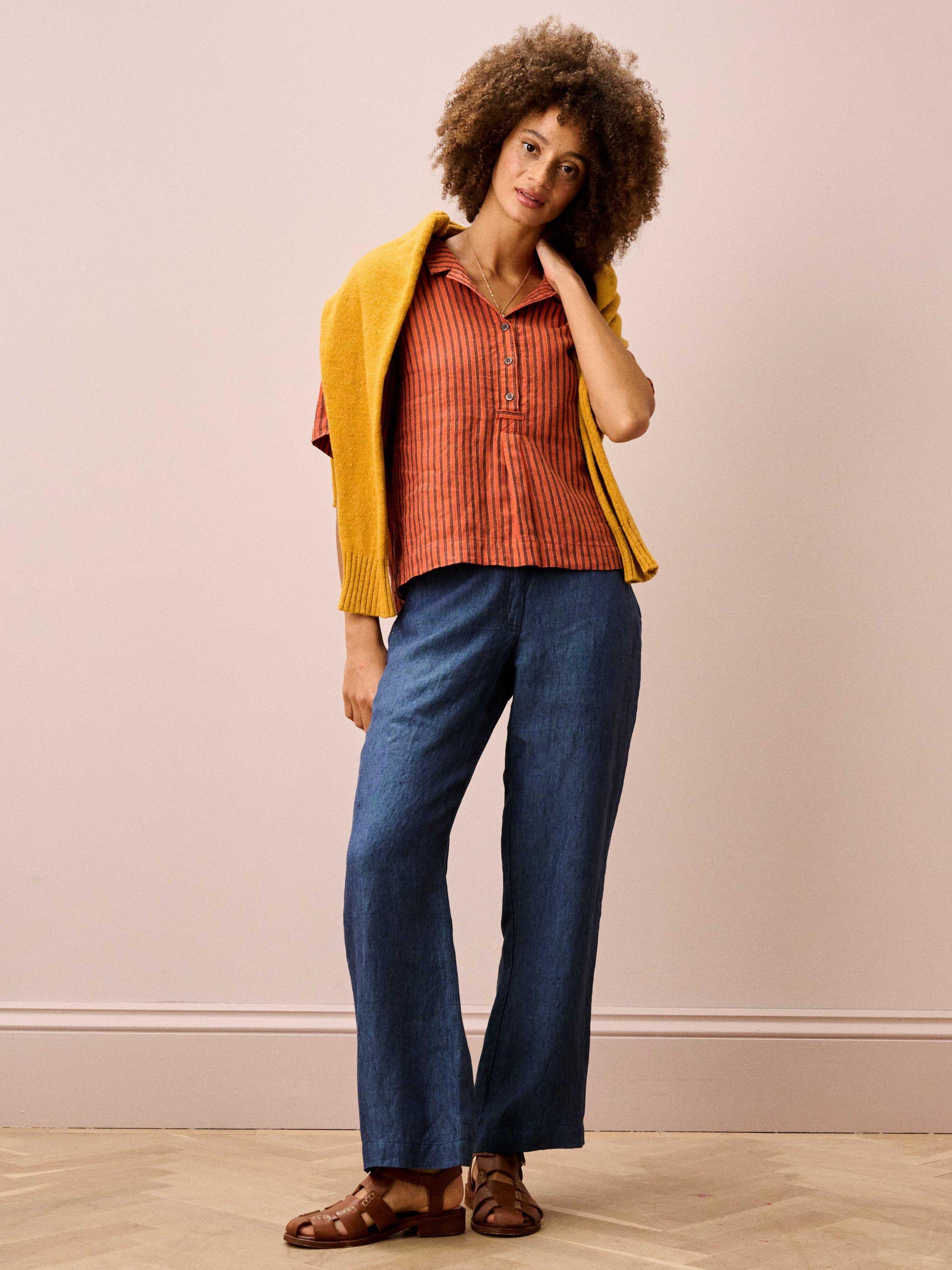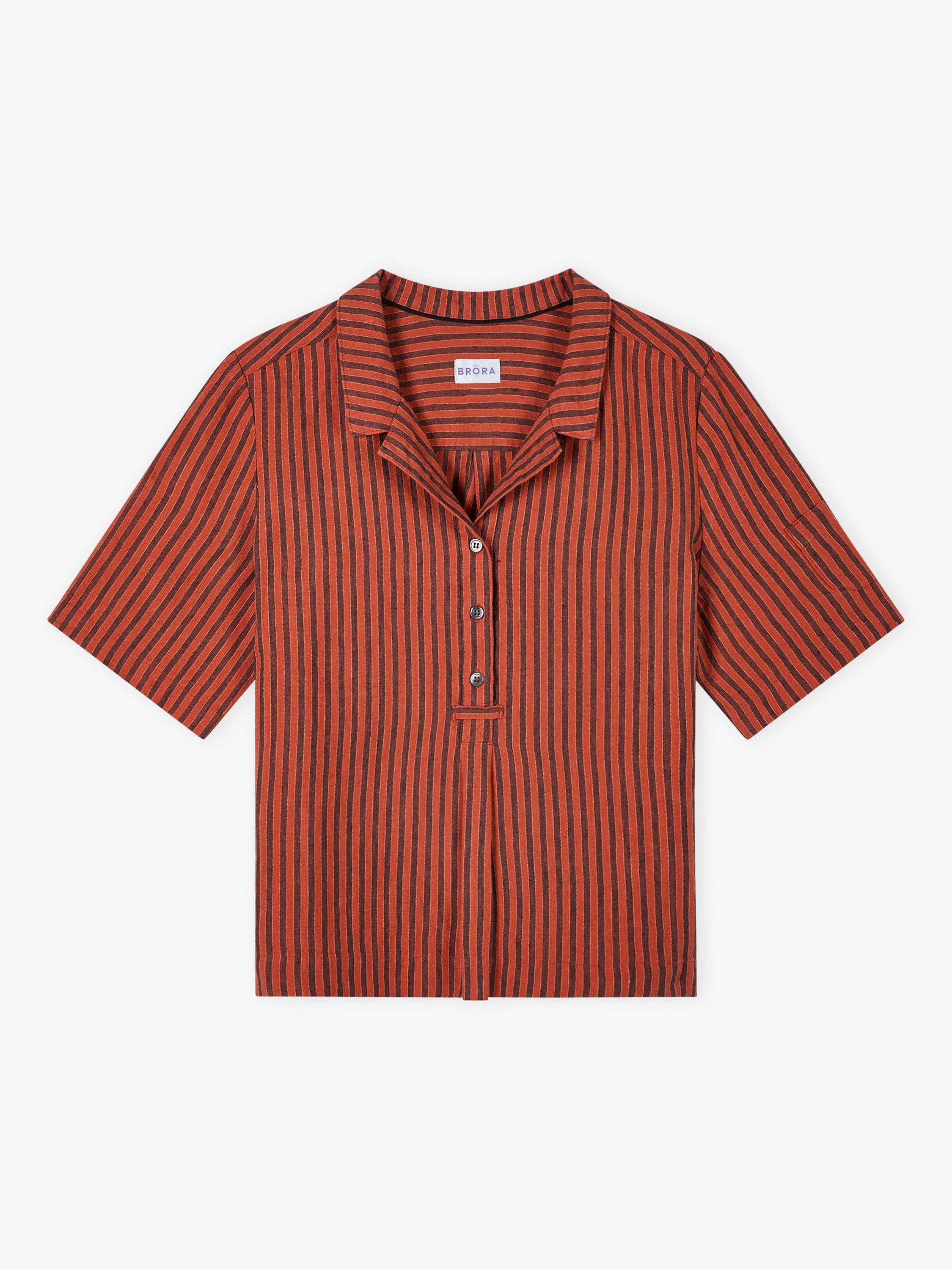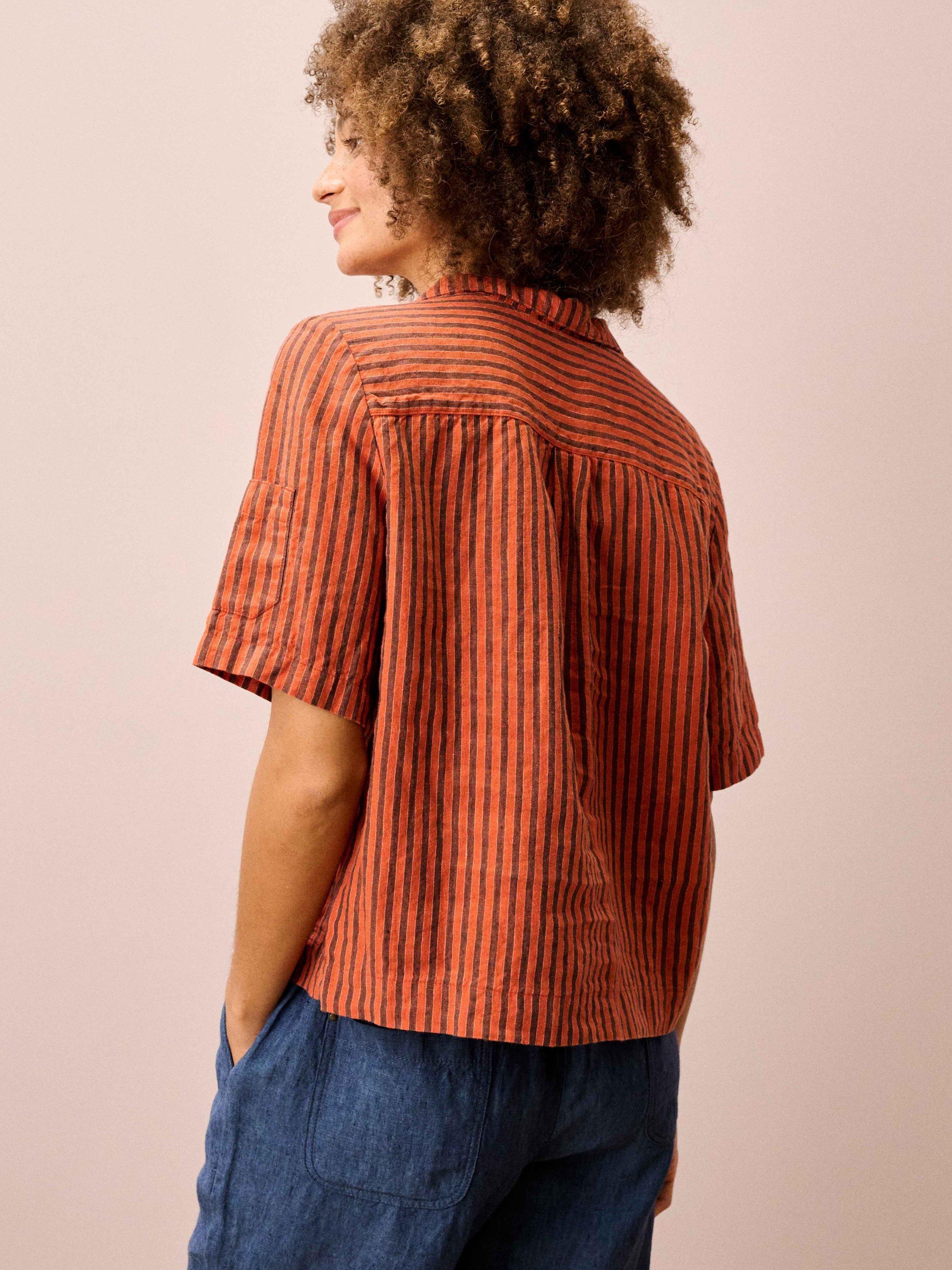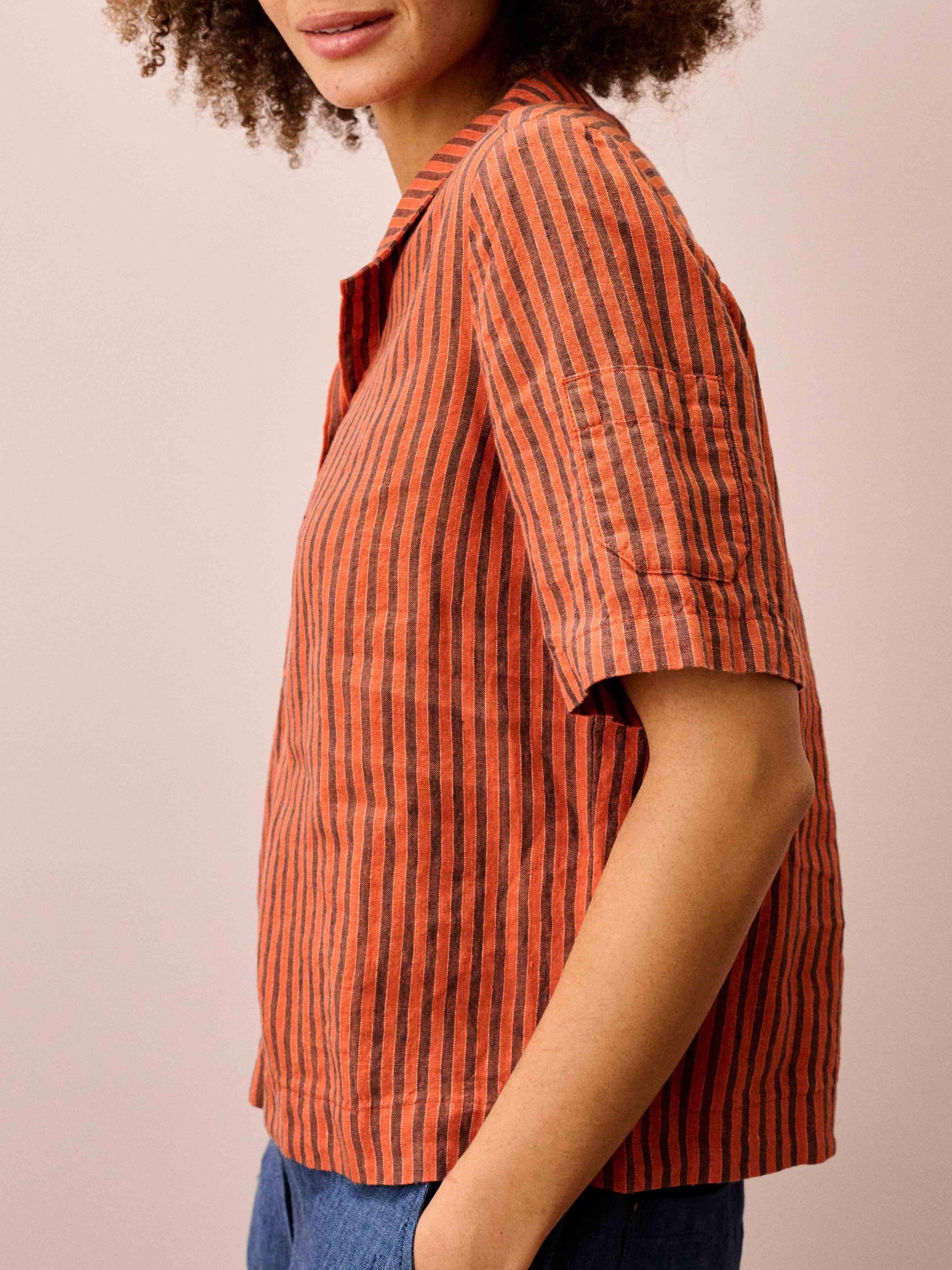 BroraUtility Stripe Pure Linen Top, Charcoal/Paprika