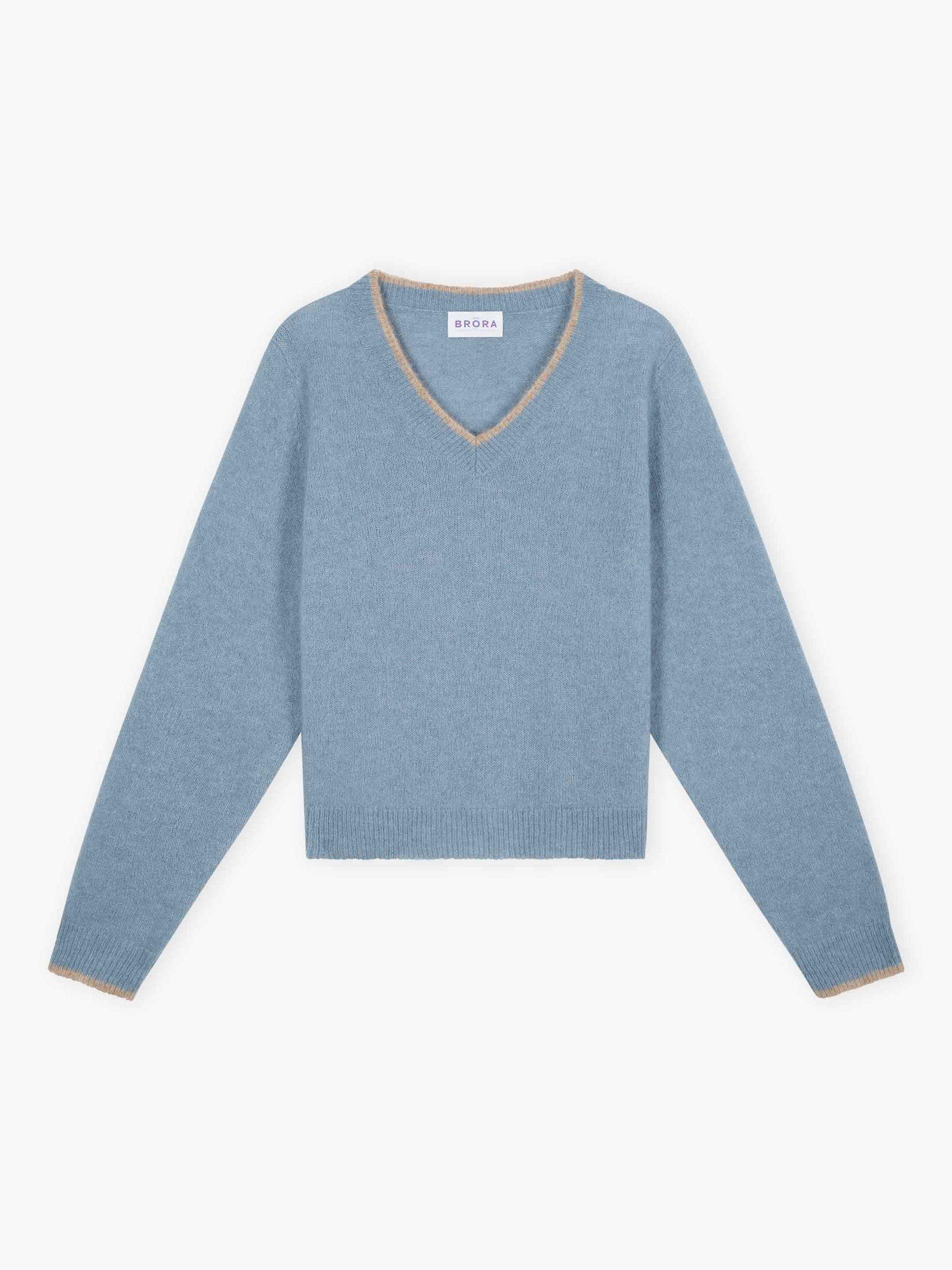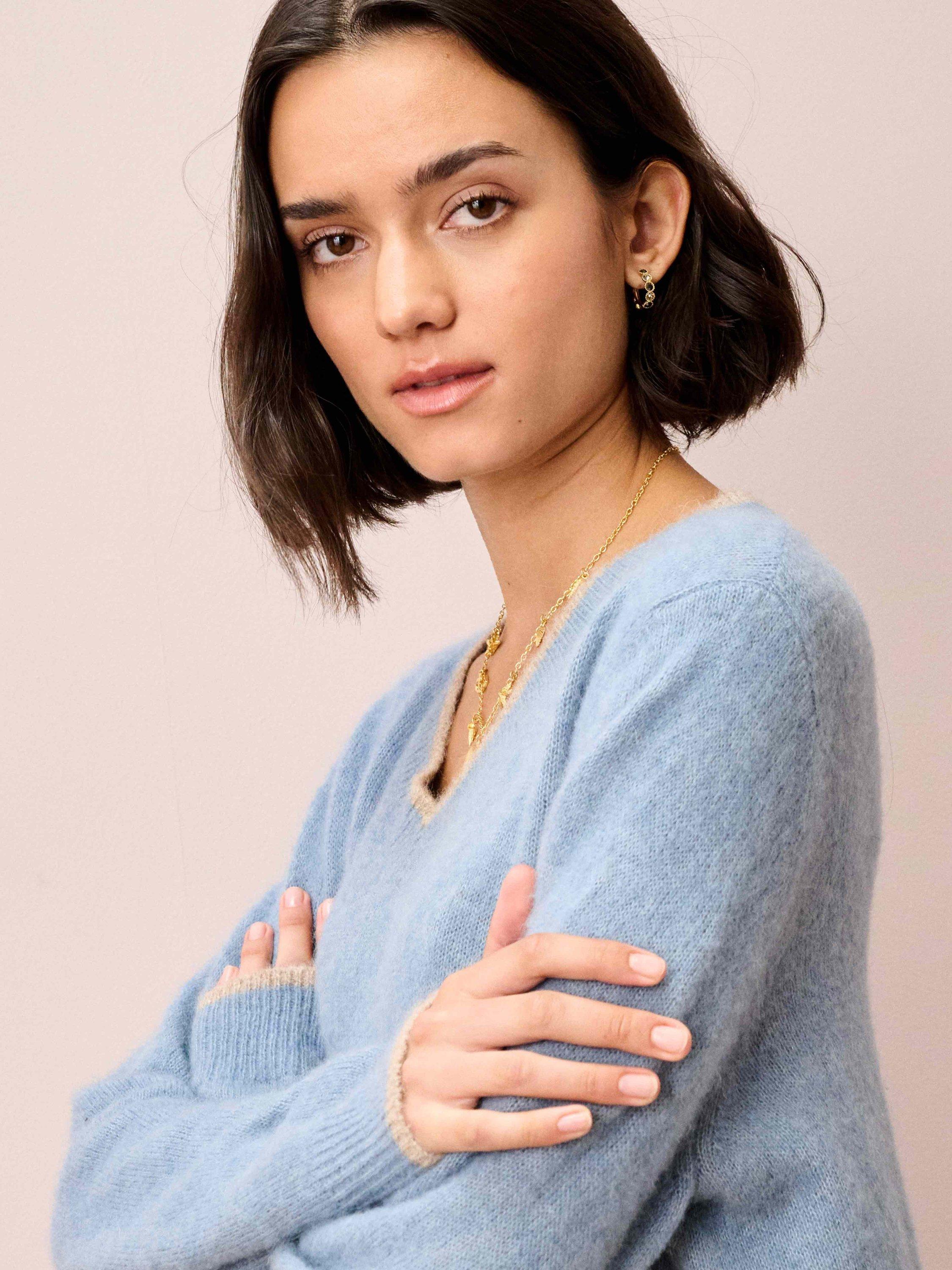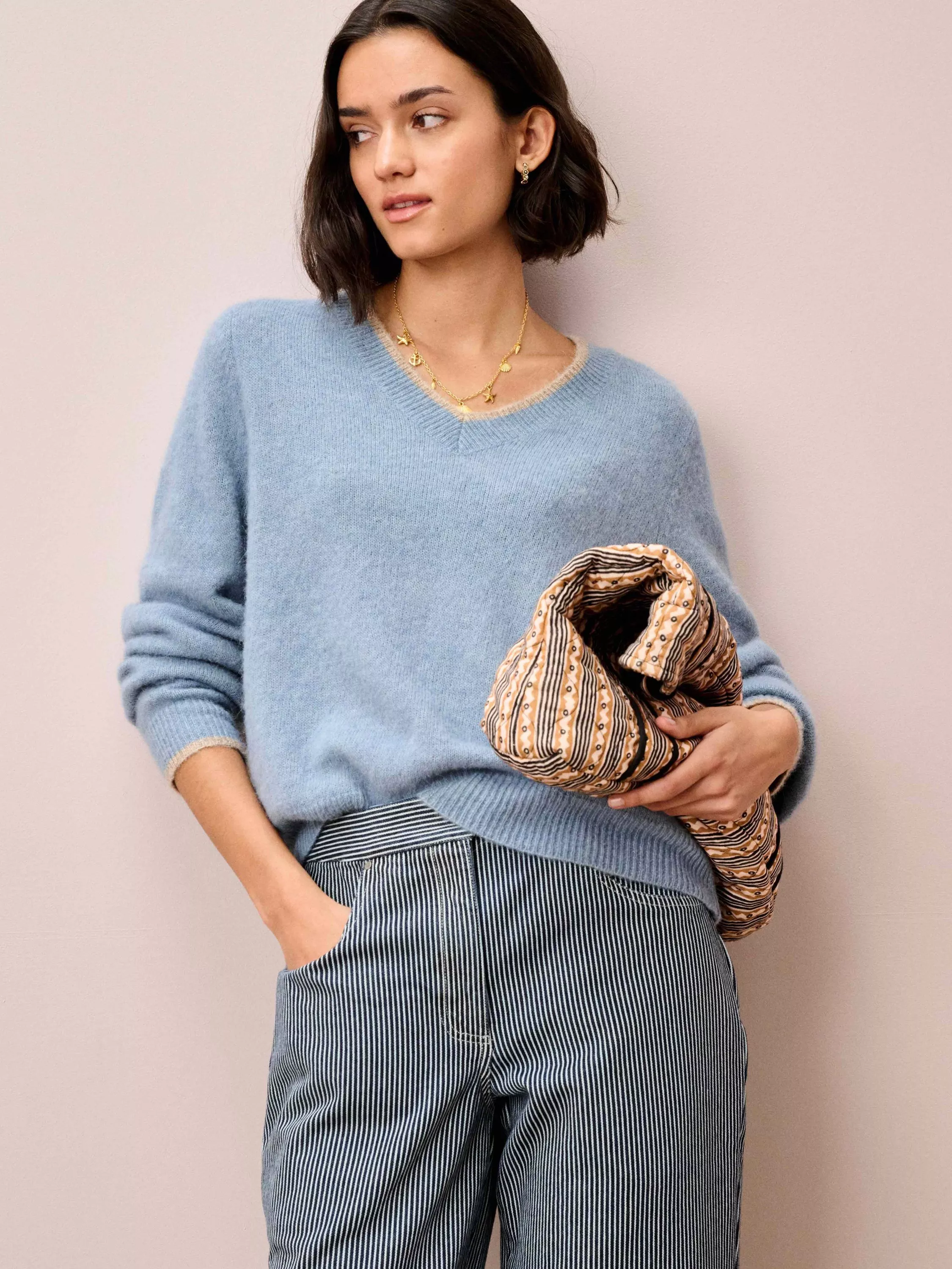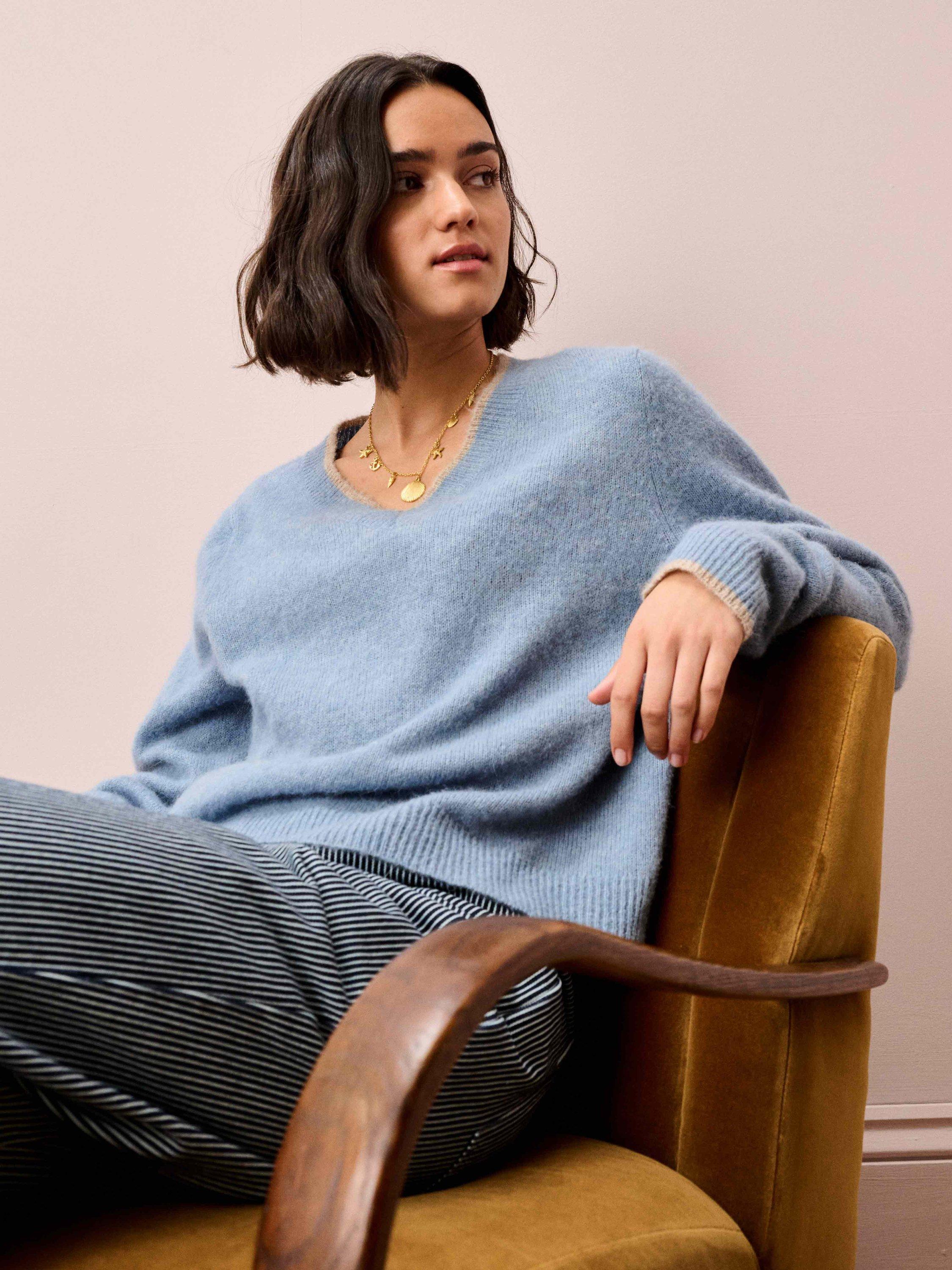 Expertly knitted using only the finest Italian-spun yarns and an exquisite supersoft alpaca-merino wool blend, this charming jumper comes with contrast-tipped rib trims and a flattering V-neck.