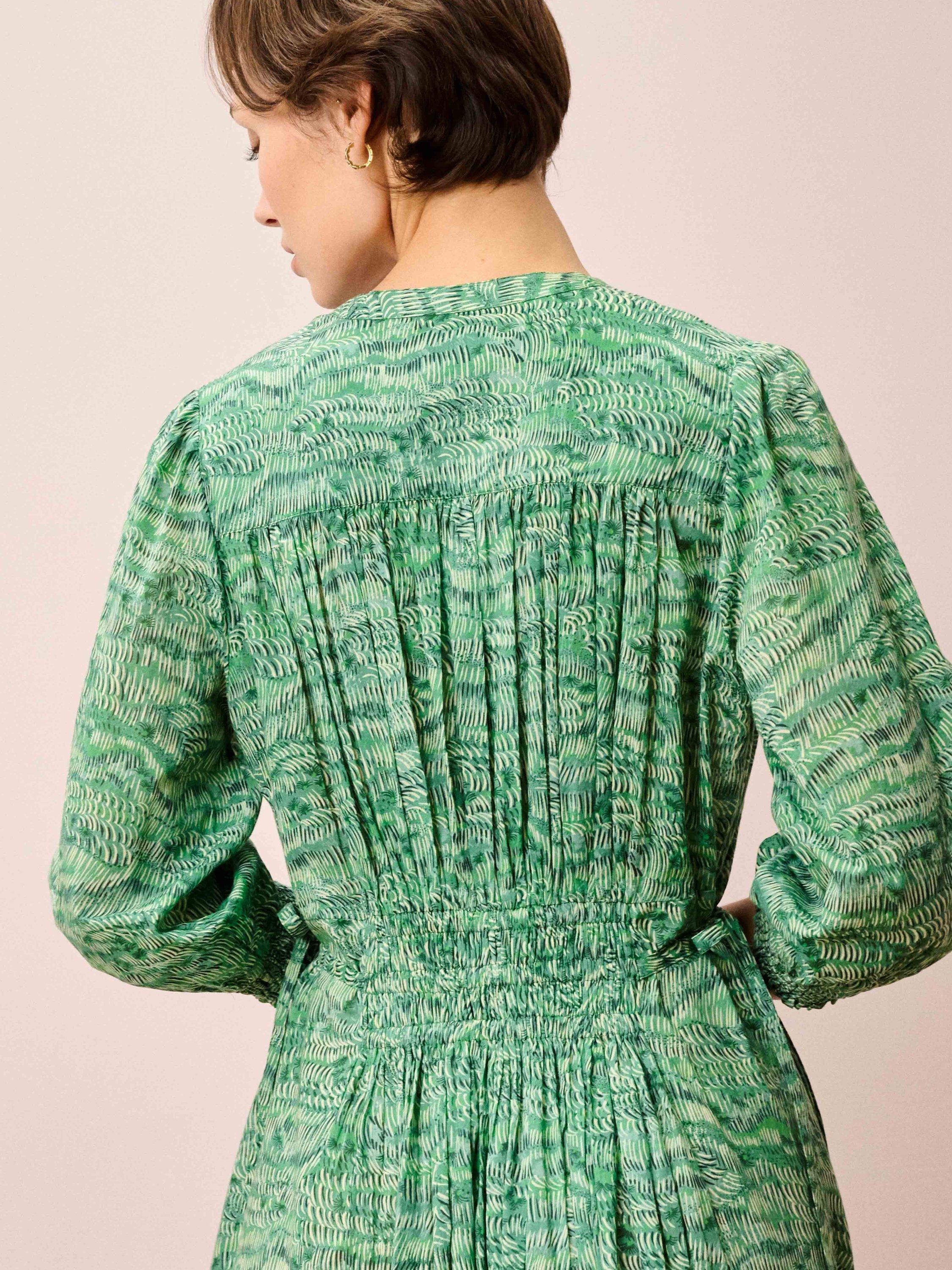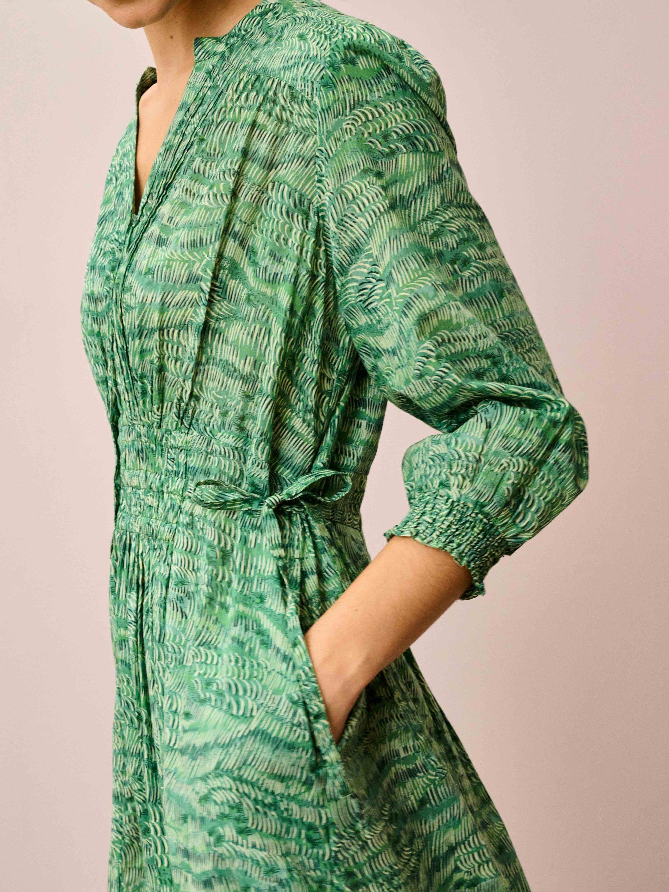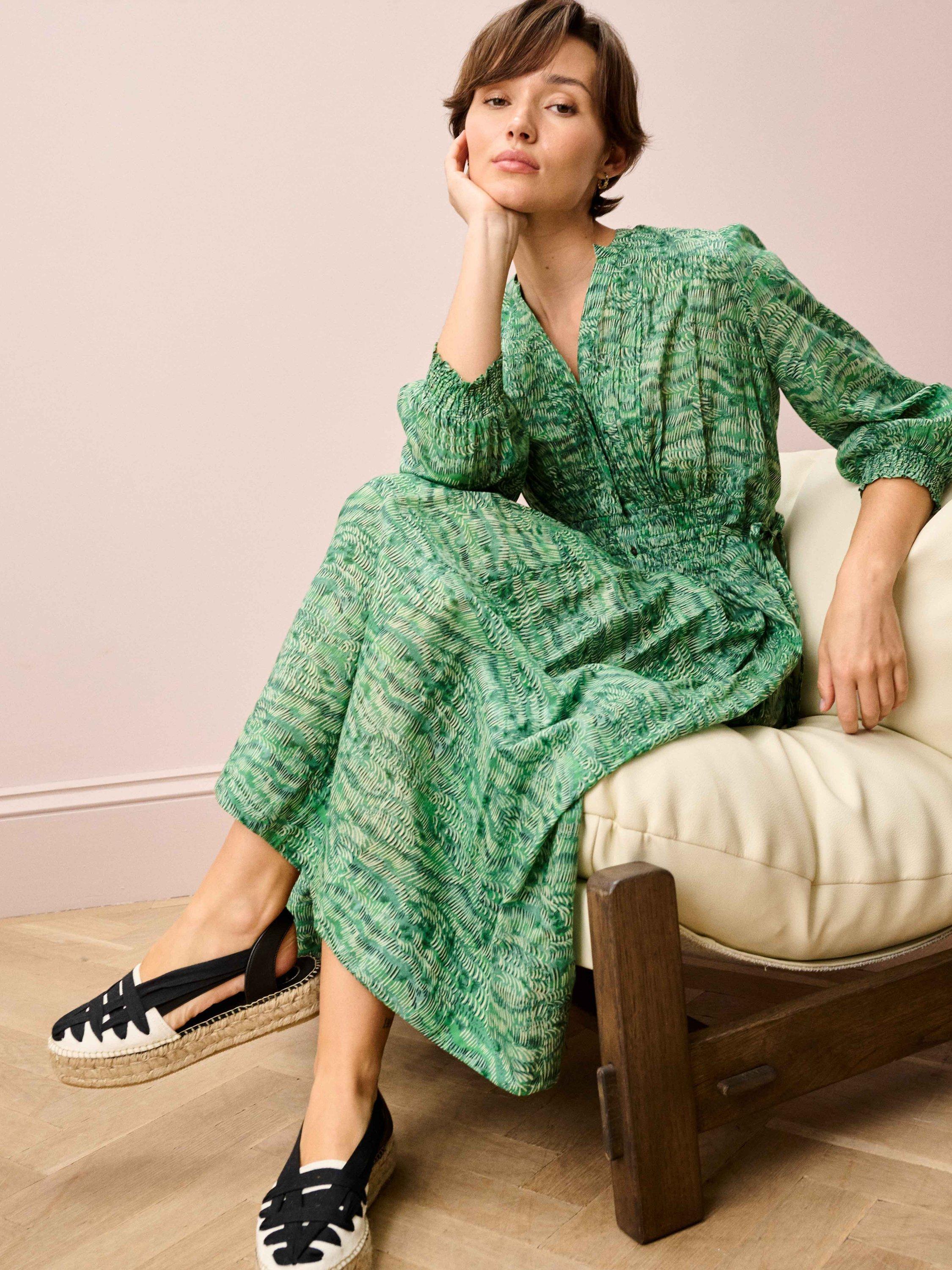 BroraV-Neck Painterly Print Midi Dress, Jade