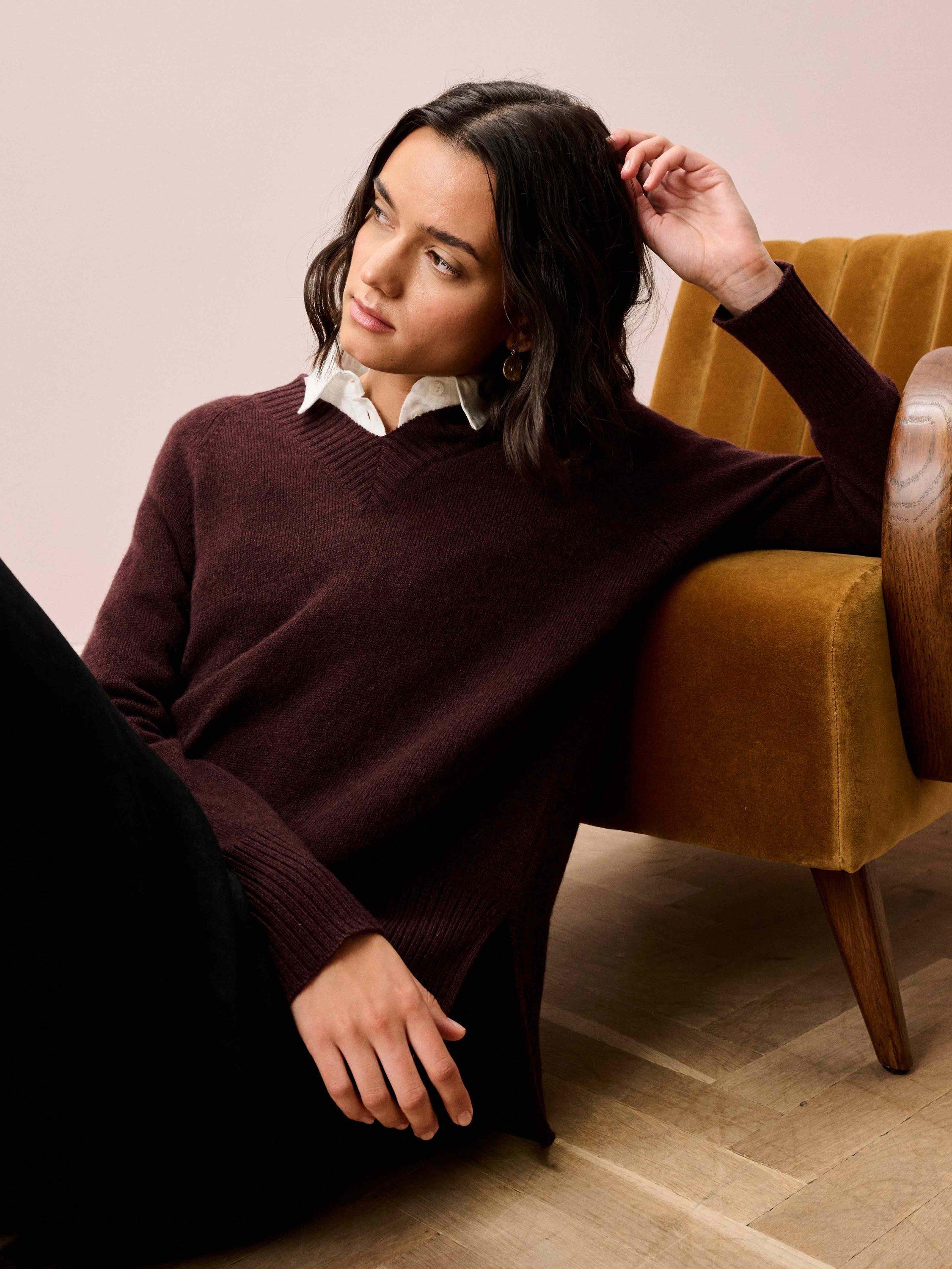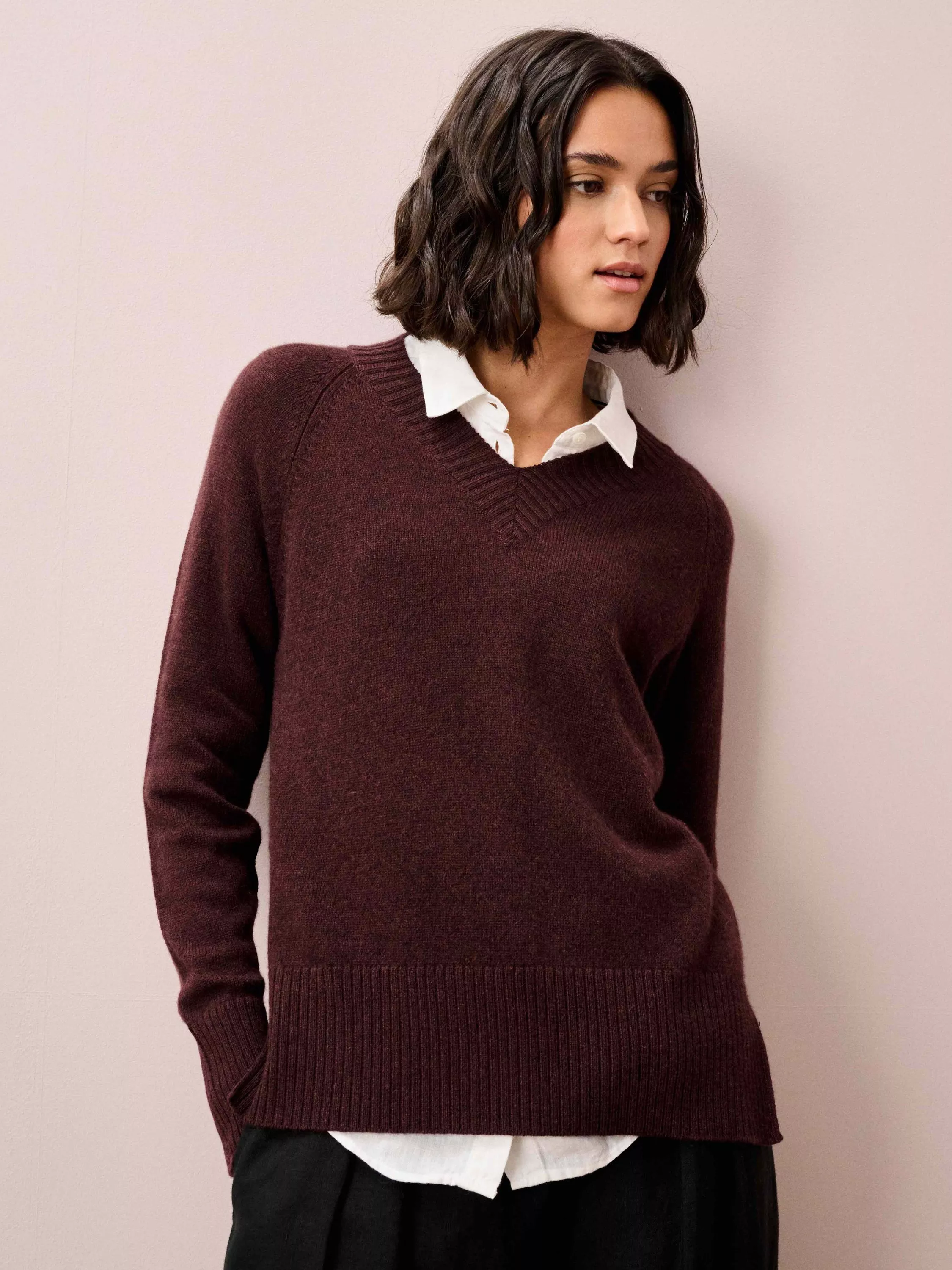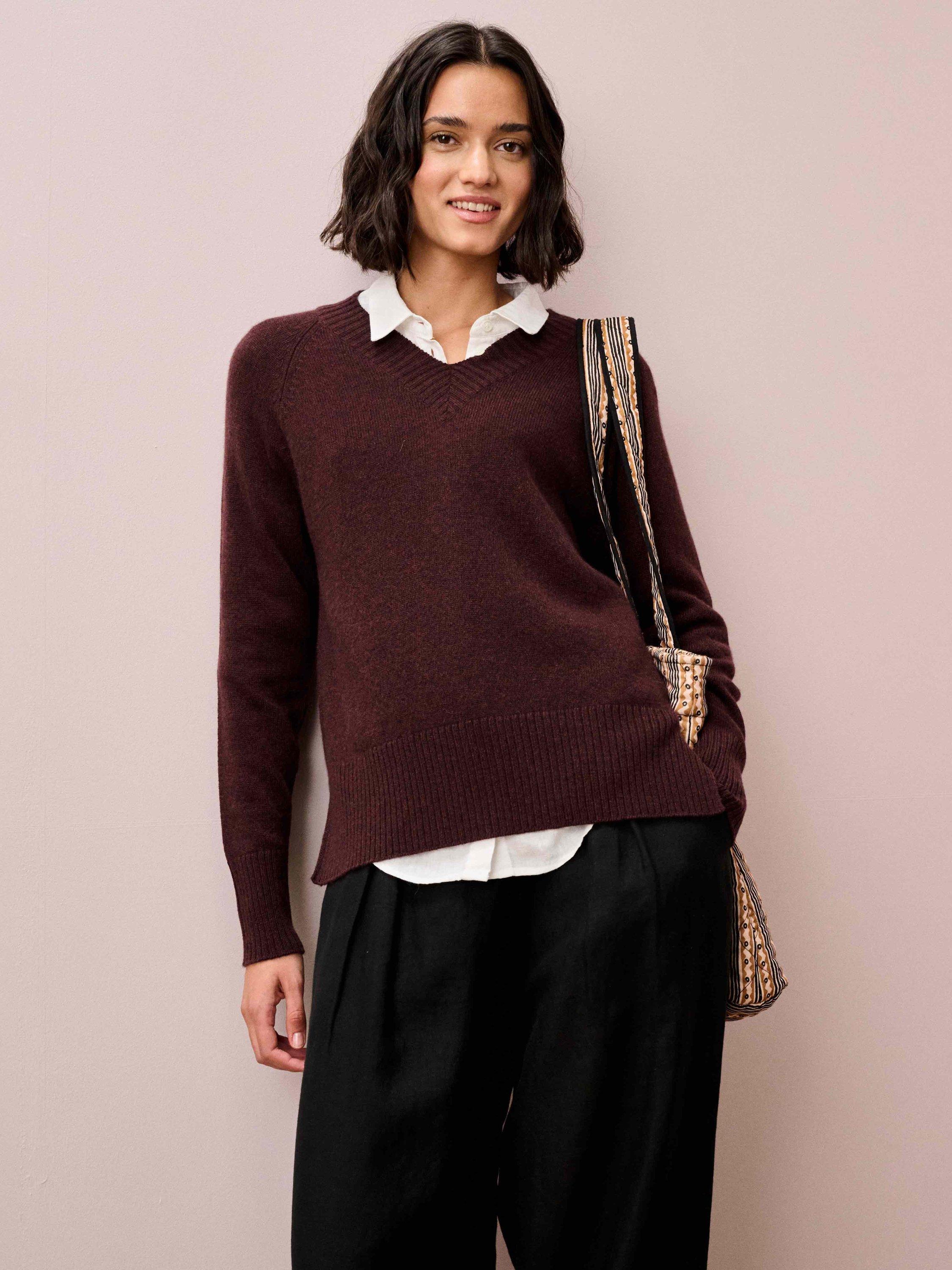 With a flattering V-neckline, statement ribbed trims and splendidly soft handle, this indulgent cashmere jumper is the pinnacle of luxurious everyday dressing, expertly knitted in Scotland using only the very finest yarns.