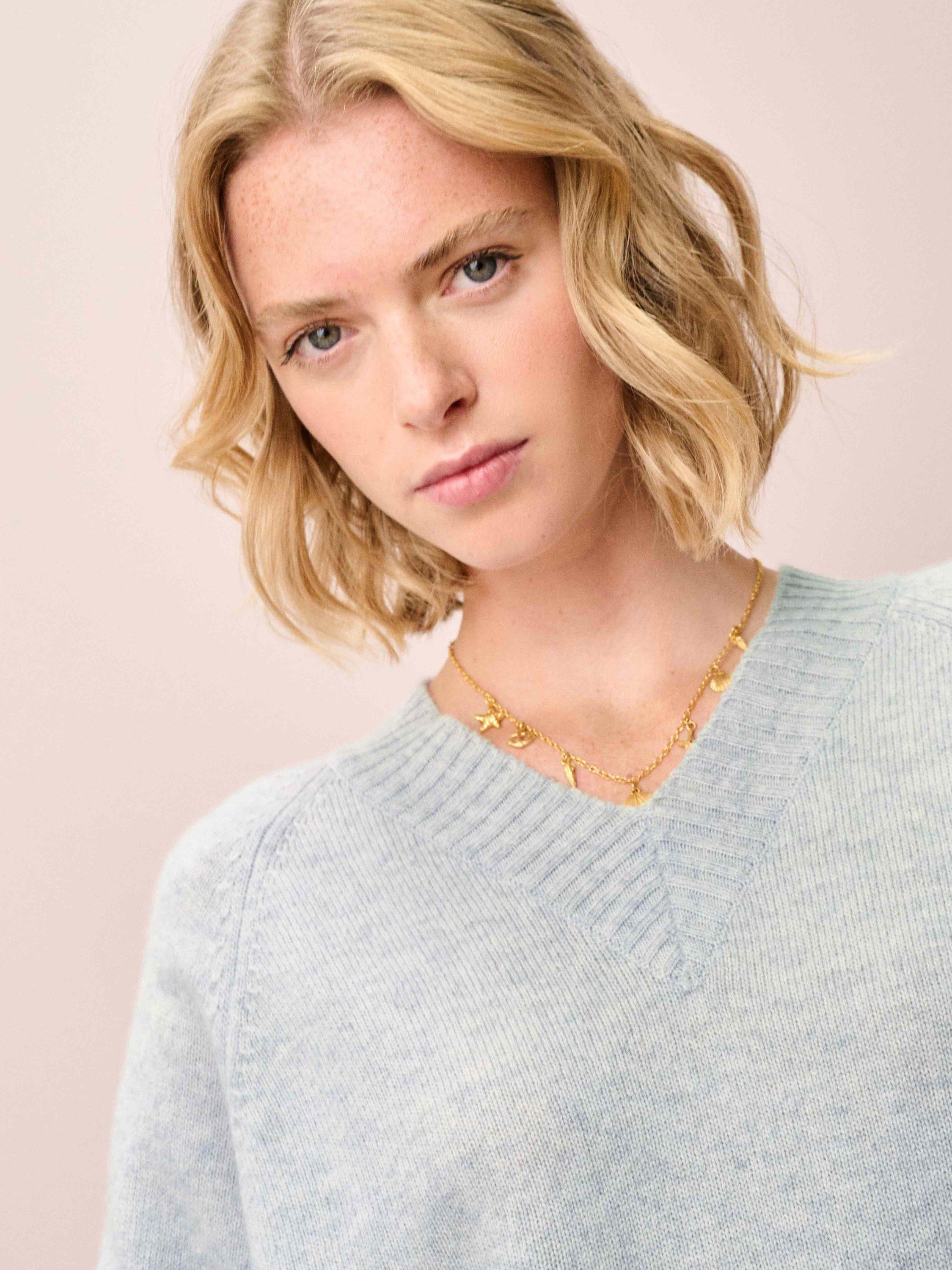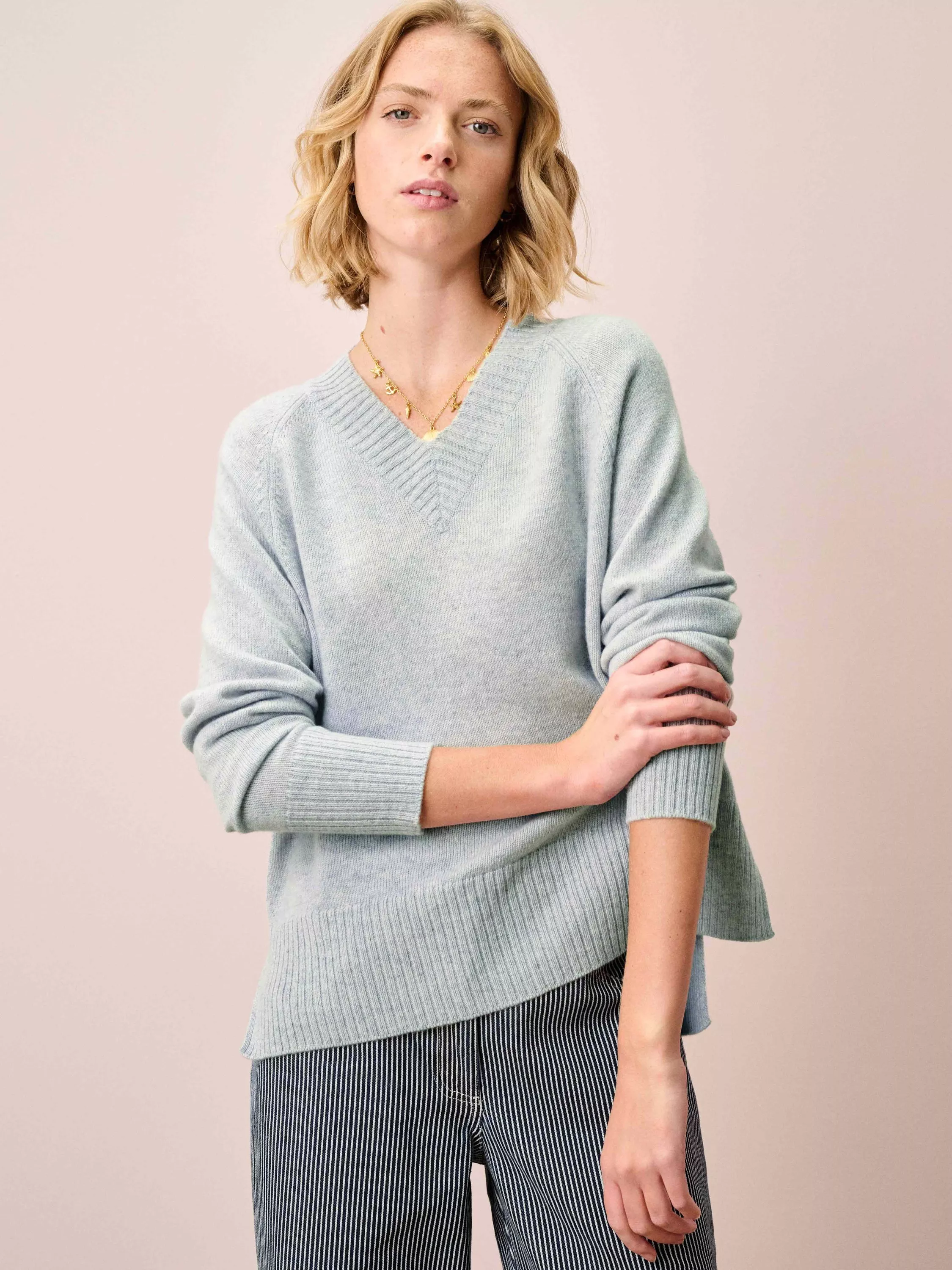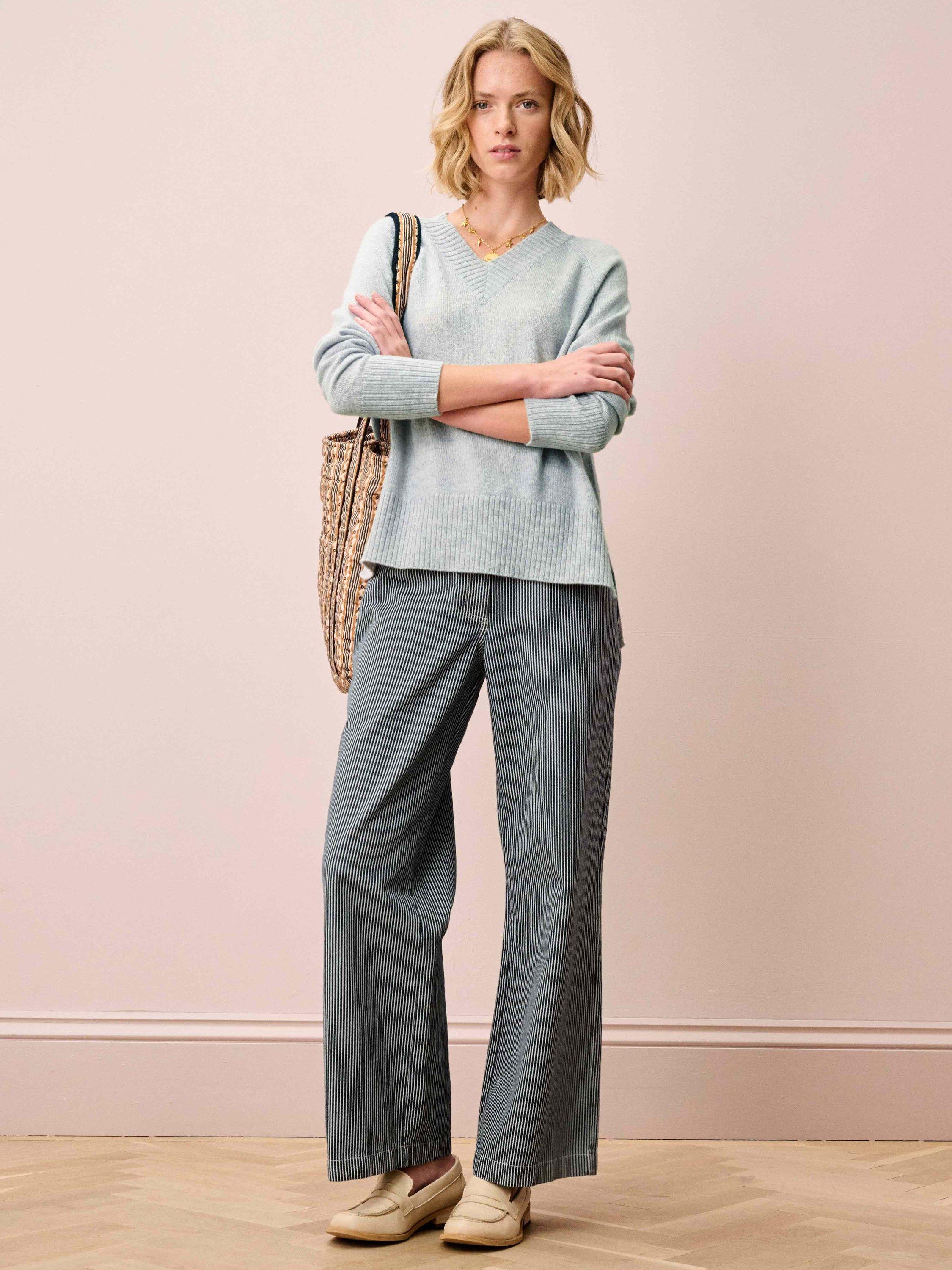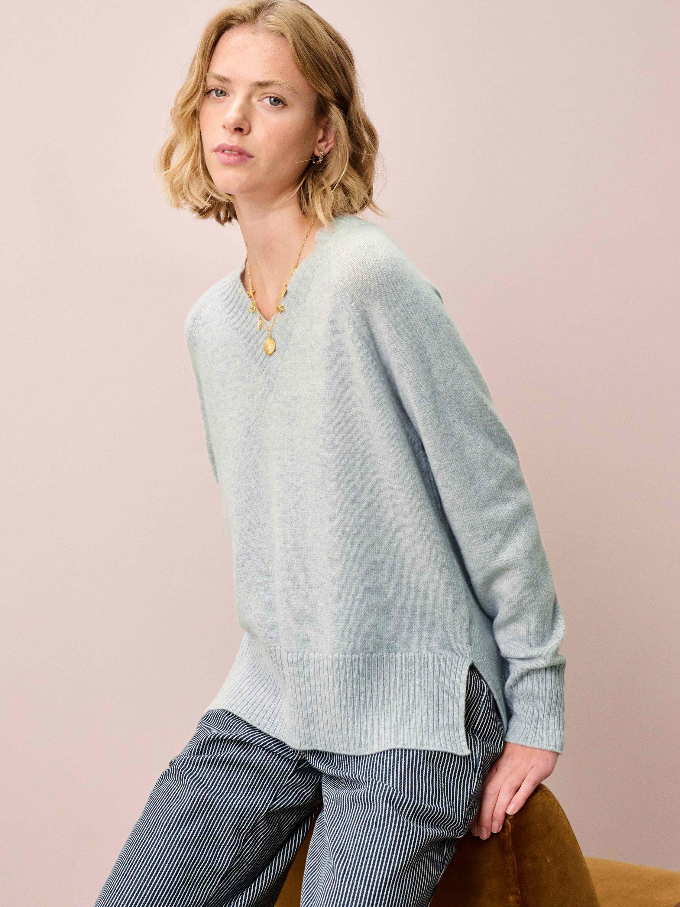 With a flattering V-neckline, statement ribbed trims and splendidly soft handle, this indulgent cashmere jumper is the pinnacle of luxurious everyday dressing, expertly knitted in Scotland using only the very finest yarns.