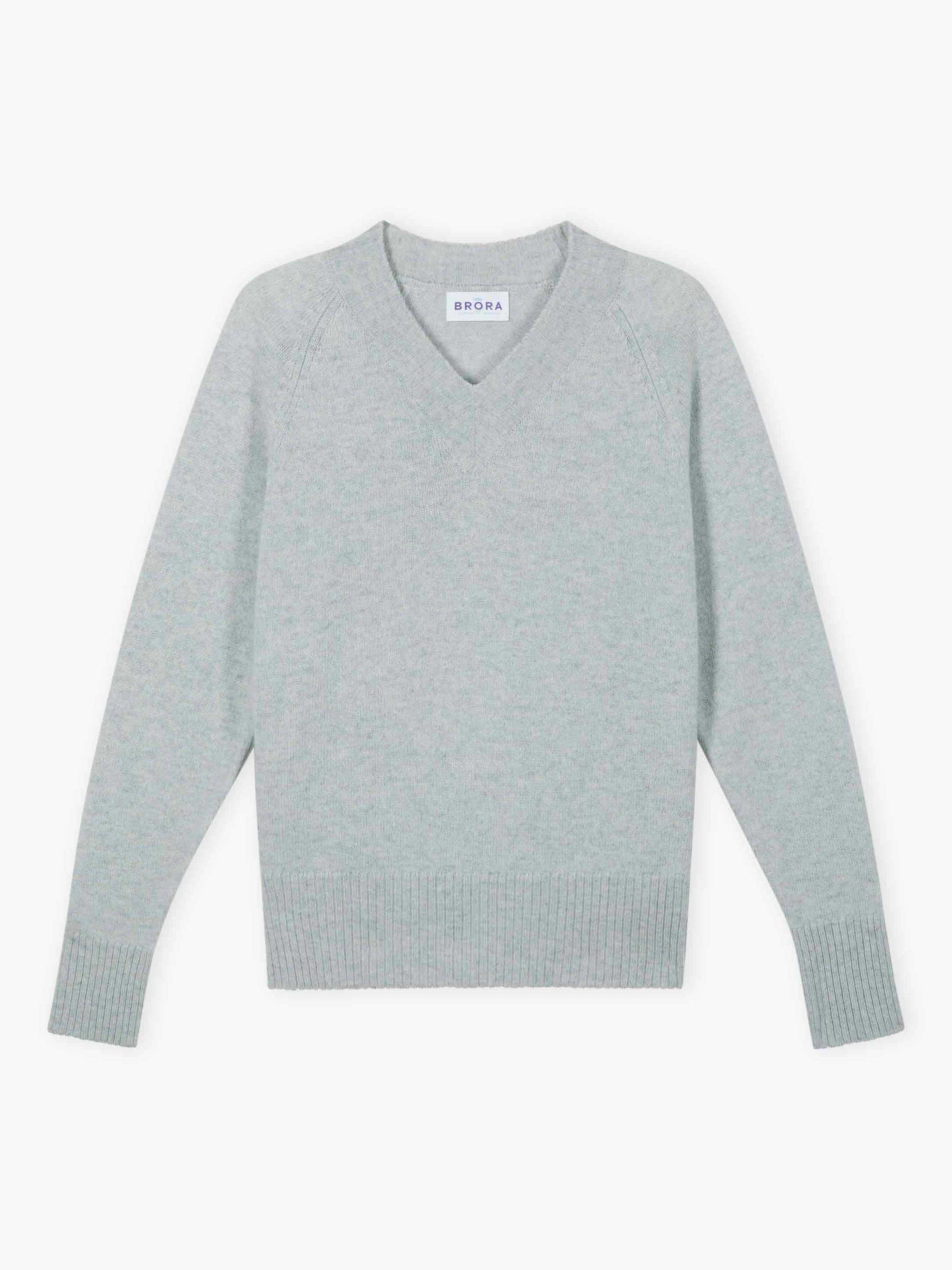 BroraV-Neck Pure Cashmere Jumper, Pearl
