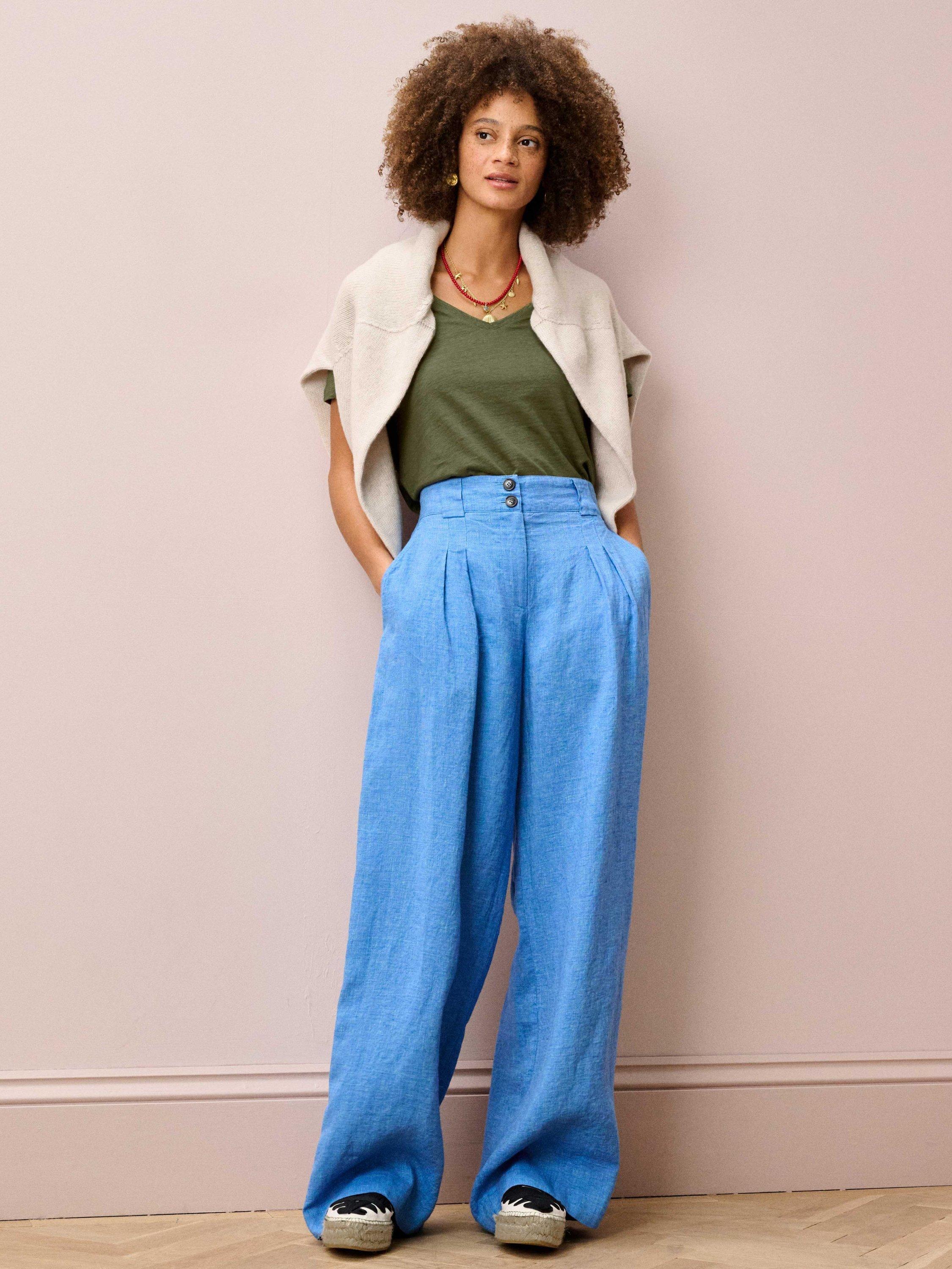 A pure linen t-shirt with a deep V-neck and easy-fit silhouette.