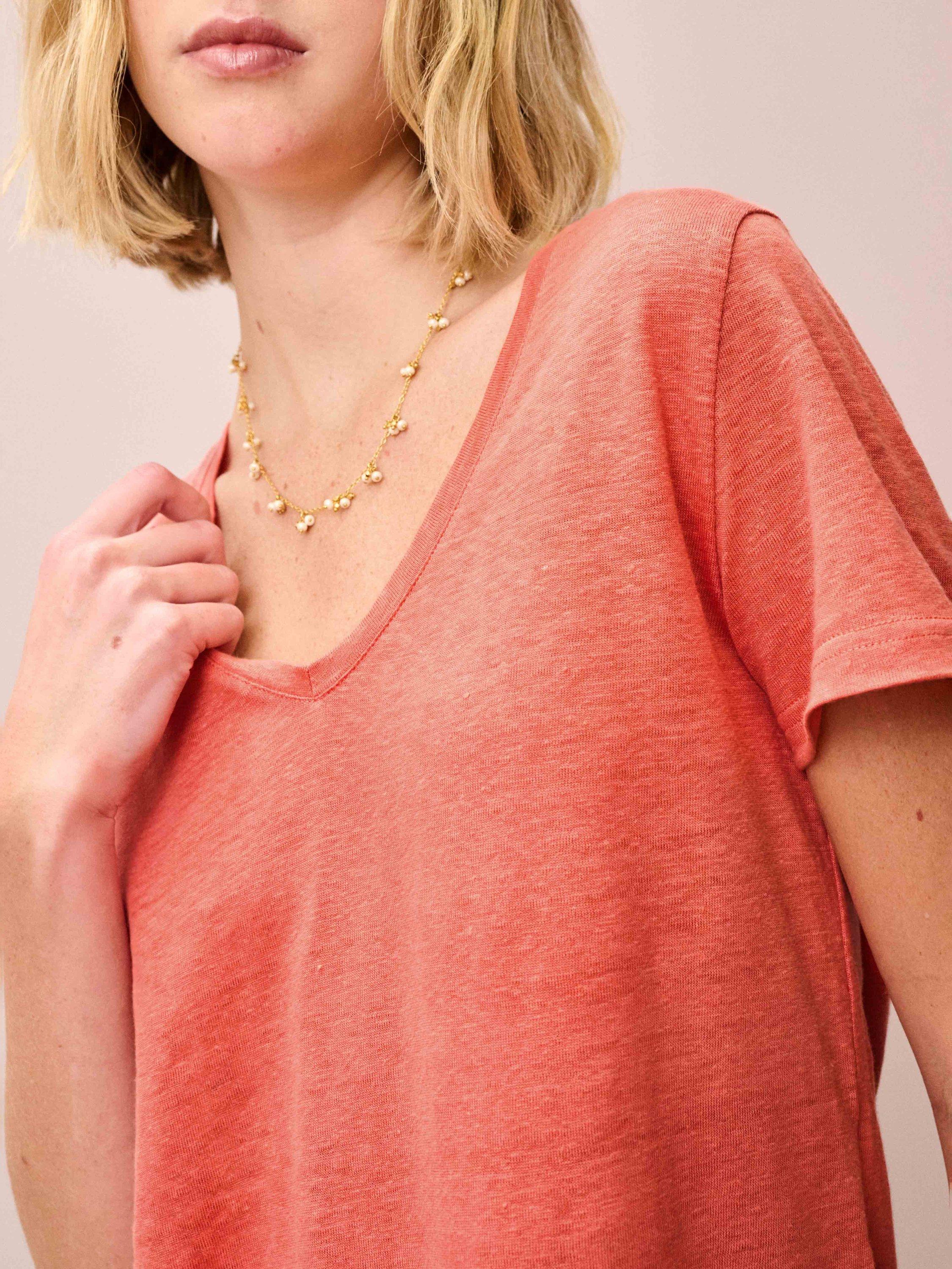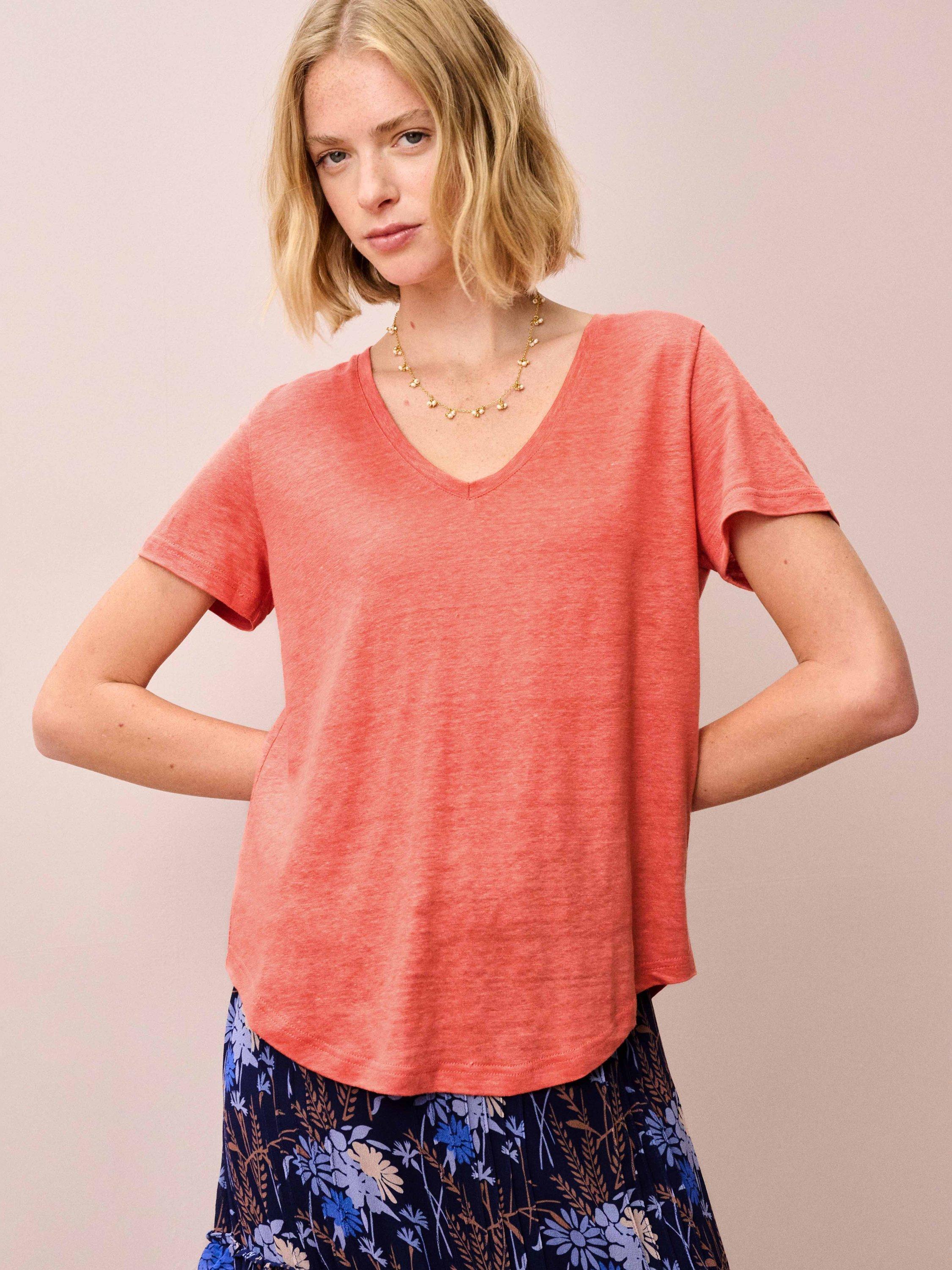 A pure linen t-shirt with a deep V-neck and easy-fit silhouette.