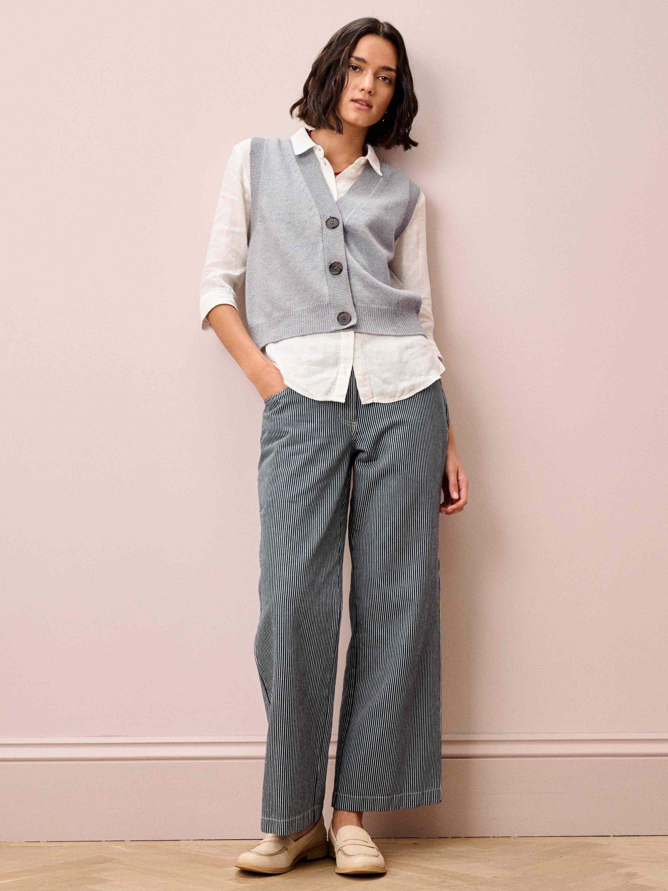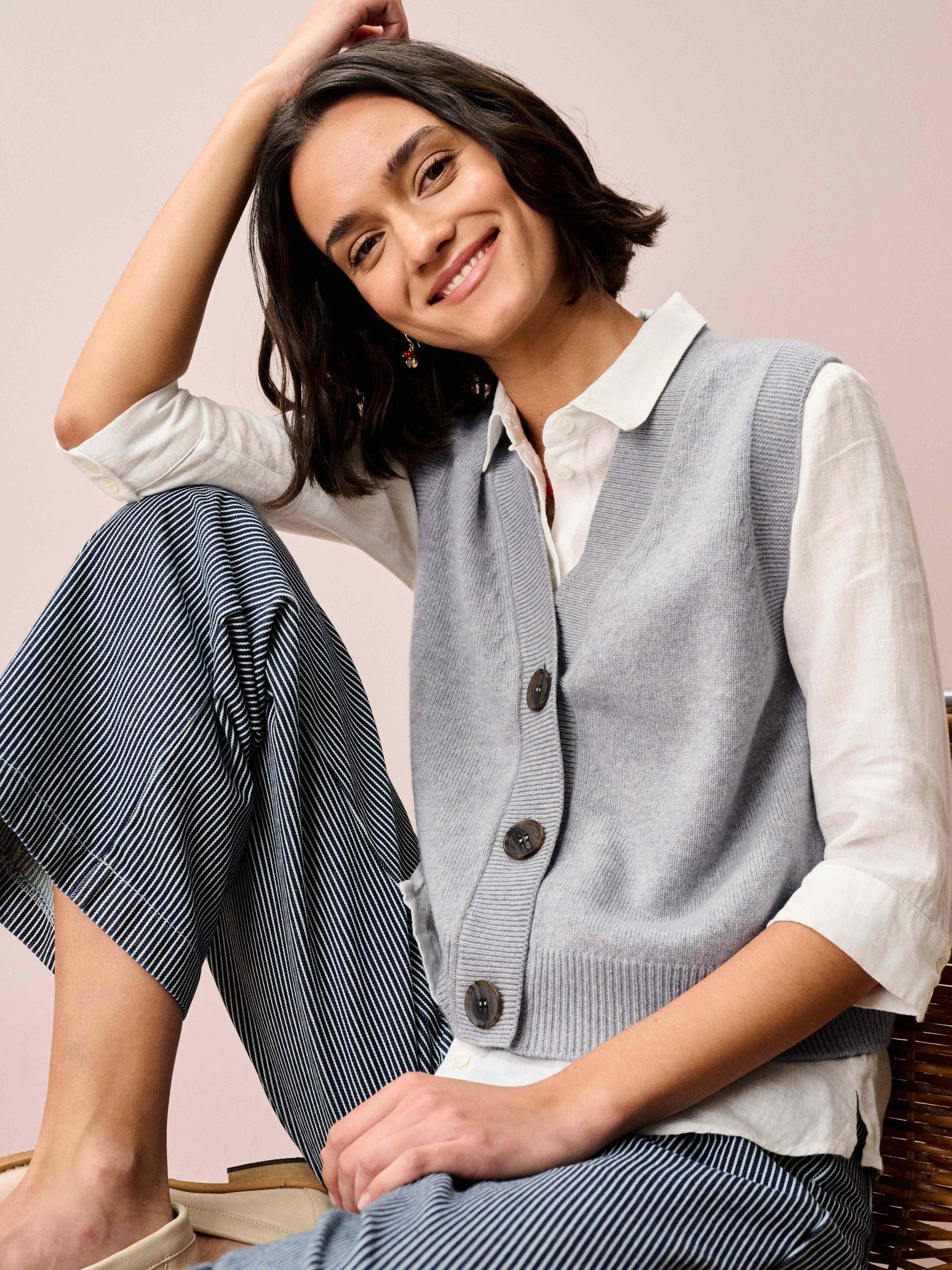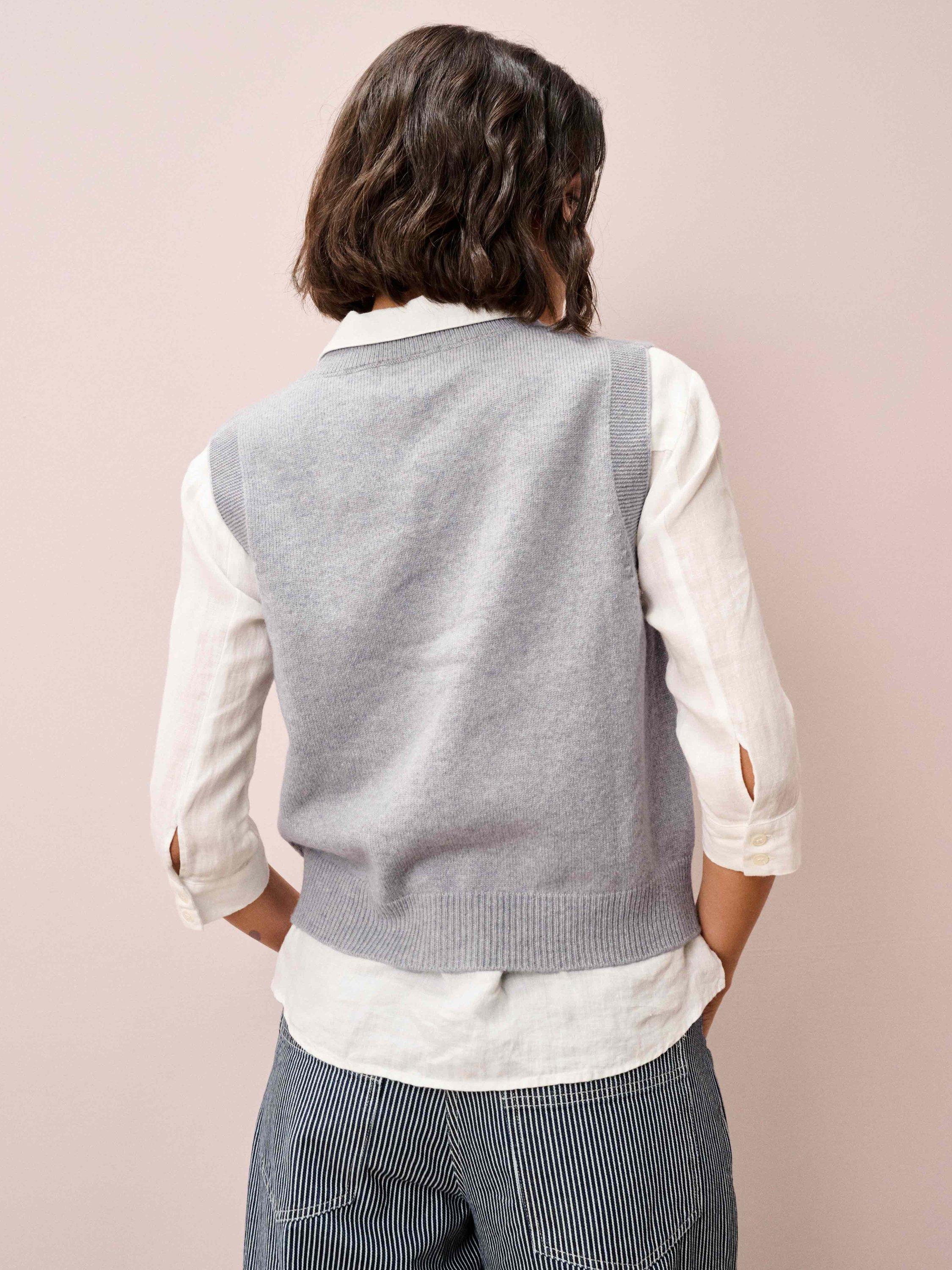 Expertly knitted from super soft lambswool using yarns spun and dyed in Scotland, this V-neck waistcoat with its ribbed trims is just the thing for building effortlessly chic, layered looks with textural interest.