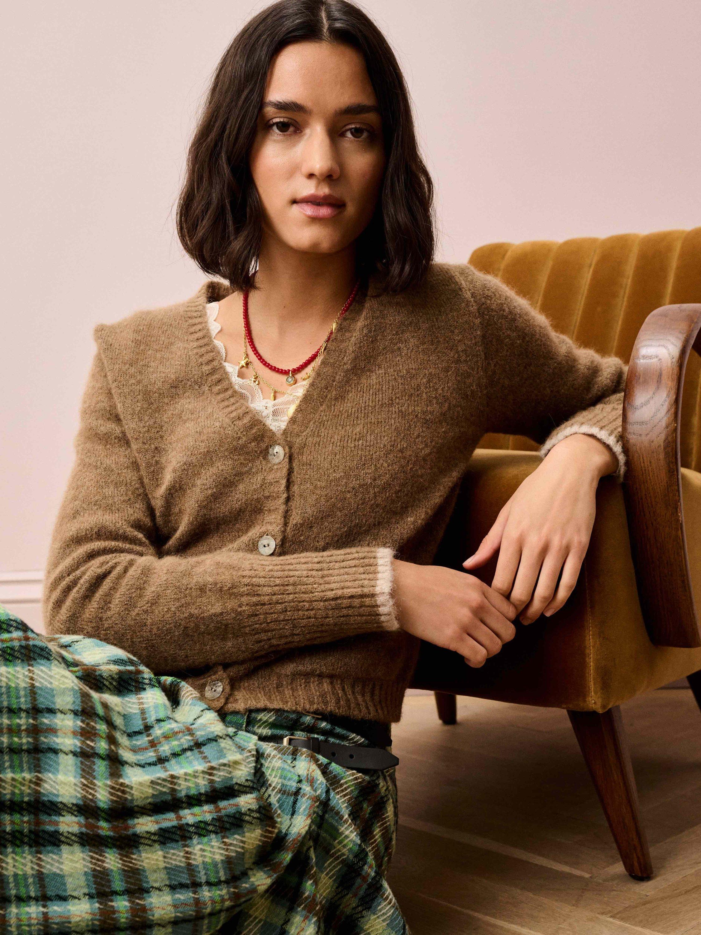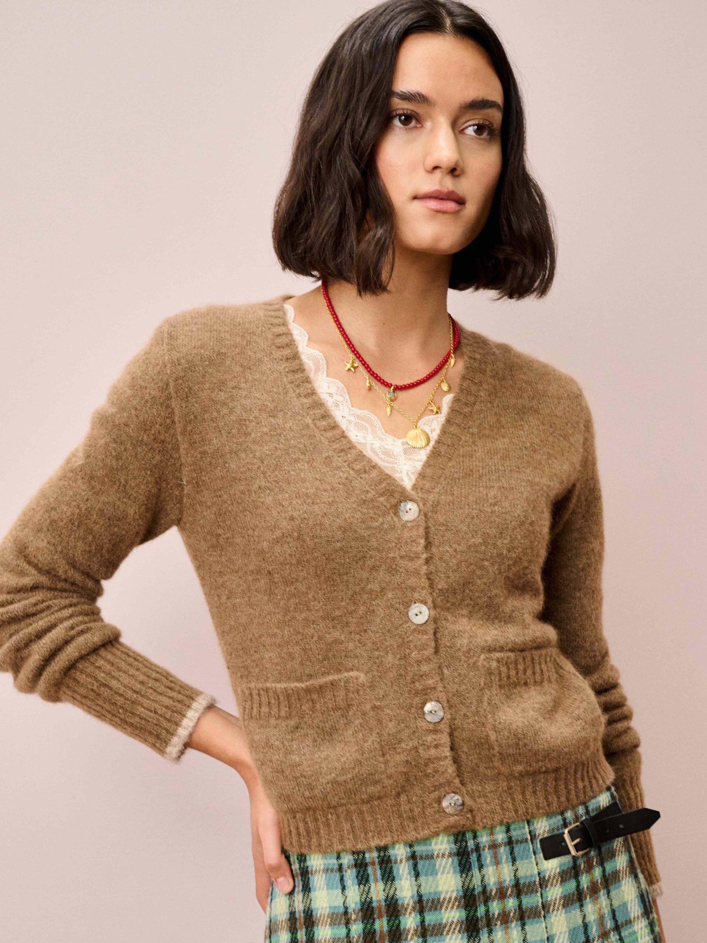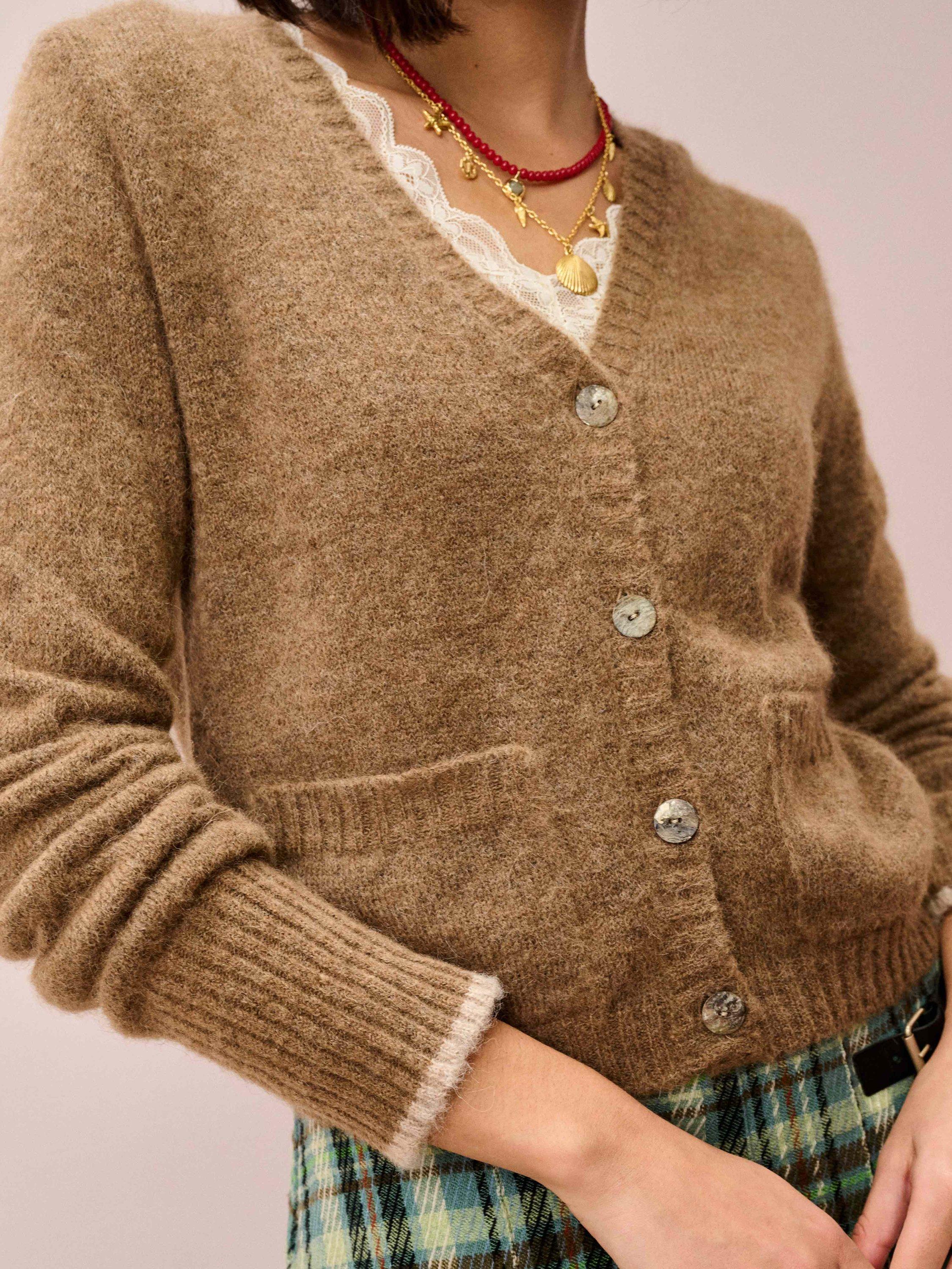The perfect throw-on layer, this V-neck cardigan features front patch pockets, ribbed trims and contrast tipping on the cuffs, all made from the finest Italian-spun yarns and an exquisite supersoft alpaca-merino blend.