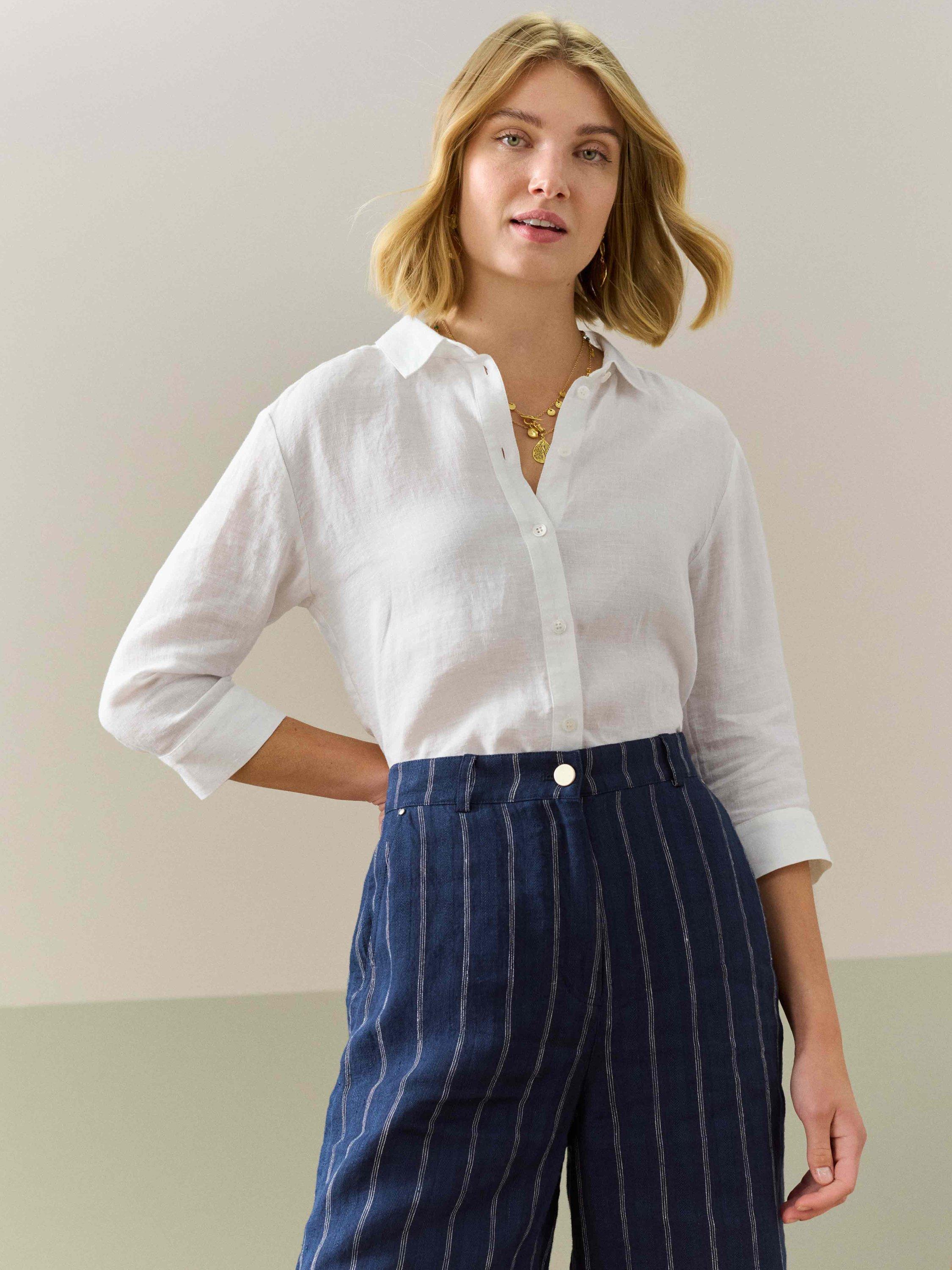 Reimagined in white for the first time: this Brora bestseller has been woven using only the finest, sustainable washed linen with every step of the making process, from flax plant to the final stitches, all taking place in Europe.
