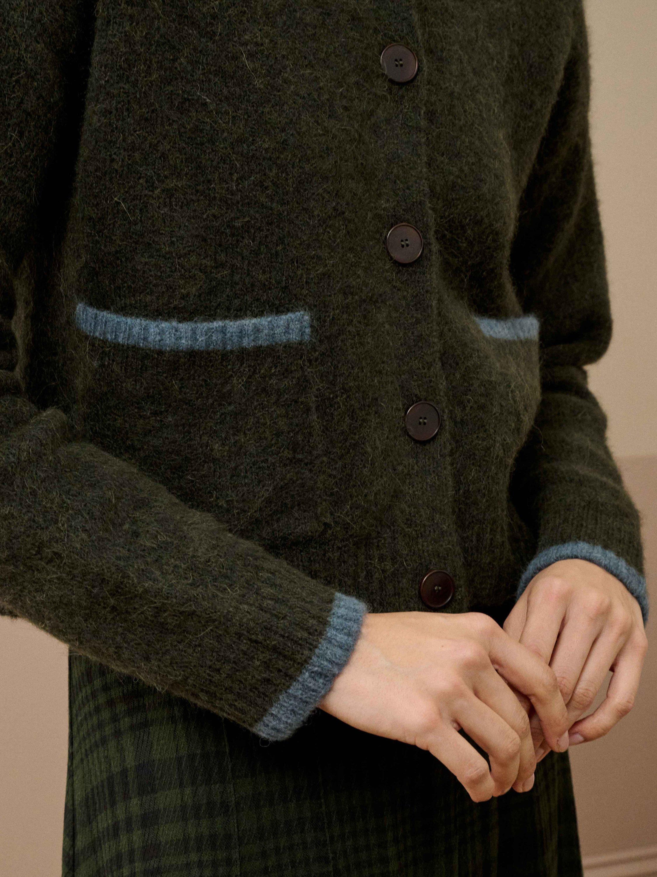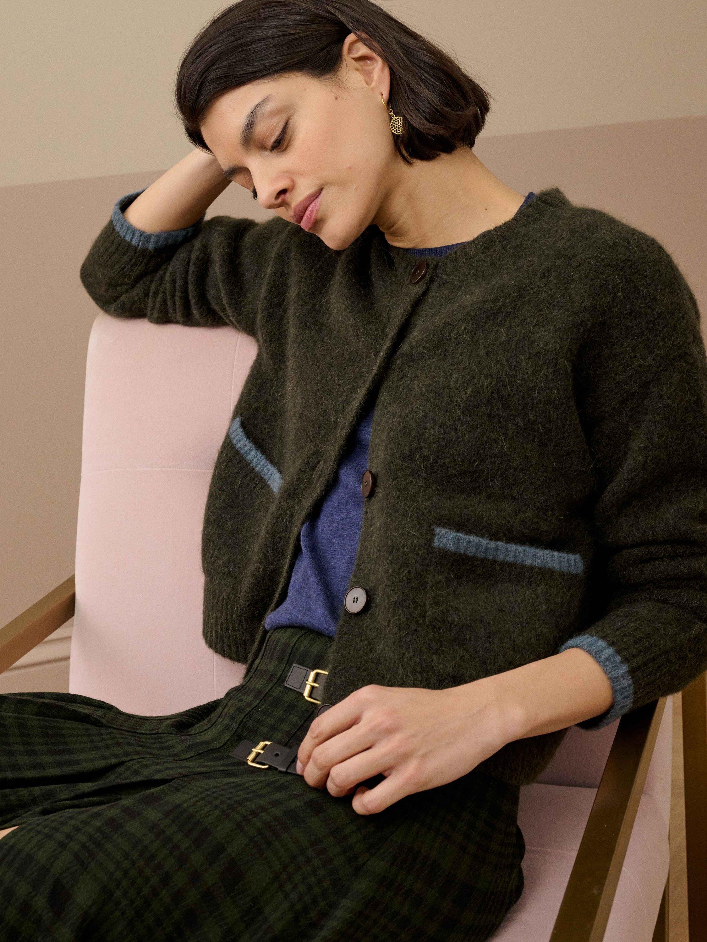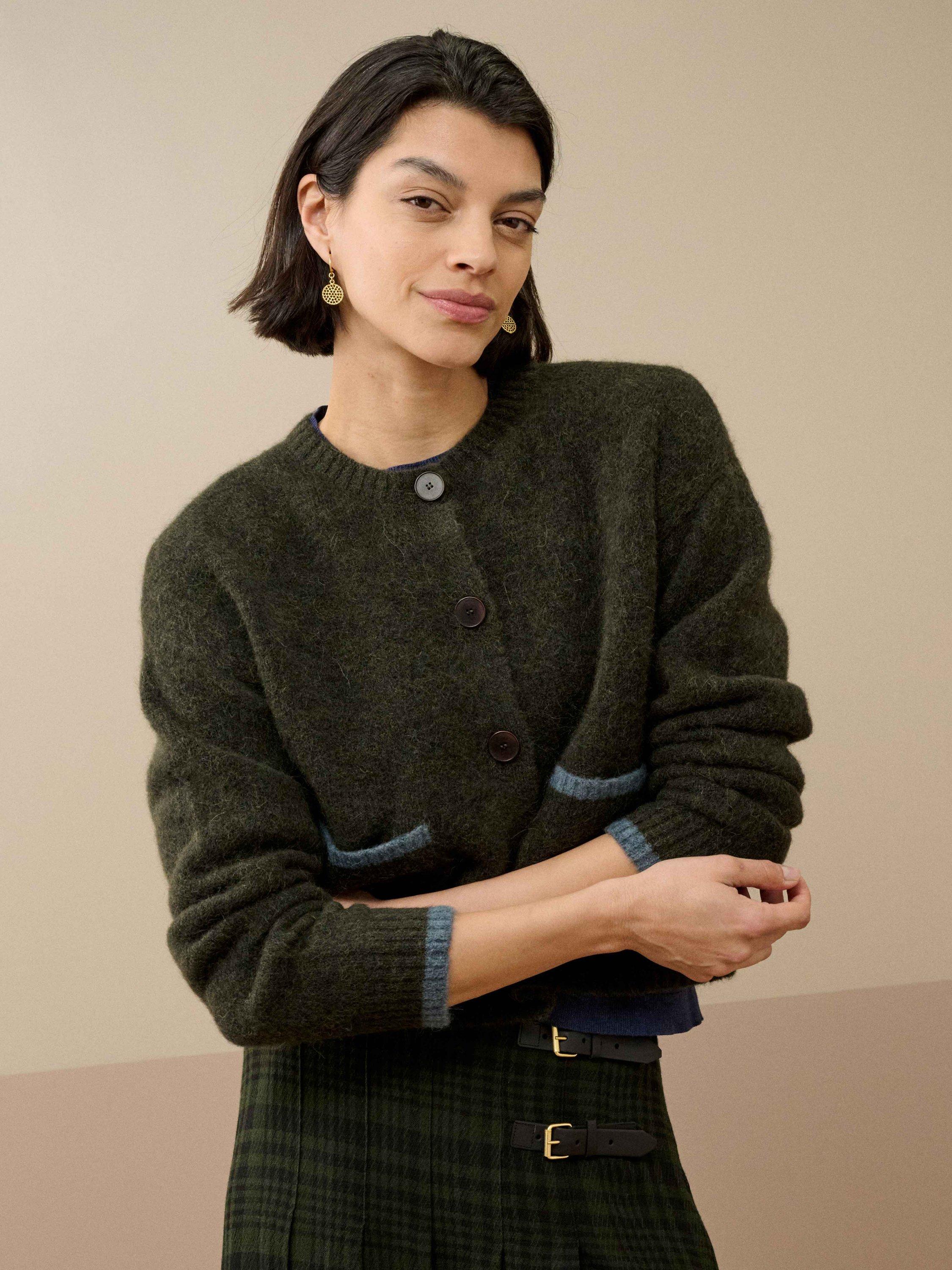 The perfect layer for Autumn-Winter, this boxy, slightly oversized cardigan isn't like the rest, knitted from a luxurious Italian-spun blend of alpaca and merino wool with contrast tipping details on the pockets and cuffs.