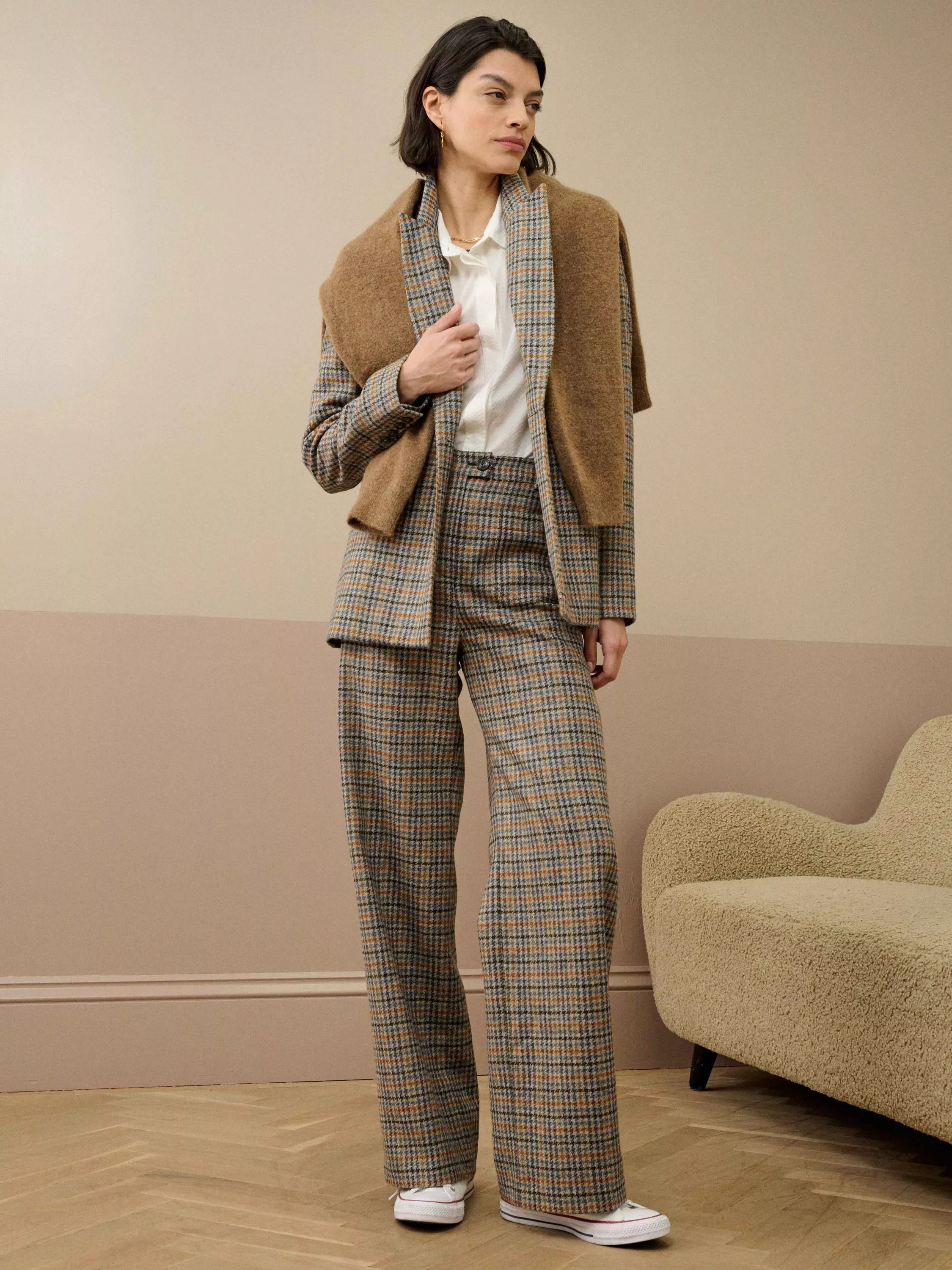Designed with a relaxed, open neckline and keeping you in check with its classic print, it is made from pure wool for ultimate warmth.