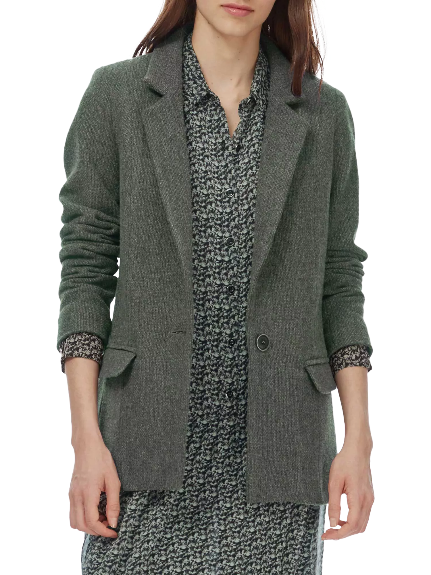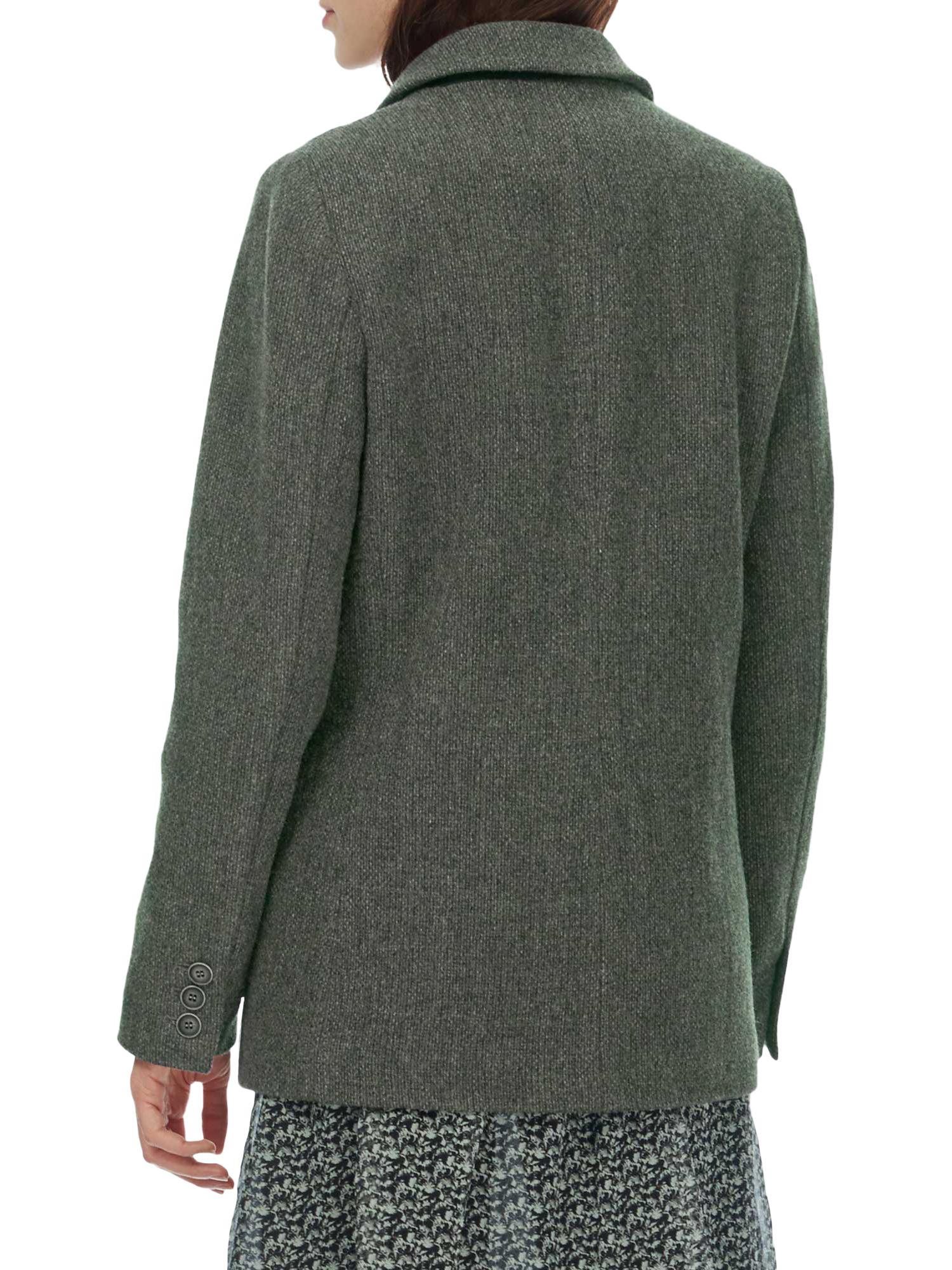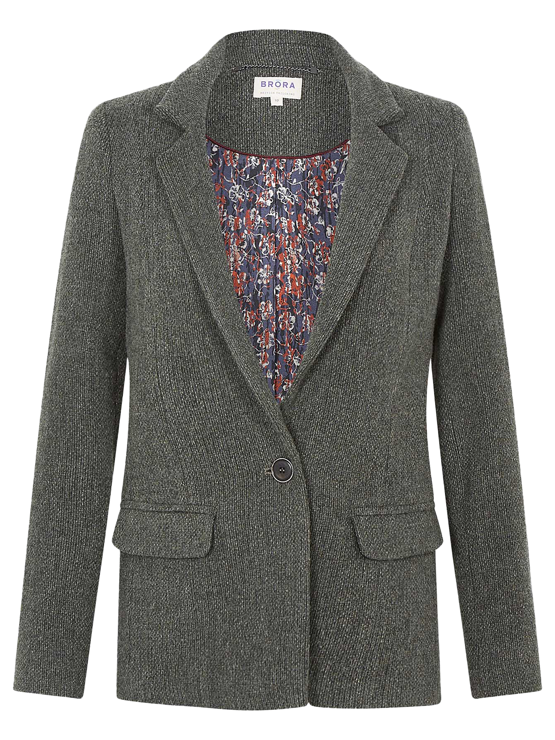 Crafted from pure wool, this classic tweed jacket has a perennial blazer silhouette with a notch lapel collar, flap pockets and a single button fastening.