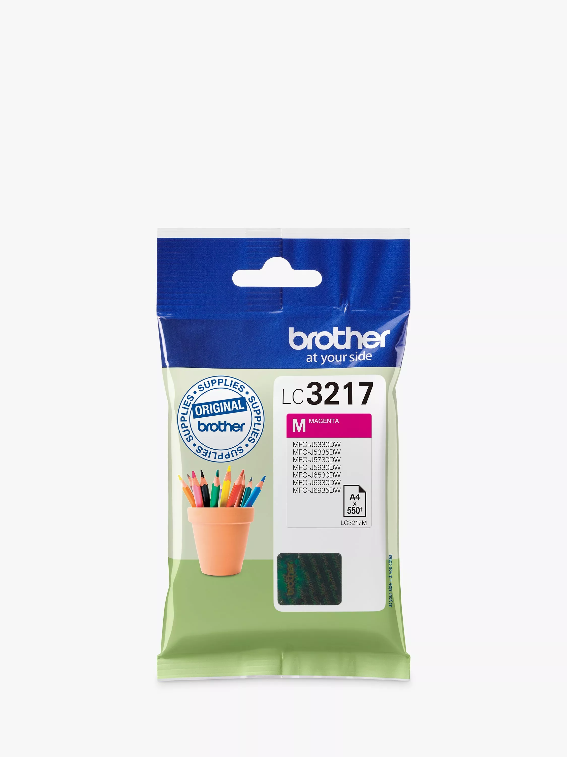 Brother's Original LC3217 ink cartridge produces vibrant and bold results for high quality prints. Made with Innobella technology, they produce longer-lasting prints, suitable for everything from reports and graphs to booklets and presentations, covering a huge range of printing needs.