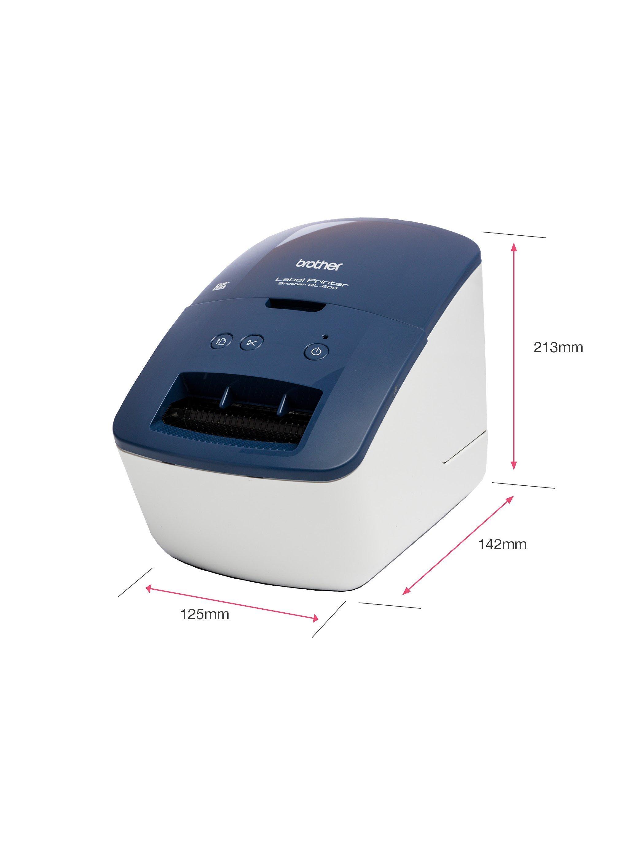 Easily create custom address labels with Brother’s QL-600B. With compact design, it sits neatly on your desk, connected to your computer via USB. Add text, images, frames, barcodes and more onto your labels before printing, using the free—to-download software ‘P-Touch Editor’ (available on Windows and Mac).