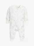 Baby Hare Print Soft & Comfy Sleepsuit, White/Blue