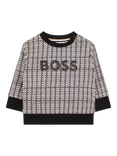 HUGO BOSS Baby Cotton Blend Button Neck Sweatshirt, Black