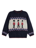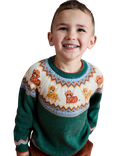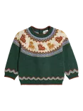 JoJo Maman Bébé Kids' Wool Blend Highland Cow Jumper, Green