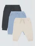 John Lewis Baby Plain Joggers, Pack of 3, Multi