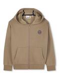 HUGO BOSS Kids' Cotton Blend Hooded Cardigan, Stone Khaki