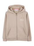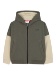 HUGO BOSS Kids' Cotton Blend Hooded Cardigan, Stone Khaki