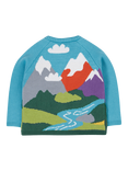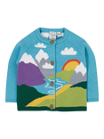 Frugi Baby Reva Knitted Cardigan, Blue/Mountain Scene