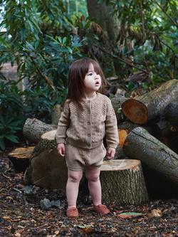 Baby Cotton Pointelle Knit Cardigan, Knickers & Bonnet Gift Set, Tan Brown