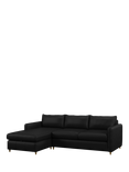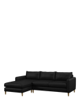 John Lewis Oliver II LHF Chaise End Leather Sofa, Light Leg, Matt Black